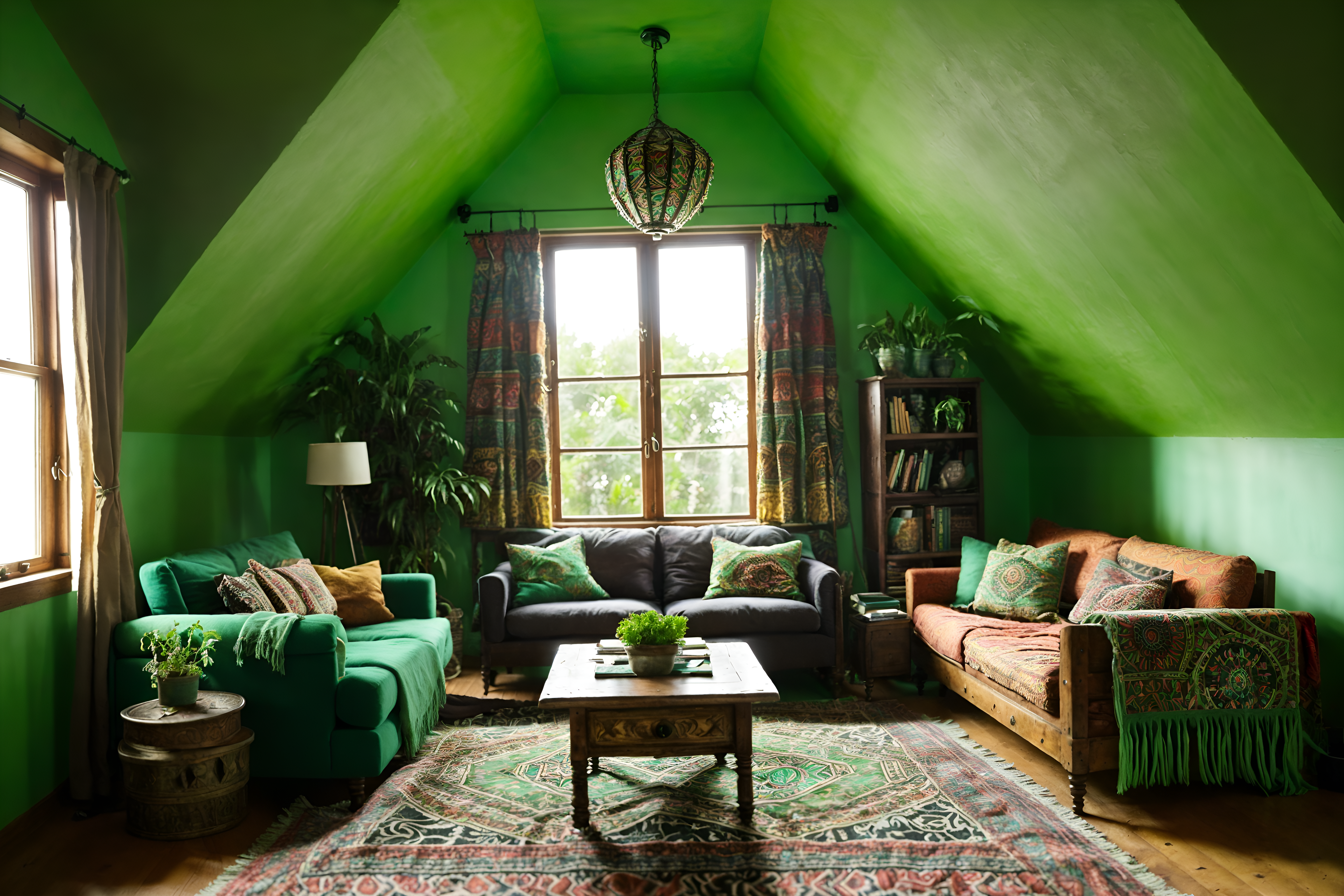 photo from pinterest of bohemian-style interior designed (attic interior) . with carefree layers of pattern, texture, and color and lush green nature and bold colors and a lack of structure and woods and playful colors and playful textures and playful patterns. . cinematic photo, highly detailed, cinematic lighting, ultra-detailed, ultrarealistic, photorealism, 8k. trending on pinterest. bohemian interior design style. masterpiece, cinematic light, ultrarealistic+, photorealistic+, 8k, raw photo, realistic, sharp focus on eyes, (symmetrical eyes), (intact eyes), hyperrealistic, highest quality, best quality, , highly detailed, masterpiece, best quality, extremely detailed 8k wallpaper, masterpiece, best quality, ultra-detailed, best shadow, detailed background, detailed face, detailed eyes, high contrast, best illumination, detailed face, dulux, caustic, dynamic angle, detailed glow. dramatic lighting. highly detailed, insanely detailed hair, symmetrical, intricate details, professionally retouched, 8k high definition. strong bokeh. award winning photo.