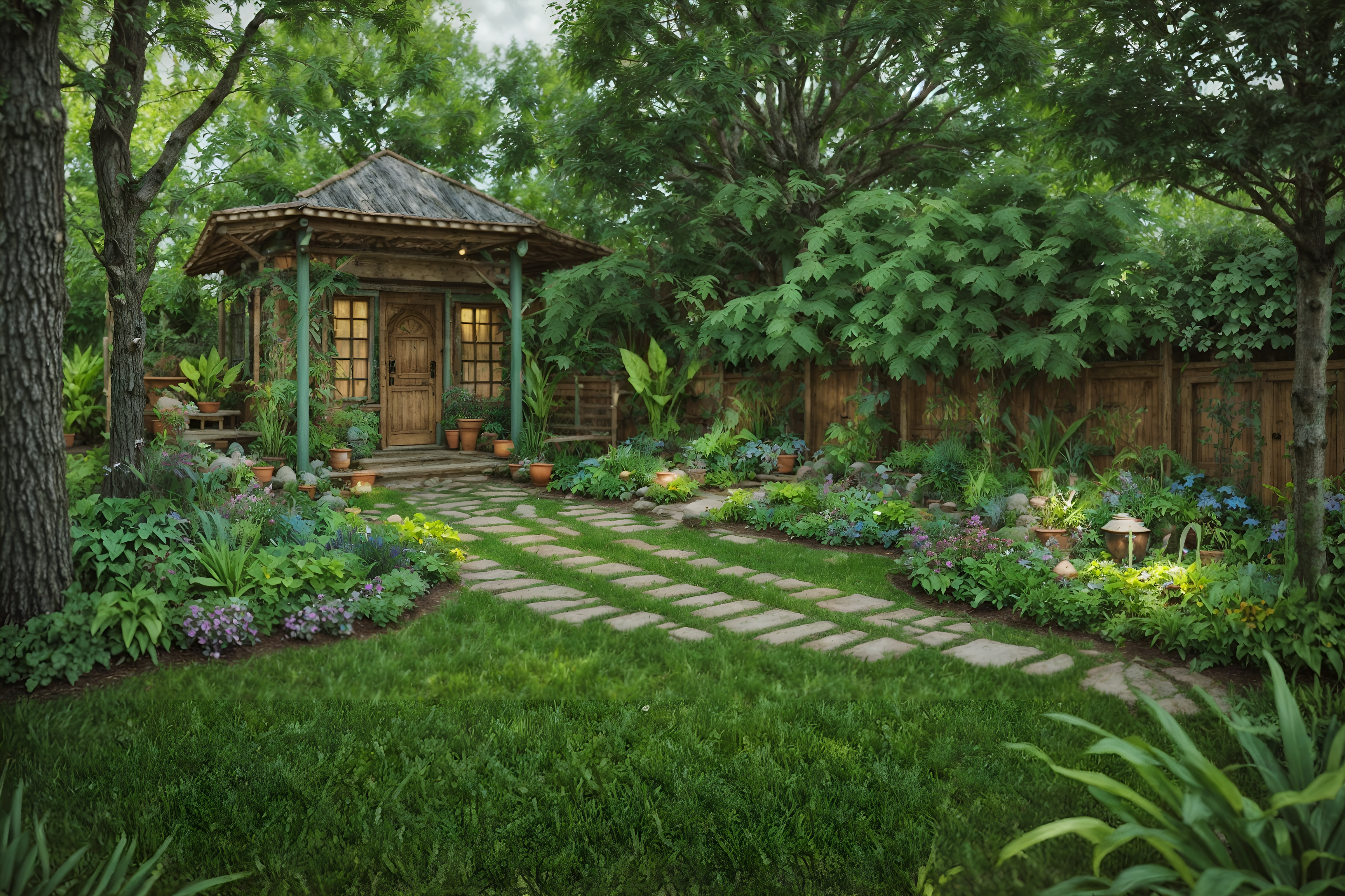 bohemian outdoor gardensinterior decorate this outdoor garden with bohemian style. . . with grass and garden plants and garden tree and grass. . with playful patterns and bold colors and natural materials and a lack of structure and lush green nature and playful textures and woods and animal hides. . .