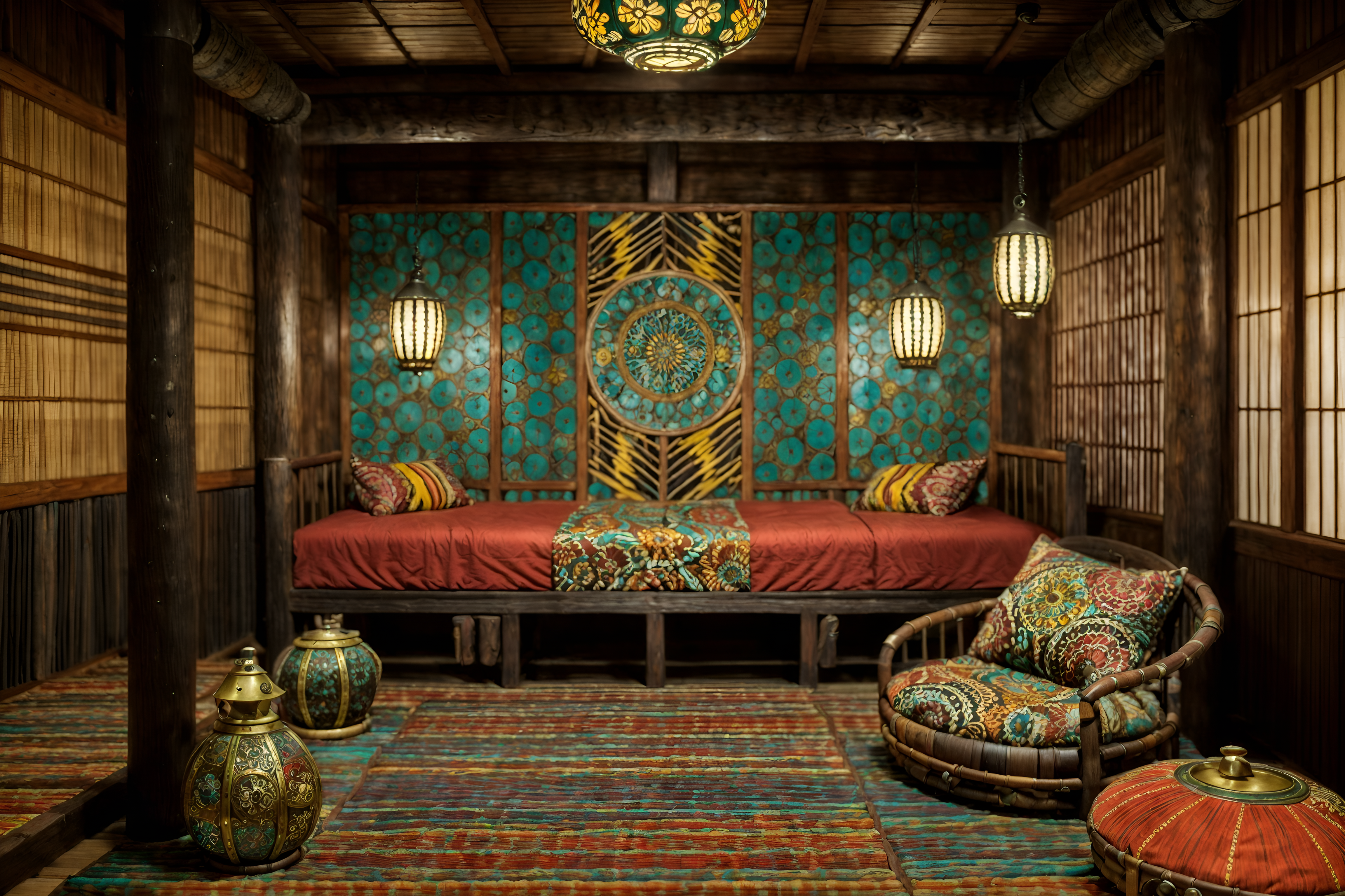 photo from pinterest of bohemian-style interior designed (onsen interior) . with bold colors and metals and animal hides and carefree layers of pattern, texture, and color and natural materials and playful patterns and mixed patterns and playful colors. . cinematic photo, highly detailed, cinematic lighting, ultra-detailed, ultrarealistic, photorealism, 8k. trending on pinterest. bohemian interior design style. masterpiece, cinematic light, ultrarealistic+, photorealistic+, 8k, raw photo, realistic, sharp focus on eyes, (symmetrical eyes), (intact eyes), hyperrealistic, highest quality, best quality, , highly detailed, masterpiece, best quality, extremely detailed 8k wallpaper, masterpiece, best quality, ultra-detailed, best shadow, detailed background, detailed face, detailed eyes, high contrast, best illumination, detailed face, dulux, caustic, dynamic angle, detailed glow. dramatic lighting. highly detailed, insanely detailed hair, symmetrical, intricate details, professionally retouched, 8k high definition. strong bokeh. award winning photo.