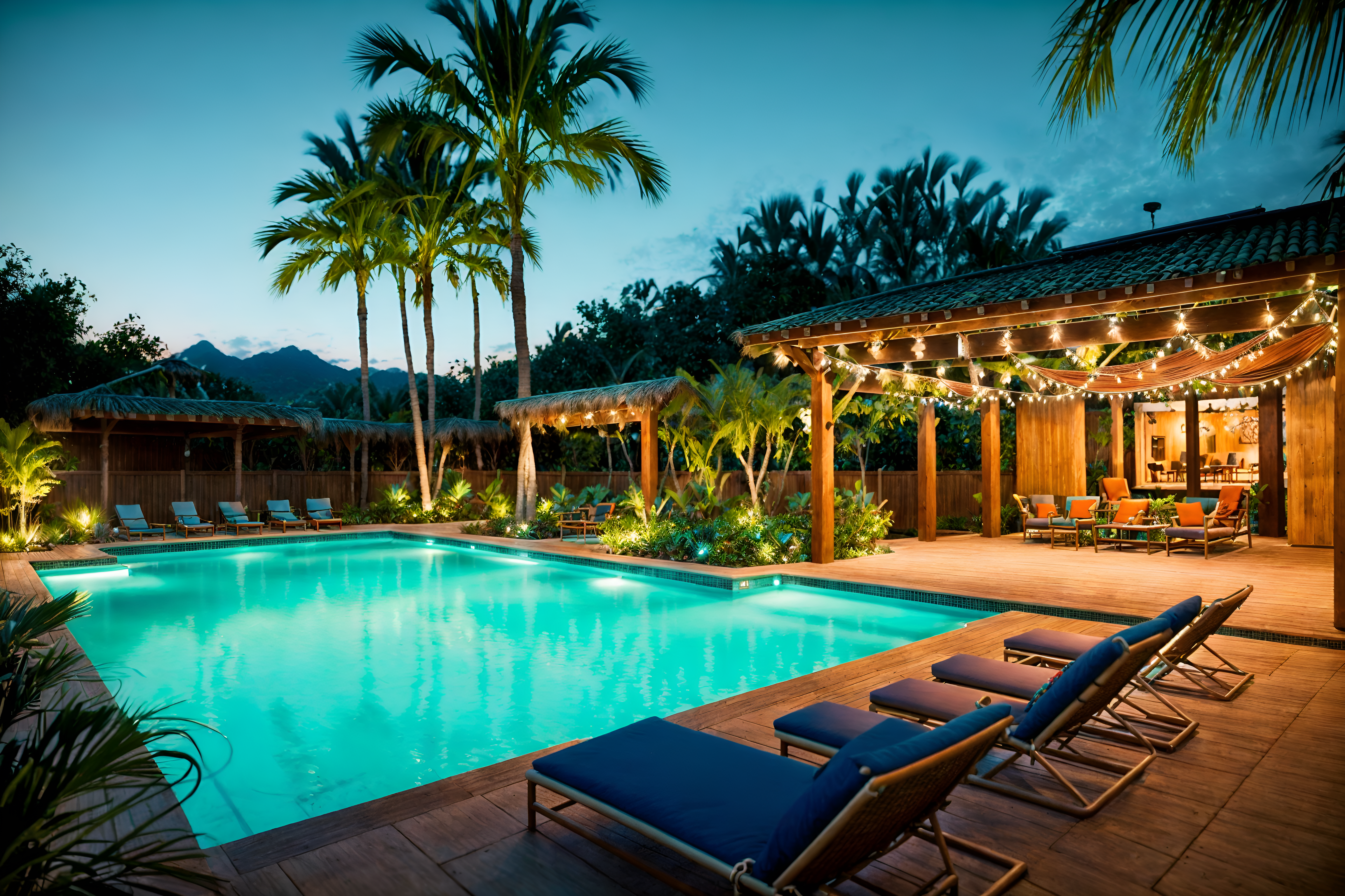 photo from pinterest of boho-chic-style designed (outdoor pool area ) with pool and pool lights and pool lounge chairs and pool cinematic photo, highly detailed, cinematic lighting, ultra-detailed, ultrarealistic, photorealism, 8k. trending on pinterest. boho-chic design style. masterpiece, cinematic light, ultrarealistic+, photorealistic+, 8k, raw photo, realistic, sharp focus on eyes, (symmetrical eyes), (intact eyes), hyperrealistic, highest quality, best quality, , highly detailed, masterpiece, best quality, extremely detailed 8k wallpaper, masterpiece, best quality, ultra-detailed, best shadow, detailed background, detailed face, detailed eyes, high contrast, best illumination, detailed face, dulux, caustic, dynamic angle, detailed glow. dramatic lighting. highly detailed, insanely detailed hair, symmetrical, intricate details, professionally retouched, 8k high definition. strong bokeh. award winning photo.