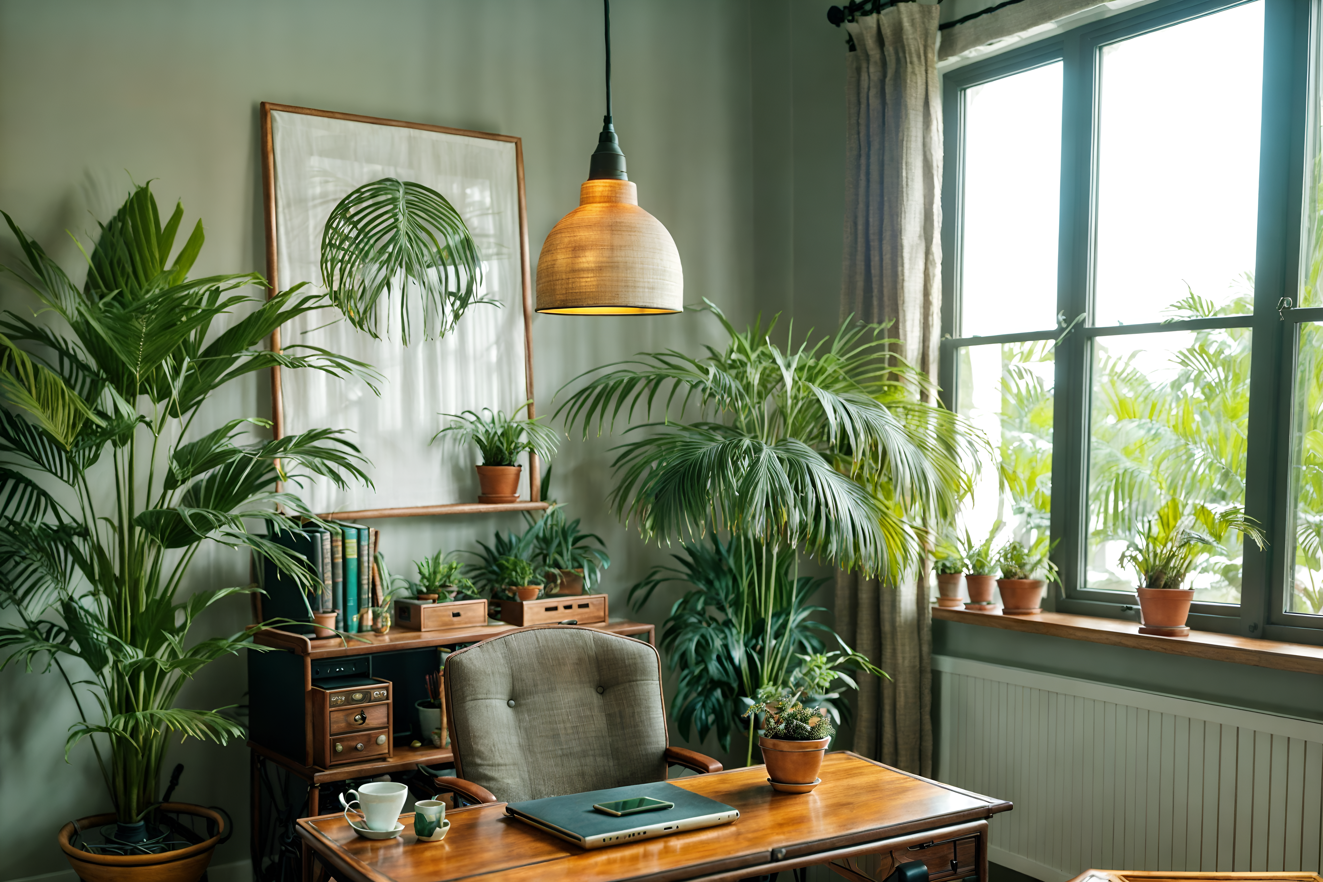 photo from pinterest of boho-chic-style interior designed (home office interior) with cabinets and office chair and plant and computer desk and desk lamp and cabinets cinematic photo, highly detailed, cinematic lighting, ultra-detailed, ultrarealistic, photorealism, 8k. trending on pinterest. boho-chic interior design style. masterpiece, cinematic light, ultrarealistic+, photorealistic+, 8k, raw photo, realistic, sharp focus on eyes, (symmetrical eyes), (intact eyes), hyperrealistic, highest quality, best quality, , highly detailed, masterpiece, best quality, extremely detailed 8k wallpaper, masterpiece, best quality, ultra-detailed, best shadow, detailed background, detailed face, detailed eyes, high contrast, best illumination, detailed face, dulux, caustic, dynamic angle, detailed glow. dramatic lighting. highly detailed, insanely detailed hair, symmetrical, intricate details, professionally retouched, 8k high definition. strong bokeh. award winning photo.