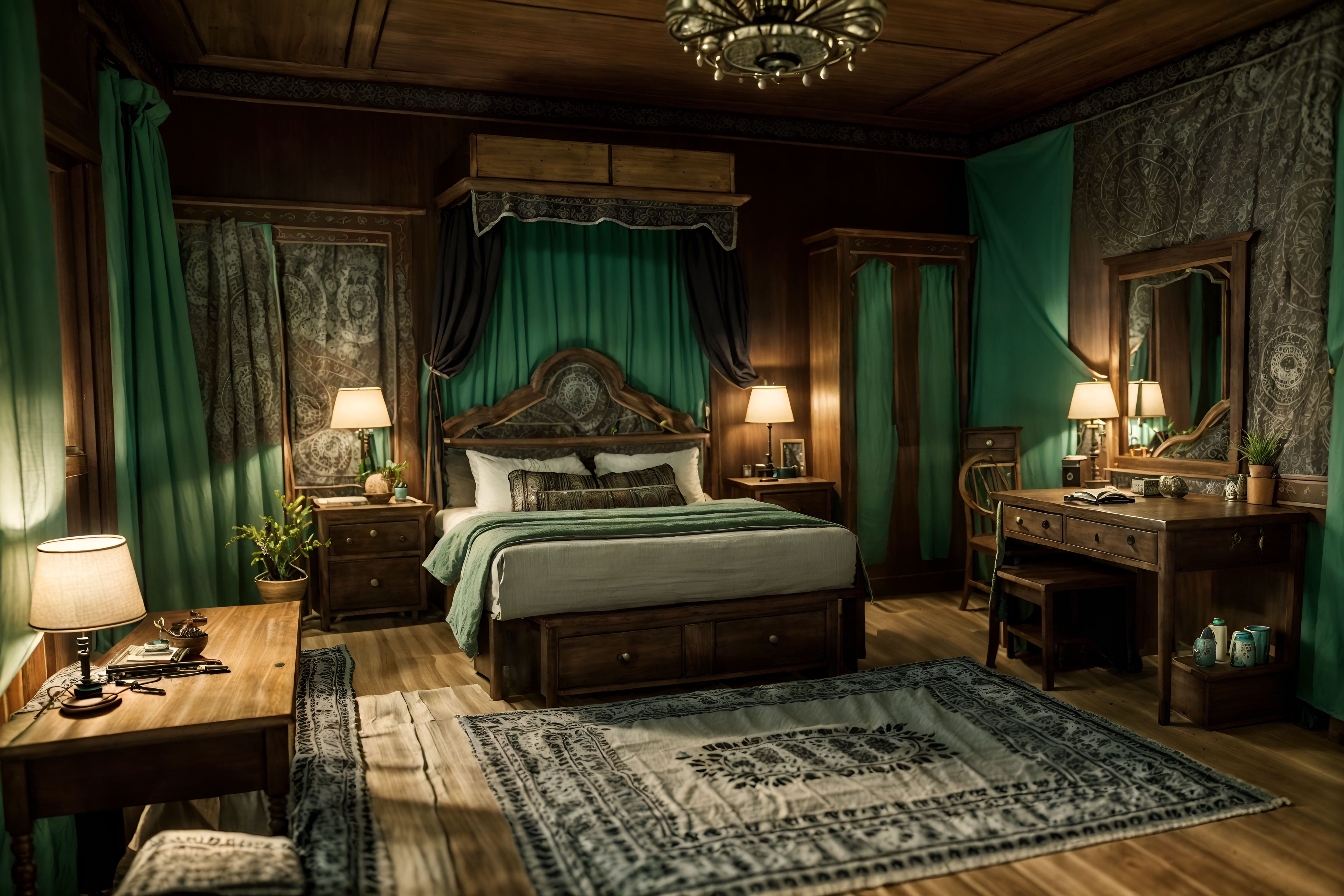 photo from pinterest of boho-chic-style interior designed (hotel room interior) with bed and hotel bathroom and working desk with desk chair and bedside table or night stand and night light and headboard and mirror and storage bench or ottoman cinematic photo, highly detailed, cinematic lighting, ultra-detailed, ultrarealistic, photorealism, 8k. trending on pinterest. boho-chic interior design style. masterpiece, cinematic light, ultrarealistic+, photorealistic+, 8k, raw photo, realistic, sharp focus on eyes, (symmetrical eyes), (intact eyes), hyperrealistic, highest quality, best quality, , highly detailed, masterpiece, best quality, extremely detailed 8k wallpaper, masterpiece, best quality, ultra-detailed, best shadow, detailed background, detailed face, detailed eyes, high contrast, best illumination, detailed face, dulux, caustic, dynamic angle, detailed glow. dramatic lighting. highly detailed, insanely detailed hair, symmetrical, intricate details, professionally retouched, 8k high definition. strong bokeh. award winning photo.