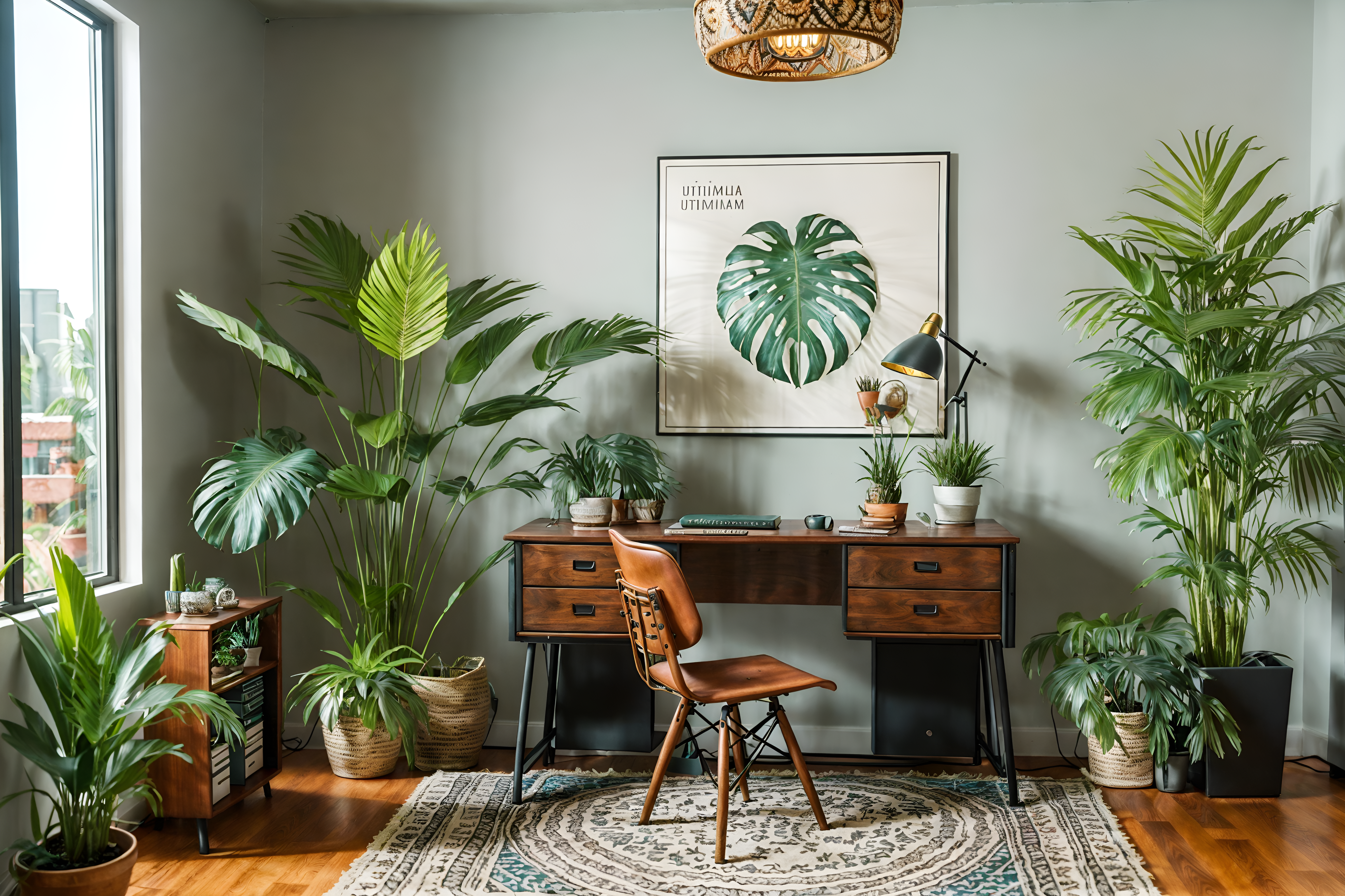 photo from pinterest of boho-chic-style interior designed (office interior) with office desks and cabinets and desk lamps and seating area with sofa and office chairs and lounge chairs and plants and computer desks cinematic photo, highly detailed, cinematic lighting, ultra-detailed, ultrarealistic, photorealism, 8k. trending on pinterest. boho-chic interior design style. masterpiece, cinematic light, ultrarealistic+, photorealistic+, 8k, raw photo, realistic, sharp focus on eyes, (symmetrical eyes), (intact eyes), hyperrealistic, highest quality, best quality, , highly detailed, masterpiece, best quality, extremely detailed 8k wallpaper, masterpiece, best quality, ultra-detailed, best shadow, detailed background, detailed face, detailed eyes, high contrast, best illumination, detailed face, dulux, caustic, dynamic angle, detailed glow. dramatic lighting. highly detailed, insanely detailed hair, symmetrical, intricate details, professionally retouched, 8k high definition. strong bokeh. award winning photo.