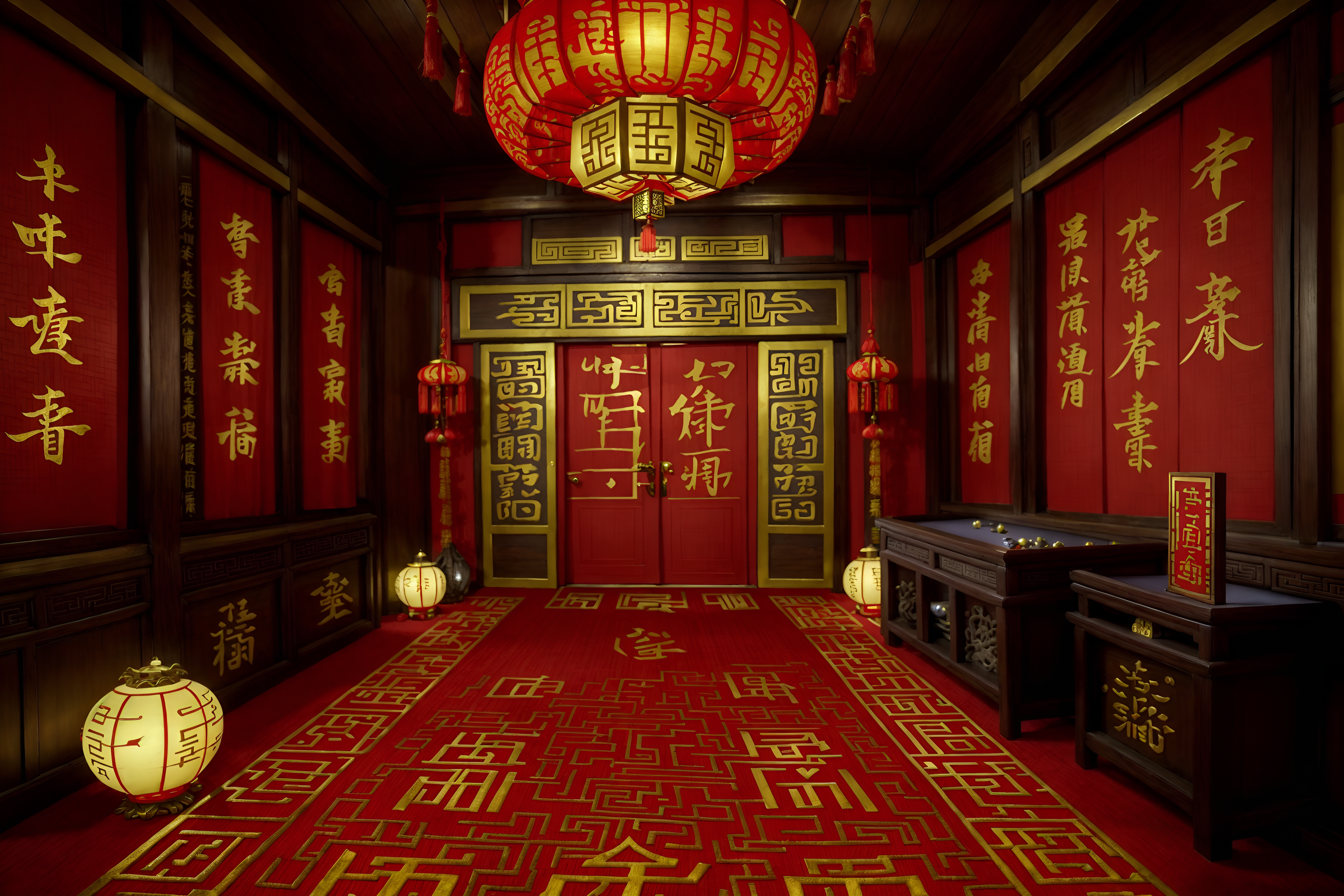 photo from pinterest of chinese new year-style interior designed (gaming room interior) . with door couplets and fai chun banners and mei hwa flowers and red and gold tassels and money tree and gold ingots and chinese knots and chinese red lanterns. . cinematic photo, highly detailed, cinematic lighting, ultra-detailed, ultrarealistic, photorealism, 8k. trending on pinterest. chinese new year interior design style. masterpiece, cinematic light, ultrarealistic+, photorealistic+, 8k, raw photo, realistic, sharp focus on eyes, (symmetrical eyes), (intact eyes), hyperrealistic, highest quality, best quality, , highly detailed, masterpiece, best quality, extremely detailed 8k wallpaper, masterpiece, best quality, ultra-detailed, best shadow, detailed background, detailed face, detailed eyes, high contrast, best illumination, detailed face, dulux, caustic, dynamic angle, detailed glow. dramatic lighting. highly detailed, insanely detailed hair, symmetrical, intricate details, professionally retouched, 8k high definition. strong bokeh. award winning photo.