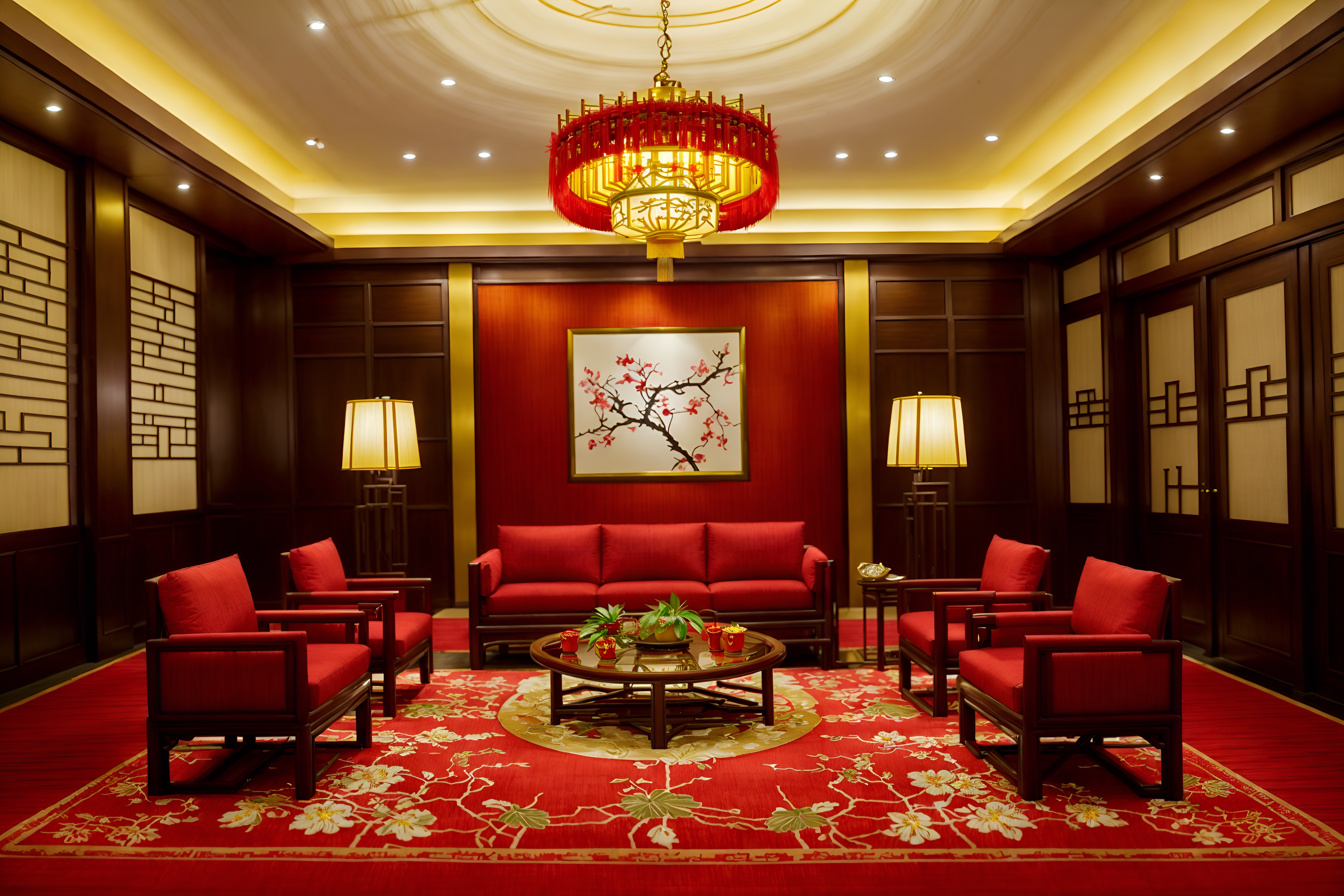photo from pinterest of chinese new year-style interior designed (hotel lobby interior) with plant and sofas and coffee tables and rug and lounge chairs and check in desk and hanging lamps and furniture. . with vases of plum blossoms and orchids and paper cuttings and zodiac calendar and door couplets and red and gold tassels and paper firecrackers and red and gold candles and mei hwa flowers. . cinematic photo, highly detailed, cinematic lighting, ultra-detailed, ultrarealistic, photorealism, 8k. trending on pinterest. chinese new year interior design style. masterpiece, cinematic light, ultrarealistic+, photorealistic+, 8k, raw photo, realistic, sharp focus on eyes, (symmetrical eyes), (intact eyes), hyperrealistic, highest quality, best quality, , highly detailed, masterpiece, best quality, extremely detailed 8k wallpaper, masterpiece, best quality, ultra-detailed, best shadow, detailed background, detailed face, detailed eyes, high contrast, best illumination, detailed face, dulux, caustic, dynamic angle, detailed glow. dramatic lighting. highly detailed, insanely detailed hair, symmetrical, intricate details, professionally retouched, 8k high definition. strong bokeh. award winning photo.
