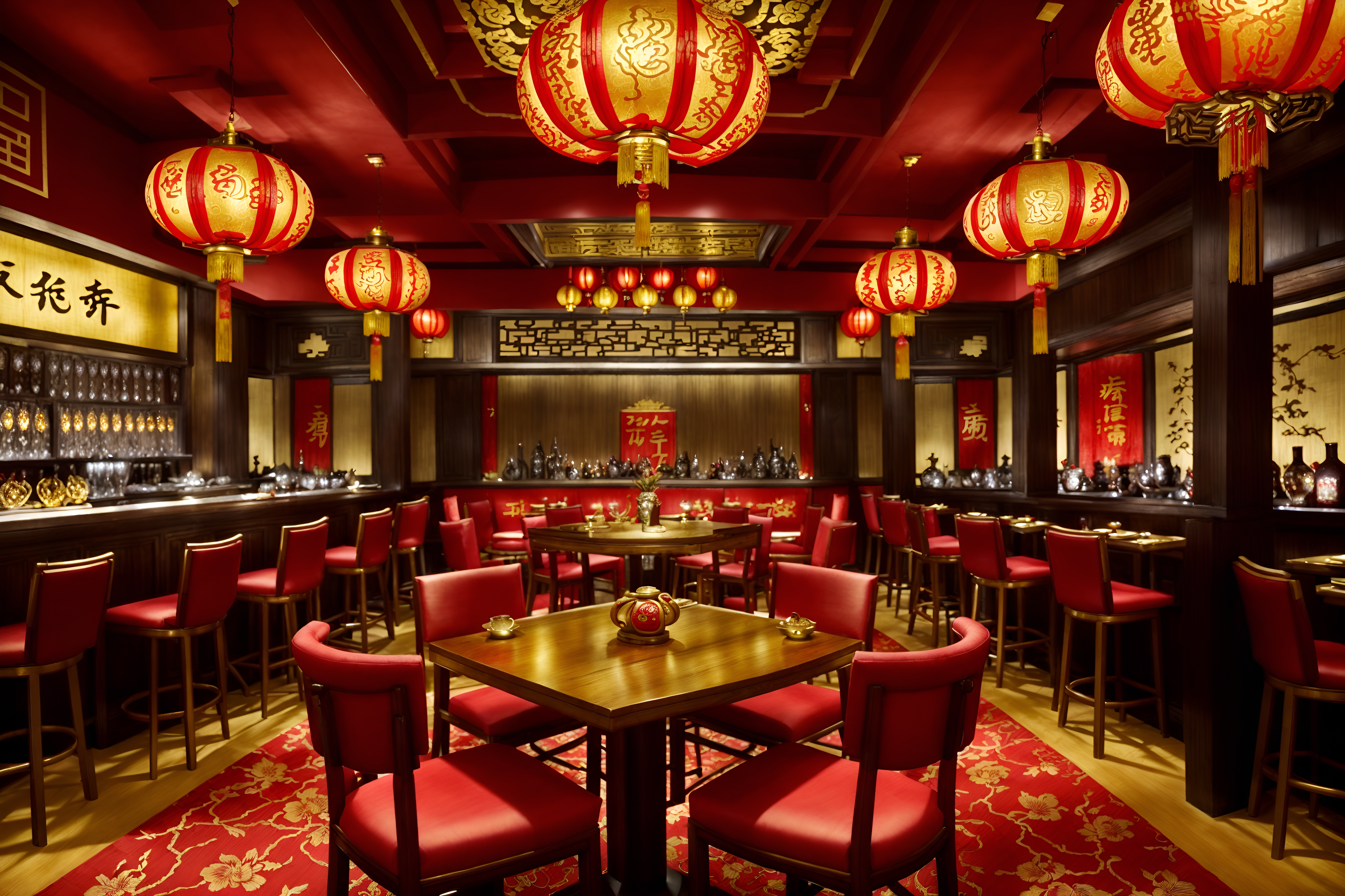photo from pinterest of chinese new year-style interior designed (restaurant interior) with restaurant bar and restaurant chairs and restaurant dining tables and restaurant decor and restaurant bar. . with fai chun banners and chinese red lanterns and chinese knots and gold ingots and red and gold candles and vases of plum blossoms and orchids and door couplets and paper cuttings. . cinematic photo, highly detailed, cinematic lighting, ultra-detailed, ultrarealistic, photorealism, 8k. trending on pinterest. chinese new year interior design style. masterpiece, cinematic light, ultrarealistic+, photorealistic+, 8k, raw photo, realistic, sharp focus on eyes, (symmetrical eyes), (intact eyes), hyperrealistic, highest quality, best quality, , highly detailed, masterpiece, best quality, extremely detailed 8k wallpaper, masterpiece, best quality, ultra-detailed, best shadow, detailed background, detailed face, detailed eyes, high contrast, best illumination, detailed face, dulux, caustic, dynamic angle, detailed glow. dramatic lighting. highly detailed, insanely detailed hair, symmetrical, intricate details, professionally retouched, 8k high definition. strong bokeh. award winning photo.
