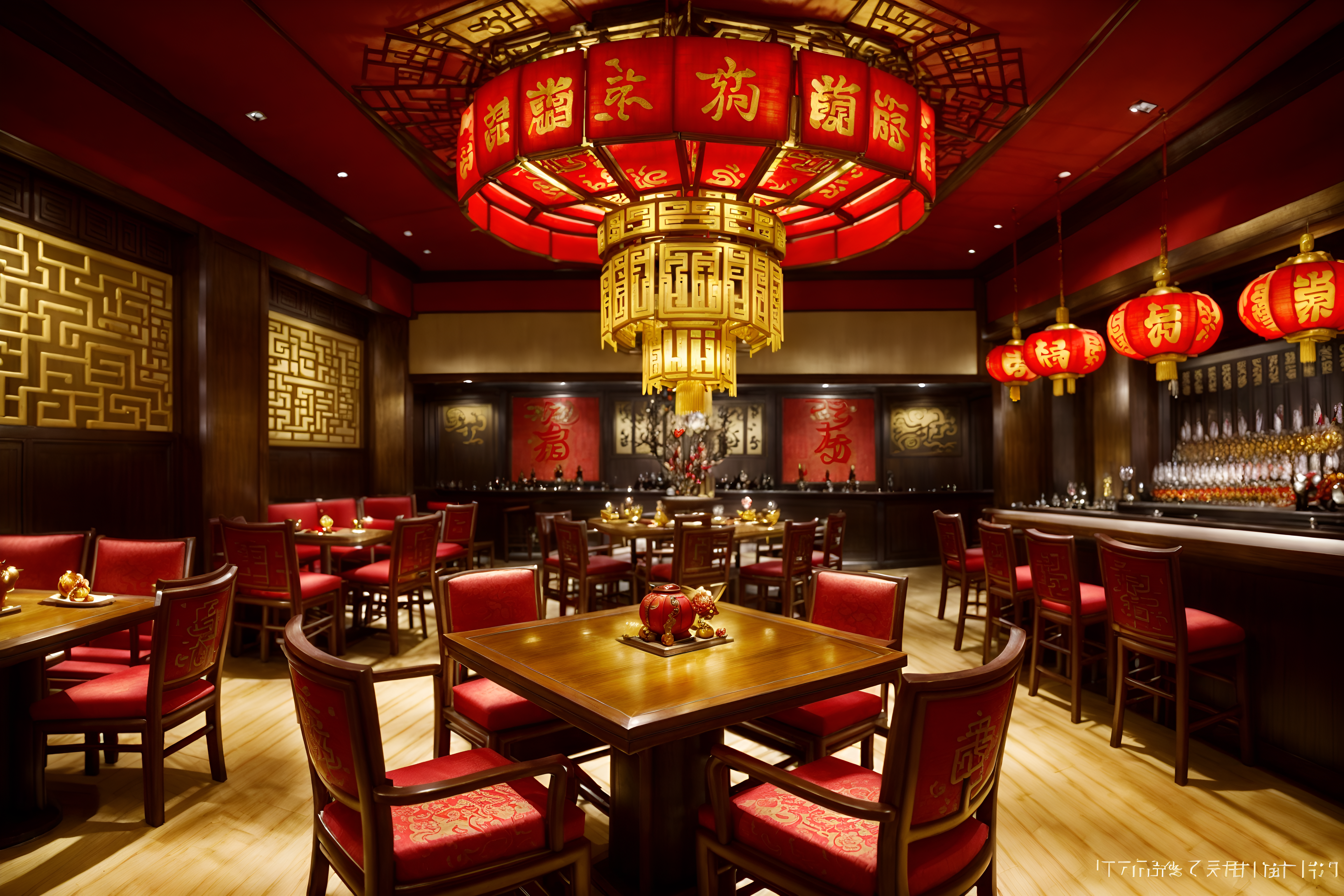 photo from pinterest of chinese new year-style interior designed (restaurant interior) with restaurant bar and restaurant chairs and restaurant dining tables and restaurant decor and restaurant bar. . with fai chun banners and chinese red lanterns and chinese knots and gold ingots and red and gold candles and vases of plum blossoms and orchids and door couplets and paper cuttings. . cinematic photo, highly detailed, cinematic lighting, ultra-detailed, ultrarealistic, photorealism, 8k. trending on pinterest. chinese new year interior design style. masterpiece, cinematic light, ultrarealistic+, photorealistic+, 8k, raw photo, realistic, sharp focus on eyes, (symmetrical eyes), (intact eyes), hyperrealistic, highest quality, best quality, , highly detailed, masterpiece, best quality, extremely detailed 8k wallpaper, masterpiece, best quality, ultra-detailed, best shadow, detailed background, detailed face, detailed eyes, high contrast, best illumination, detailed face, dulux, caustic, dynamic angle, detailed glow. dramatic lighting. highly detailed, insanely detailed hair, symmetrical, intricate details, professionally retouched, 8k high definition. strong bokeh. award winning photo.