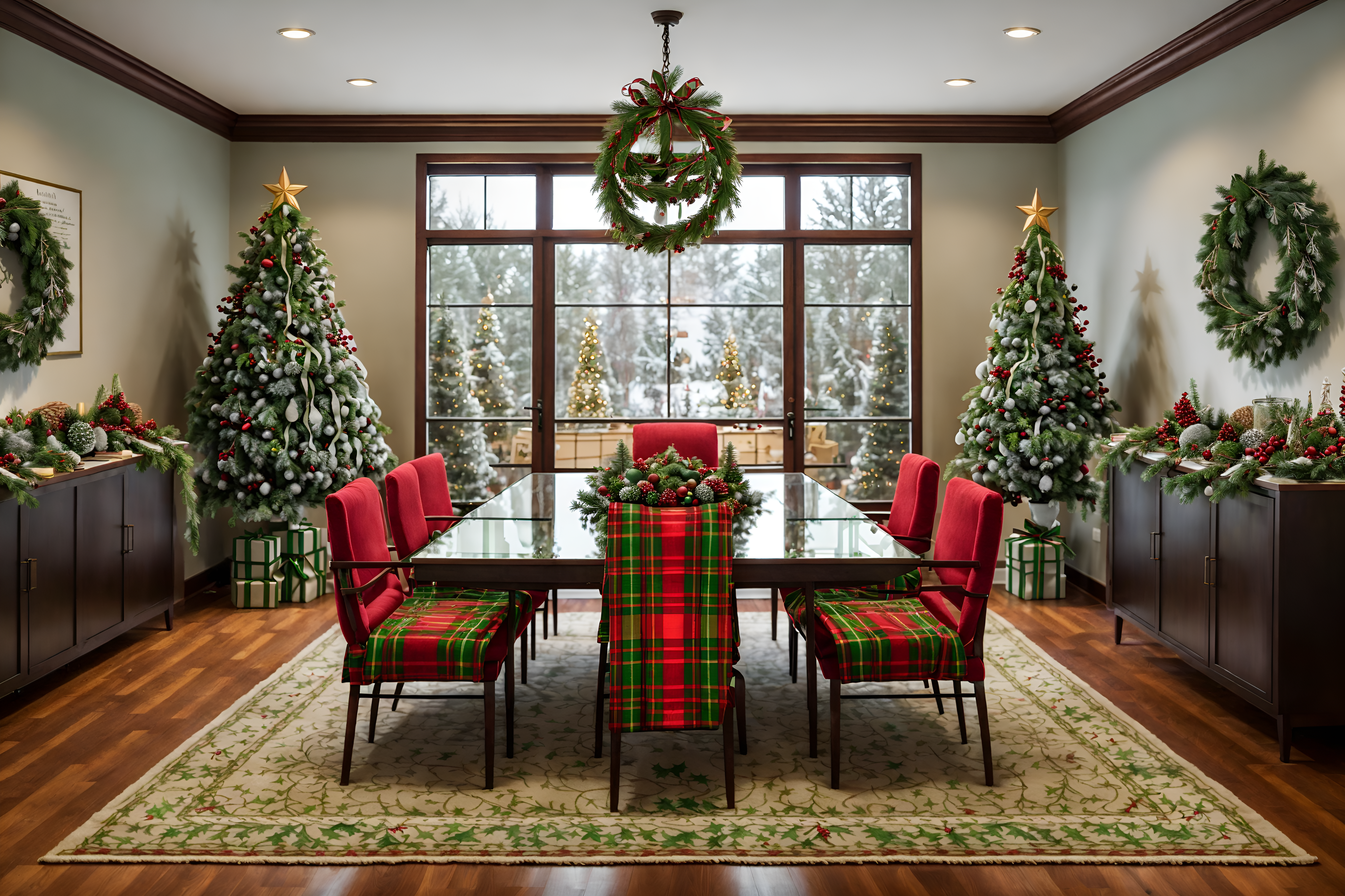 photo from pinterest of christmas-style interior designed (meeting room interior) with plant and vase and painting or photo on wall and cabinets and glass doors and boardroom table and office chairs and glass walls. . with berries and greenery draped and plaid rugs and christmas ornaments and tie pinecones and berries and a few big socks hanging and giftwrapped gifts and snow outside and ribbons. . cinematic photo, highly detailed, cinematic lighting, ultra-detailed, ultrarealistic, photorealism, 8k. trending on pinterest. christmas interior design style. masterpiece, cinematic light, ultrarealistic+, photorealistic+, 8k, raw photo, realistic, sharp focus on eyes, (symmetrical eyes), (intact eyes), hyperrealistic, highest quality, best quality, , highly detailed, masterpiece, best quality, extremely detailed 8k wallpaper, masterpiece, best quality, ultra-detailed, best shadow, detailed background, detailed face, detailed eyes, high contrast, best illumination, detailed face, dulux, caustic, dynamic angle, detailed glow. dramatic lighting. highly detailed, insanely detailed hair, symmetrical, intricate details, professionally retouched, 8k high definition. strong bokeh. award winning photo.