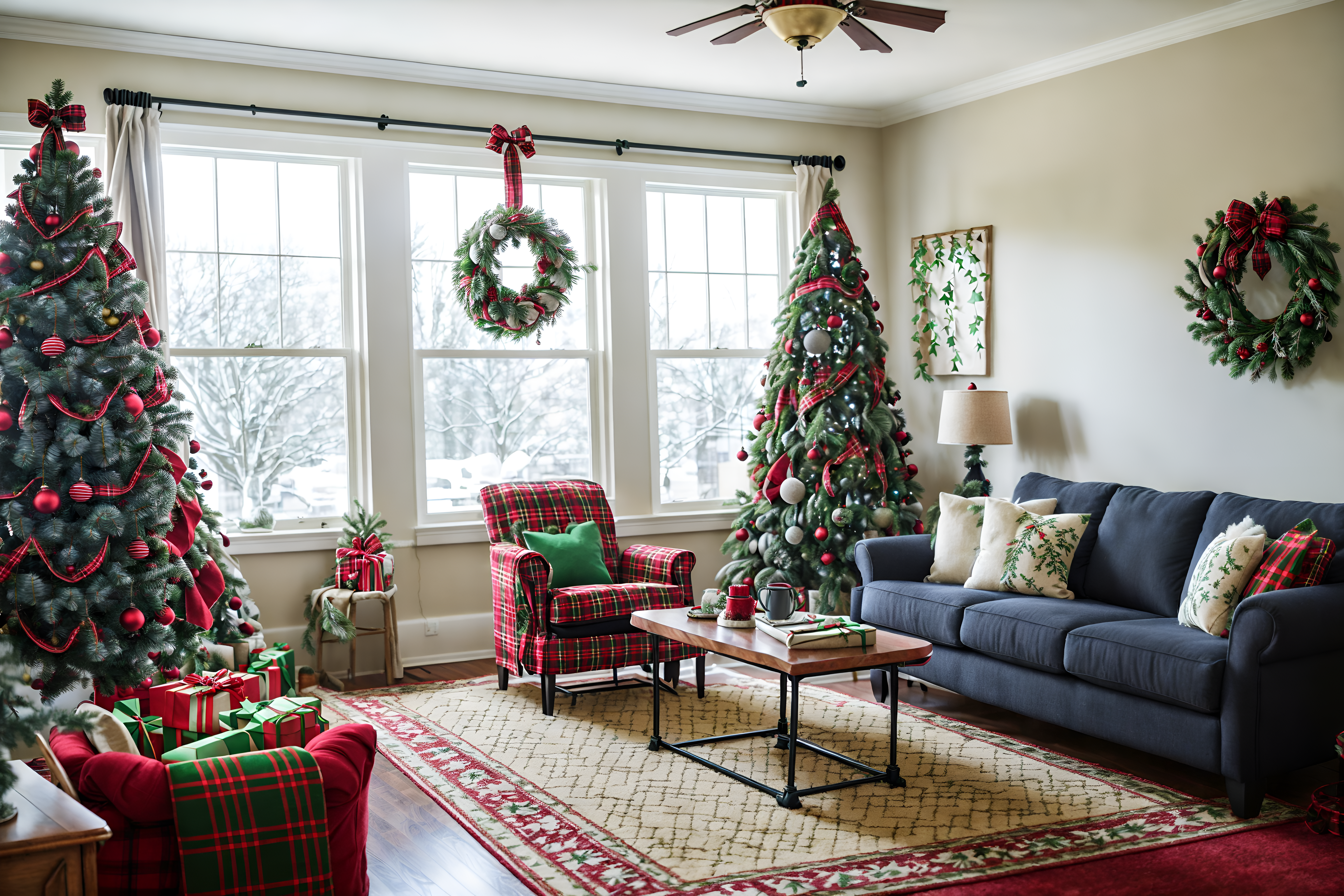 photo from pinterest of christmas-style interior designed (office interior) with lounge chairs and seating area with sofa and computer desks and windows and plants and office desks and cabinets and office chairs. . with christmas ornaments and ribbons and a few big socks hanging and plaid rugs and tie pinecones and berries and snow outside and giftwrapped gifts and berries and greenery draped. . cinematic photo, highly detailed, cinematic lighting, ultra-detailed, ultrarealistic, photorealism, 8k. trending on pinterest. christmas interior design style. masterpiece, cinematic light, ultrarealistic+, photorealistic+, 8k, raw photo, realistic, sharp focus on eyes, (symmetrical eyes), (intact eyes), hyperrealistic, highest quality, best quality, , highly detailed, masterpiece, best quality, extremely detailed 8k wallpaper, masterpiece, best quality, ultra-detailed, best shadow, detailed background, detailed face, detailed eyes, high contrast, best illumination, detailed face, dulux, caustic, dynamic angle, detailed glow. dramatic lighting. highly detailed, insanely detailed hair, symmetrical, intricate details, professionally retouched, 8k high definition. strong bokeh. award winning photo.