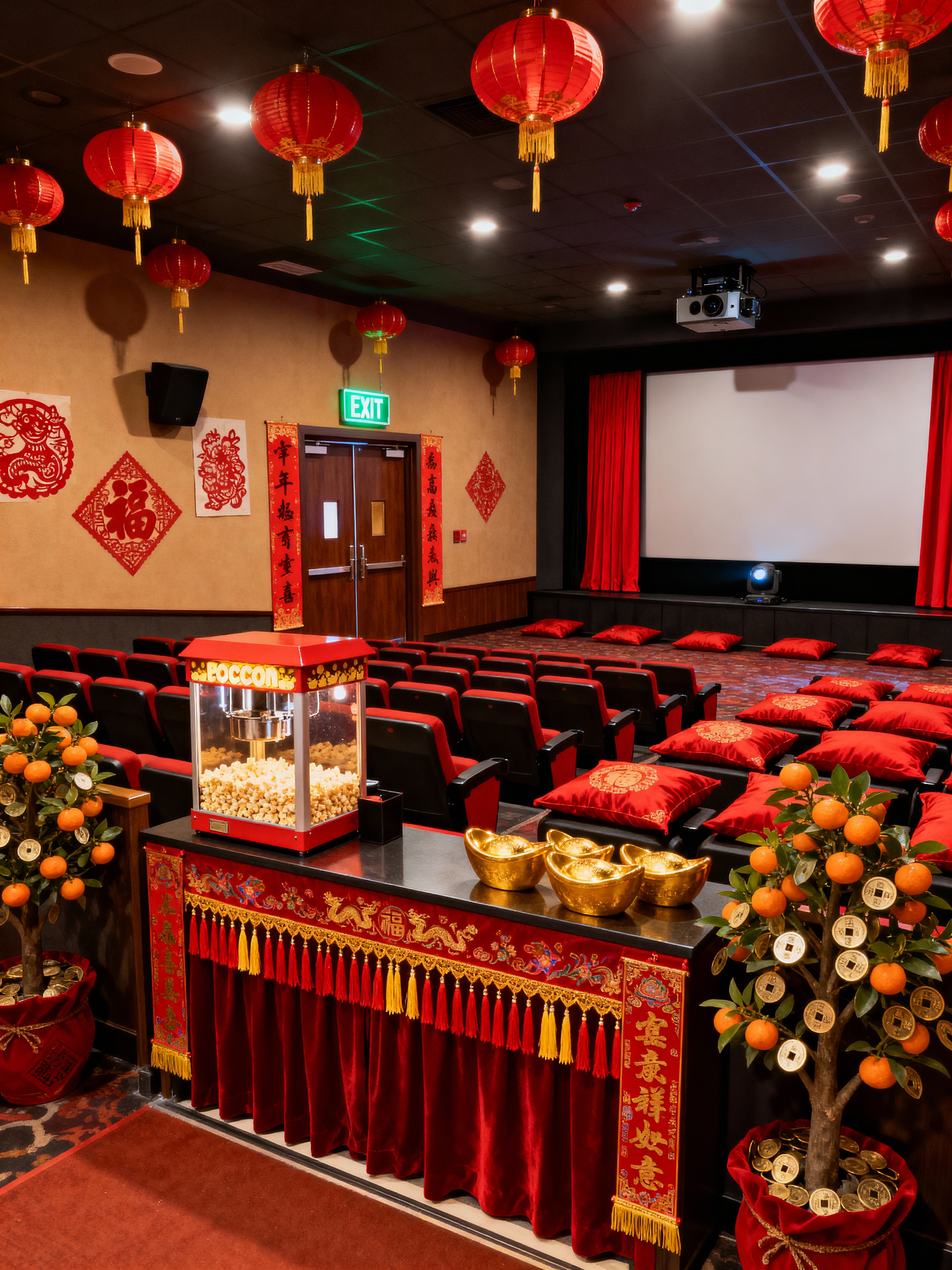 Chinese New Year cinemasinterior decorate this cinema with chinese new year style. . . with concession stand and popcorn machine and aisles and movie screen and curtains and dim lighting and projector and exit signs. . with chinese red lanterns and paper cuttings and orange trees and red fabric & pillows and money tree and red and gold tassels and gold ingots and door couplets. . .interior decorate this cinema with chinese new year style. . . with concession stand and popcorn machine and aisles and movie screen and curtains and dim lighting and projector and exit signs. . with chinese red lanterns and paper cuttings and orange trees and red fabric & pillows and money tree and red and gold tassels and gold ingots and door couplets. . .interior decorate this cinema with chinese new year style. . . with concession stand and popcorn machine and aisles and movie screen and curtains and dim lighting and projector and exit signs. . with chinese red lanterns and paper cuttings and orange trees and red fabric & pillows and money tree and red and gold tassels and gold ingots and door couplets. . .interior decorate this cinema with chinese new year style. . . with concession stand and popcorn machine and aisles and movie screen and curtains and dim lighting and projector and exit signs. . with chinese red lanterns and paper cuttings and orange trees and red fabric & pillows and money tree and red and gold tassels and gold ingots and door couplets. . .
