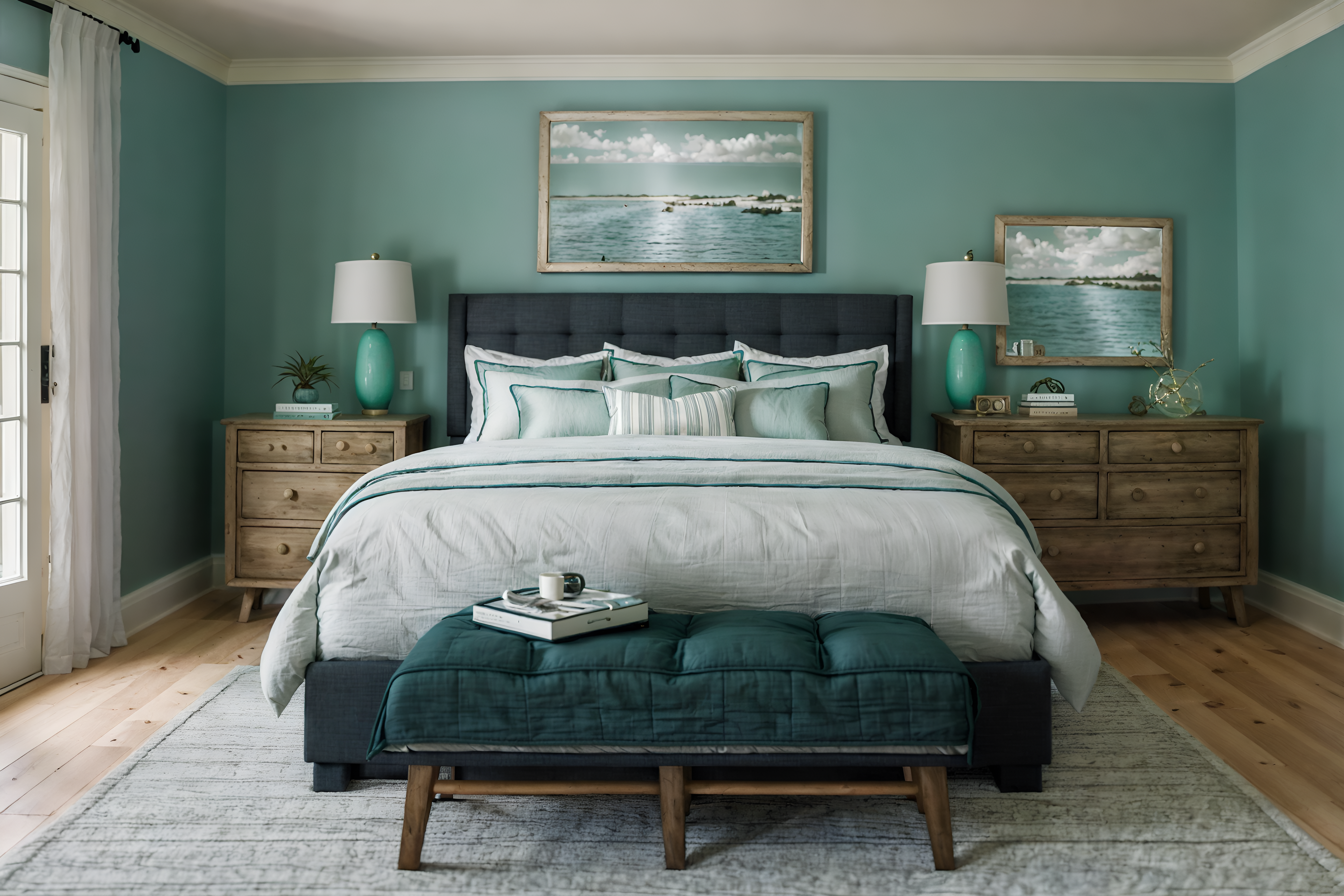 photo from pinterest of coastal-style interior designed (bedroom interior) with bed and night light and bedside table or night stand and mirror and storage bench or ottoman and dresser closet and plant and headboard. . with . . cinematic photo, highly detailed, cinematic lighting, ultra-detailed, ultrarealistic, photorealism, 8k. trending on pinterest. coastal interior design style. masterpiece, cinematic light, ultrarealistic+, photorealistic+, 8k, raw photo, realistic, sharp focus on eyes, (symmetrical eyes), (intact eyes), hyperrealistic, highest quality, best quality, , highly detailed, masterpiece, best quality, extremely detailed 8k wallpaper, masterpiece, best quality, ultra-detailed, best shadow, detailed background, detailed face, detailed eyes, high contrast, best illumination, detailed face, dulux, caustic, dynamic angle, detailed glow. dramatic lighting. highly detailed, insanely detailed hair, symmetrical, intricate details, professionally retouched, 8k high definition. strong bokeh. award winning photo.