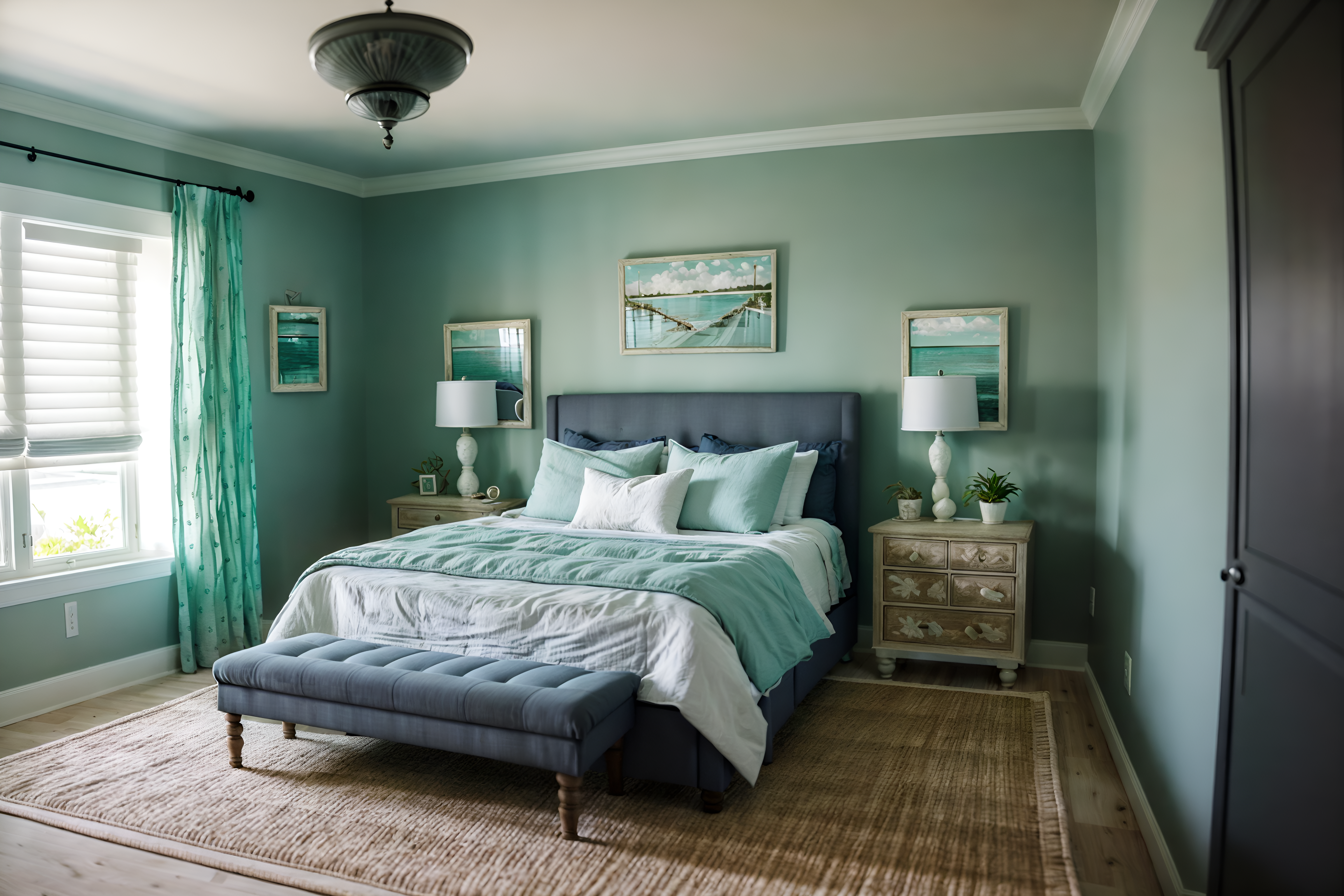 photo from pinterest of coastal-style interior designed (bedroom interior) with bed and night light and bedside table or night stand and mirror and storage bench or ottoman and dresser closet and plant and headboard. . with . . cinematic photo, highly detailed, cinematic lighting, ultra-detailed, ultrarealistic, photorealism, 8k. trending on pinterest. coastal interior design style. masterpiece, cinematic light, ultrarealistic+, photorealistic+, 8k, raw photo, realistic, sharp focus on eyes, (symmetrical eyes), (intact eyes), hyperrealistic, highest quality, best quality, , highly detailed, masterpiece, best quality, extremely detailed 8k wallpaper, masterpiece, best quality, ultra-detailed, best shadow, detailed background, detailed face, detailed eyes, high contrast, best illumination, detailed face, dulux, caustic, dynamic angle, detailed glow. dramatic lighting. highly detailed, insanely detailed hair, symmetrical, intricate details, professionally retouched, 8k high definition. strong bokeh. award winning photo.