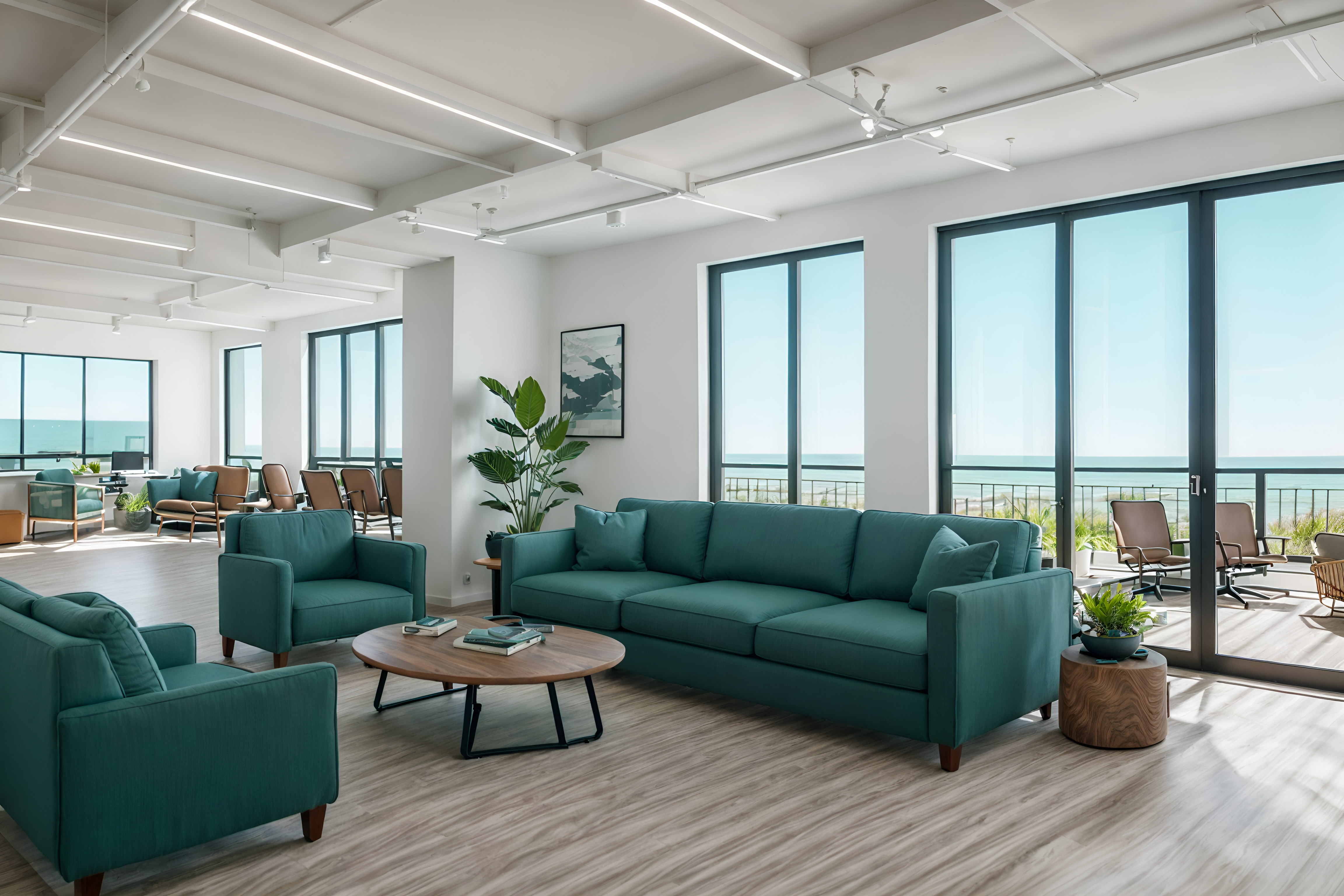 photo from pinterest of coastal-style interior designed (coworking space interior) with seating area with sofa and office chairs and lounge chairs and office desks and seating area with sofa. . with . . cinematic photo, highly detailed, cinematic lighting, ultra-detailed, ultrarealistic, photorealism, 8k. trending on pinterest. coastal interior design style. masterpiece, cinematic light, ultrarealistic+, photorealistic+, 8k, raw photo, realistic, sharp focus on eyes, (symmetrical eyes), (intact eyes), hyperrealistic, highest quality, best quality, , highly detailed, masterpiece, best quality, extremely detailed 8k wallpaper, masterpiece, best quality, ultra-detailed, best shadow, detailed background, detailed face, detailed eyes, high contrast, best illumination, detailed face, dulux, caustic, dynamic angle, detailed glow. dramatic lighting. highly detailed, insanely detailed hair, symmetrical, intricate details, professionally retouched, 8k high definition. strong bokeh. award winning photo.