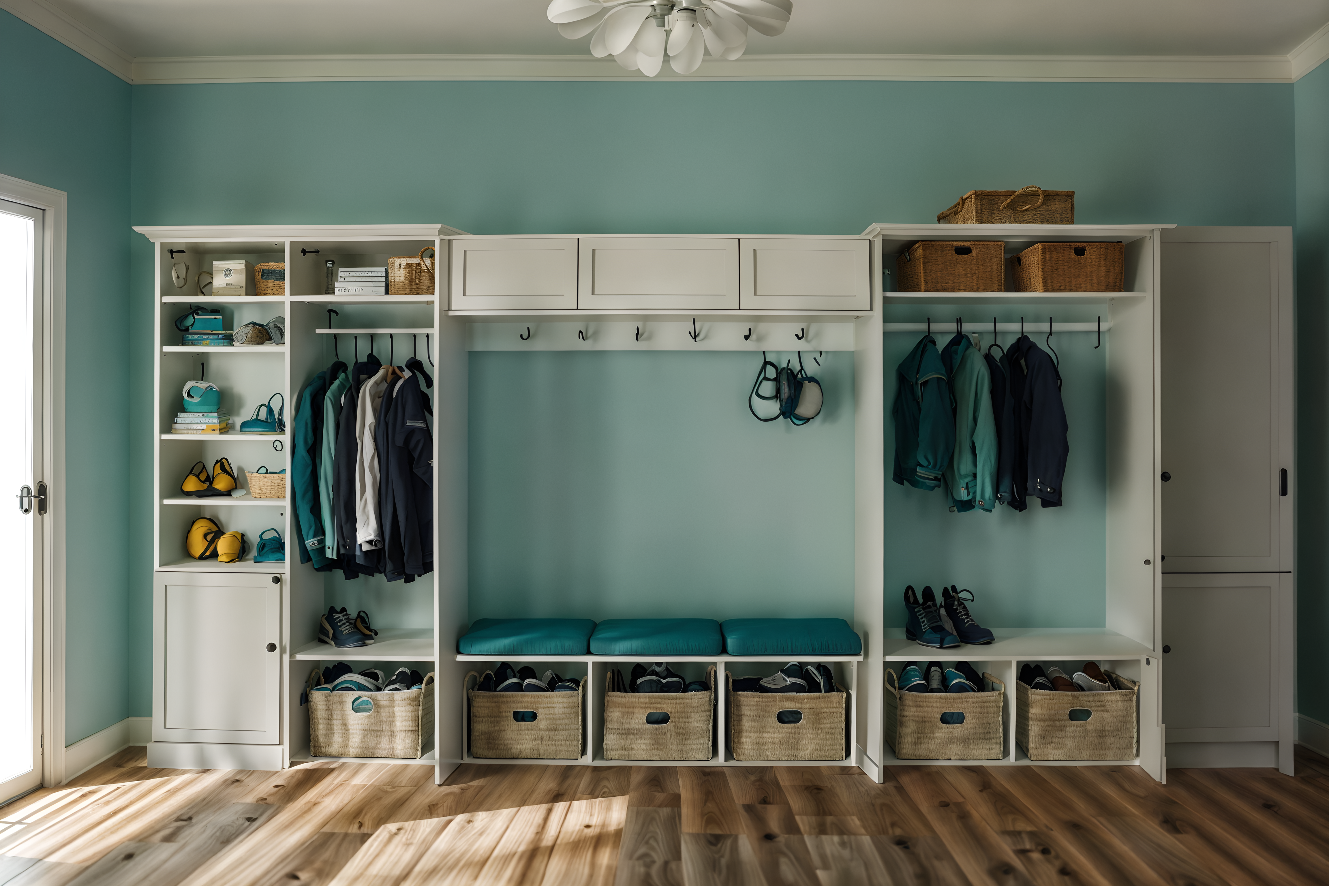 photo from pinterest of coastal-style interior designed (drop zone interior) with storage baskets and cabinets and shelves for shoes and wall hooks for coats and storage drawers and high up storage and a bench and lockers. . with . . cinematic photo, highly detailed, cinematic lighting, ultra-detailed, ultrarealistic, photorealism, 8k. trending on pinterest. coastal interior design style. masterpiece, cinematic light, ultrarealistic+, photorealistic+, 8k, raw photo, realistic, sharp focus on eyes, (symmetrical eyes), (intact eyes), hyperrealistic, highest quality, best quality, , highly detailed, masterpiece, best quality, extremely detailed 8k wallpaper, masterpiece, best quality, ultra-detailed, best shadow, detailed background, detailed face, detailed eyes, high contrast, best illumination, detailed face, dulux, caustic, dynamic angle, detailed glow. dramatic lighting. highly detailed, insanely detailed hair, symmetrical, intricate details, professionally retouched, 8k high definition. strong bokeh. award winning photo.