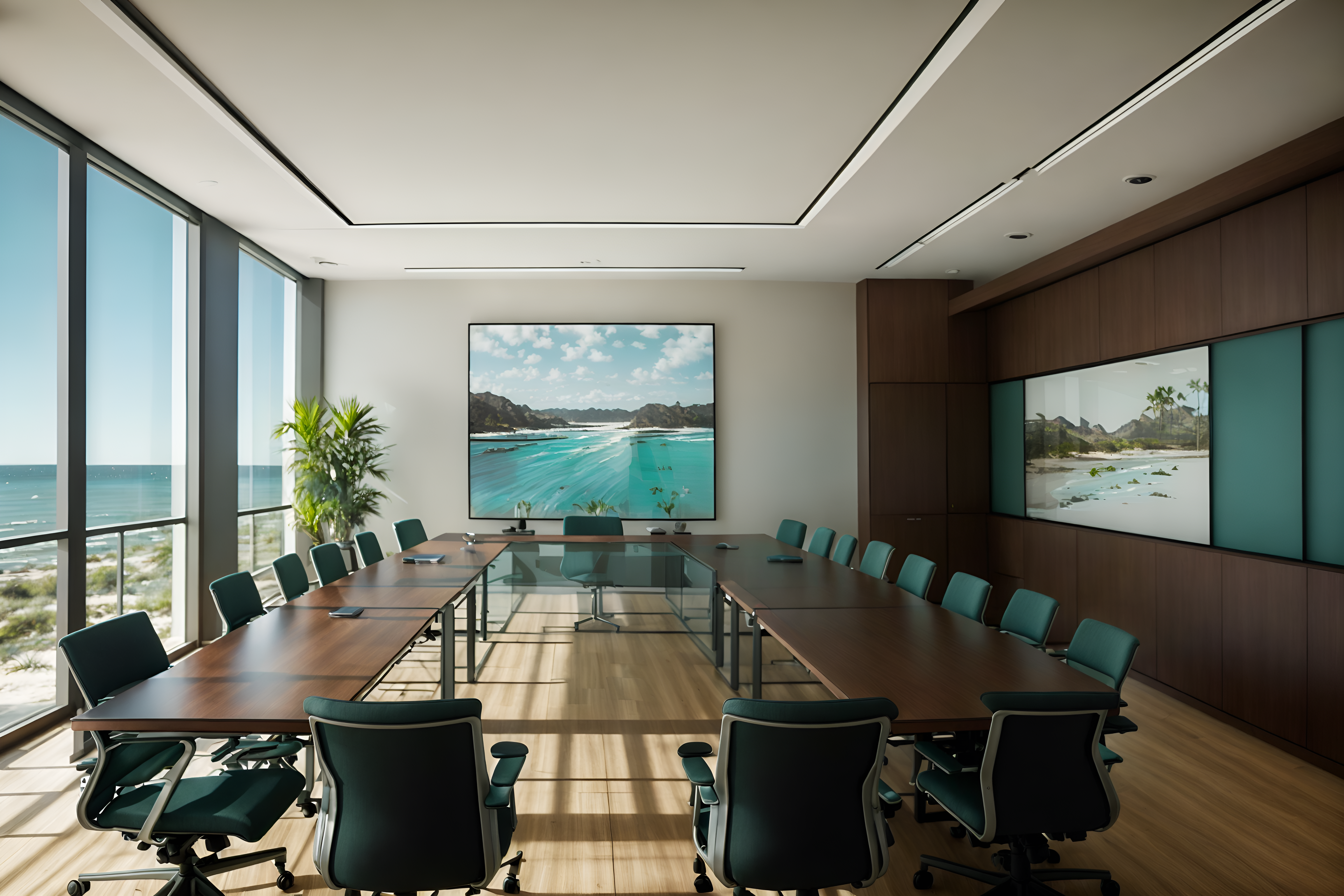 photo from pinterest of coastal-style interior designed (meeting room interior) with boardroom table and office chairs and painting or photo on wall and glass doors and glass walls and cabinets and plant and vase. . with . . cinematic photo, highly detailed, cinematic lighting, ultra-detailed, ultrarealistic, photorealism, 8k. trending on pinterest. coastal interior design style. masterpiece, cinematic light, ultrarealistic+, photorealistic+, 8k, raw photo, realistic, sharp focus on eyes, (symmetrical eyes), (intact eyes), hyperrealistic, highest quality, best quality, , highly detailed, masterpiece, best quality, extremely detailed 8k wallpaper, masterpiece, best quality, ultra-detailed, best shadow, detailed background, detailed face, detailed eyes, high contrast, best illumination, detailed face, dulux, caustic, dynamic angle, detailed glow. dramatic lighting. highly detailed, insanely detailed hair, symmetrical, intricate details, professionally retouched, 8k high definition. strong bokeh. award winning photo.