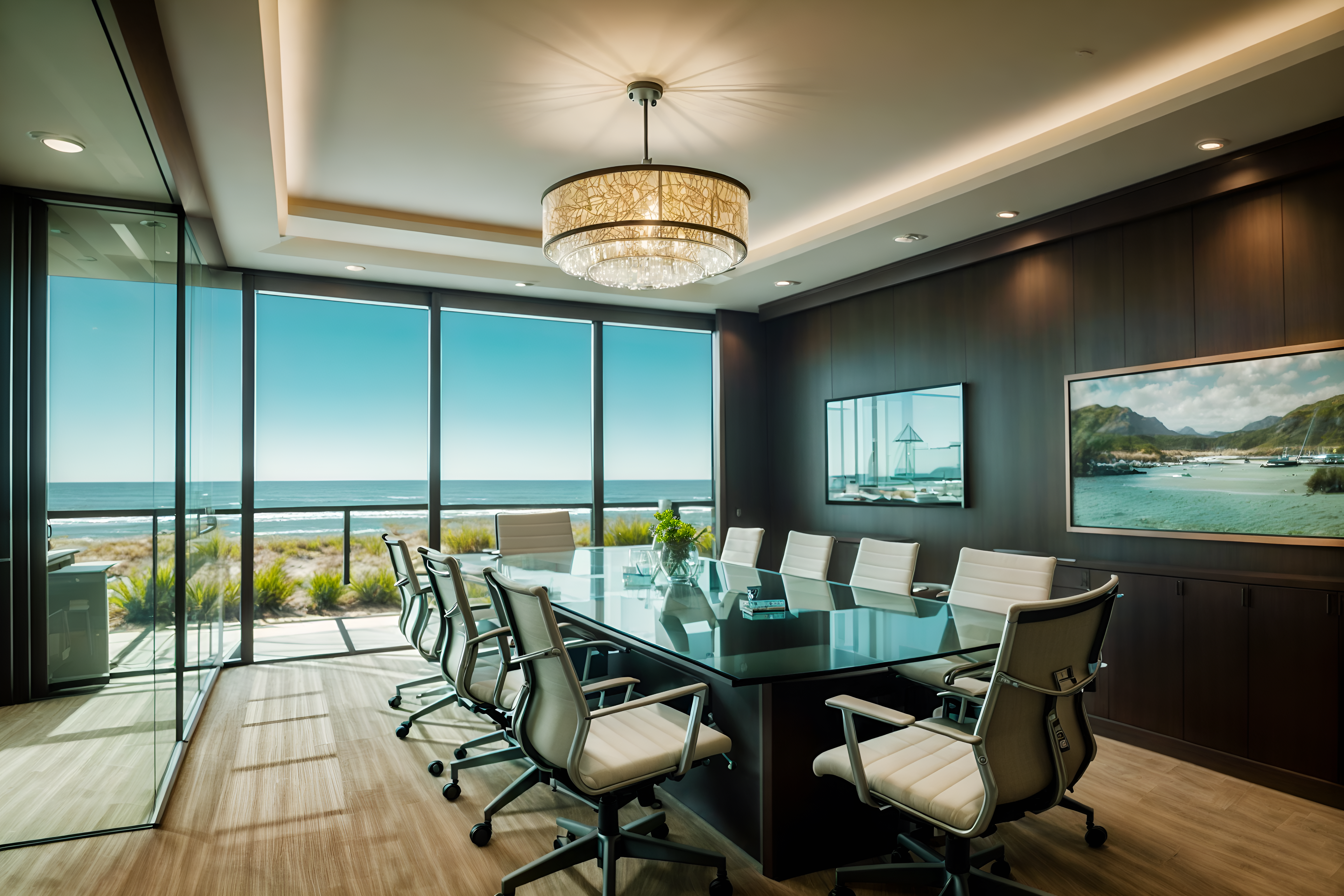 photo from pinterest of coastal-style interior designed (meeting room interior) with boardroom table and office chairs and painting or photo on wall and glass doors and glass walls and cabinets and plant and vase. . with . . cinematic photo, highly detailed, cinematic lighting, ultra-detailed, ultrarealistic, photorealism, 8k. trending on pinterest. coastal interior design style. masterpiece, cinematic light, ultrarealistic+, photorealistic+, 8k, raw photo, realistic, sharp focus on eyes, (symmetrical eyes), (intact eyes), hyperrealistic, highest quality, best quality, , highly detailed, masterpiece, best quality, extremely detailed 8k wallpaper, masterpiece, best quality, ultra-detailed, best shadow, detailed background, detailed face, detailed eyes, high contrast, best illumination, detailed face, dulux, caustic, dynamic angle, detailed glow. dramatic lighting. highly detailed, insanely detailed hair, symmetrical, intricate details, professionally retouched, 8k high definition. strong bokeh. award winning photo.
