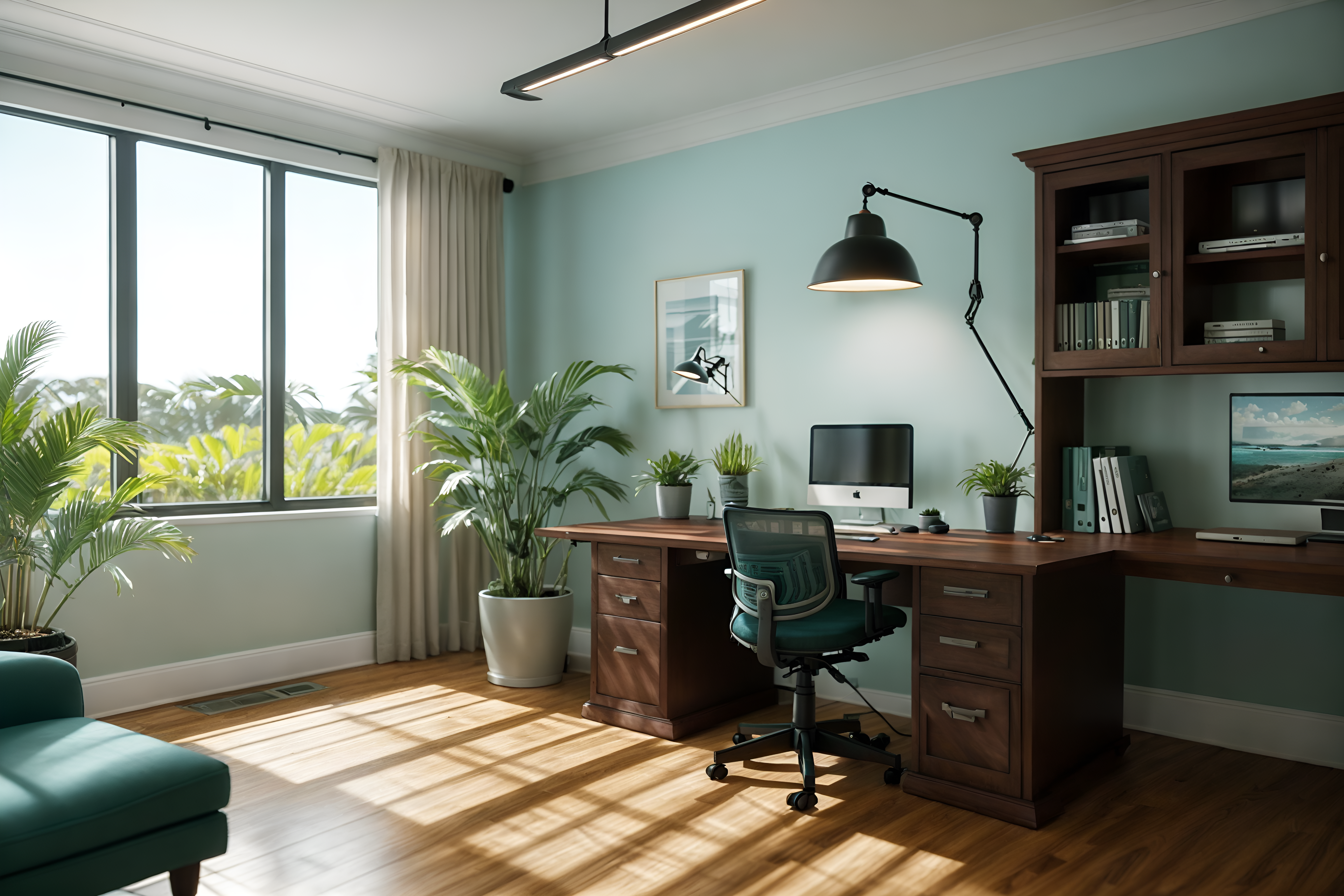 photo from pinterest of coastal-style interior designed (office interior) with cabinets and office desks and desk lamps and computer desks and office chairs and windows and seating area with sofa and plants. . with . . cinematic photo, highly detailed, cinematic lighting, ultra-detailed, ultrarealistic, photorealism, 8k. trending on pinterest. coastal interior design style. masterpiece, cinematic light, ultrarealistic+, photorealistic+, 8k, raw photo, realistic, sharp focus on eyes, (symmetrical eyes), (intact eyes), hyperrealistic, highest quality, best quality, , highly detailed, masterpiece, best quality, extremely detailed 8k wallpaper, masterpiece, best quality, ultra-detailed, best shadow, detailed background, detailed face, detailed eyes, high contrast, best illumination, detailed face, dulux, caustic, dynamic angle, detailed glow. dramatic lighting. highly detailed, insanely detailed hair, symmetrical, intricate details, professionally retouched, 8k high definition. strong bokeh. award winning photo.