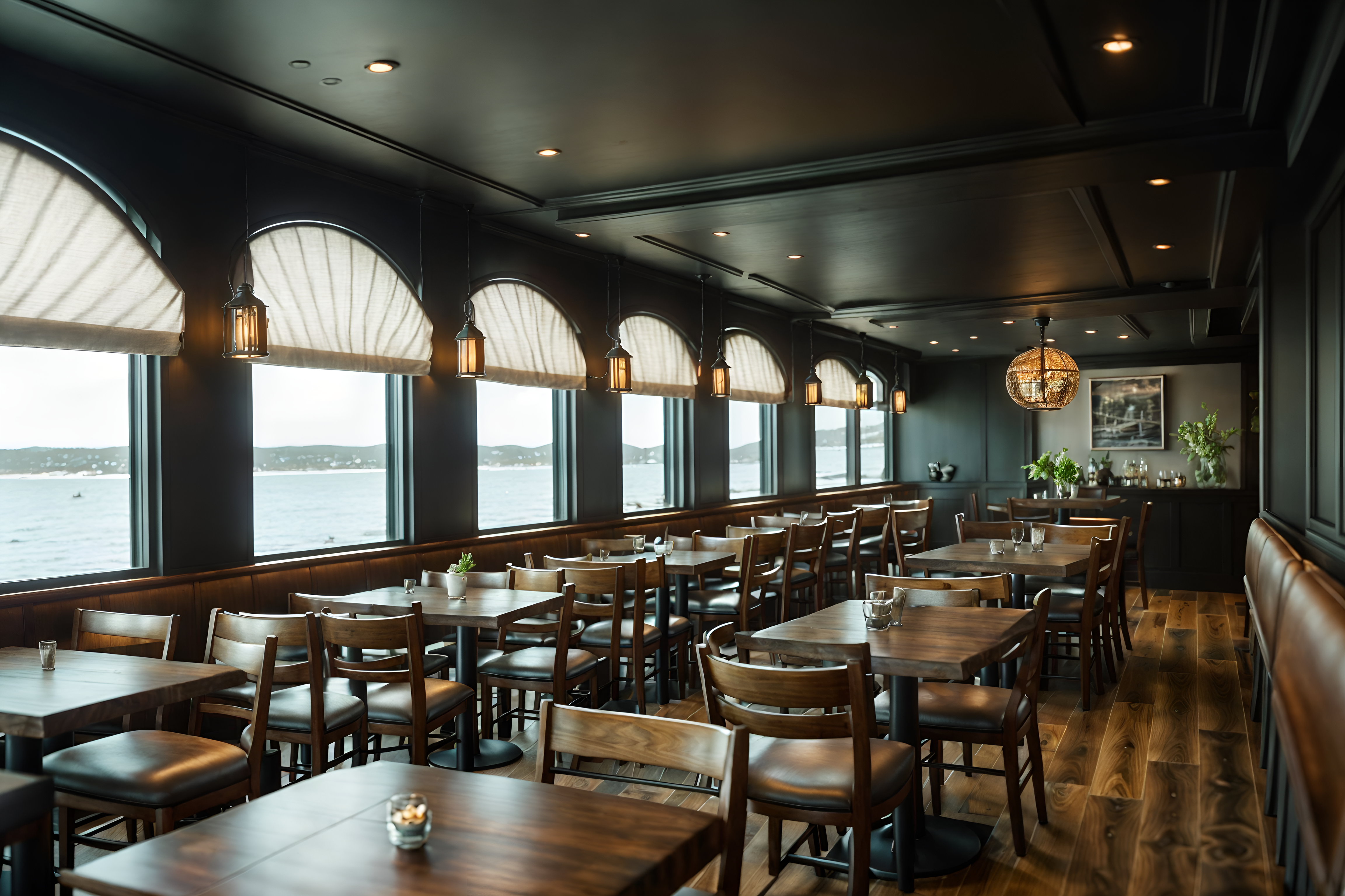 photo from pinterest of coastal-style interior designed (restaurant interior) with restaurant dining tables and restaurant chairs and restaurant decor and restaurant bar and restaurant dining tables. . with . . cinematic photo, highly detailed, cinematic lighting, ultra-detailed, ultrarealistic, photorealism, 8k. trending on pinterest. coastal interior design style. masterpiece, cinematic light, ultrarealistic+, photorealistic+, 8k, raw photo, realistic, sharp focus on eyes, (symmetrical eyes), (intact eyes), hyperrealistic, highest quality, best quality, , highly detailed, masterpiece, best quality, extremely detailed 8k wallpaper, masterpiece, best quality, ultra-detailed, best shadow, detailed background, detailed face, detailed eyes, high contrast, best illumination, detailed face, dulux, caustic, dynamic angle, detailed glow. dramatic lighting. highly detailed, insanely detailed hair, symmetrical, intricate details, professionally retouched, 8k high definition. strong bokeh. award winning photo.