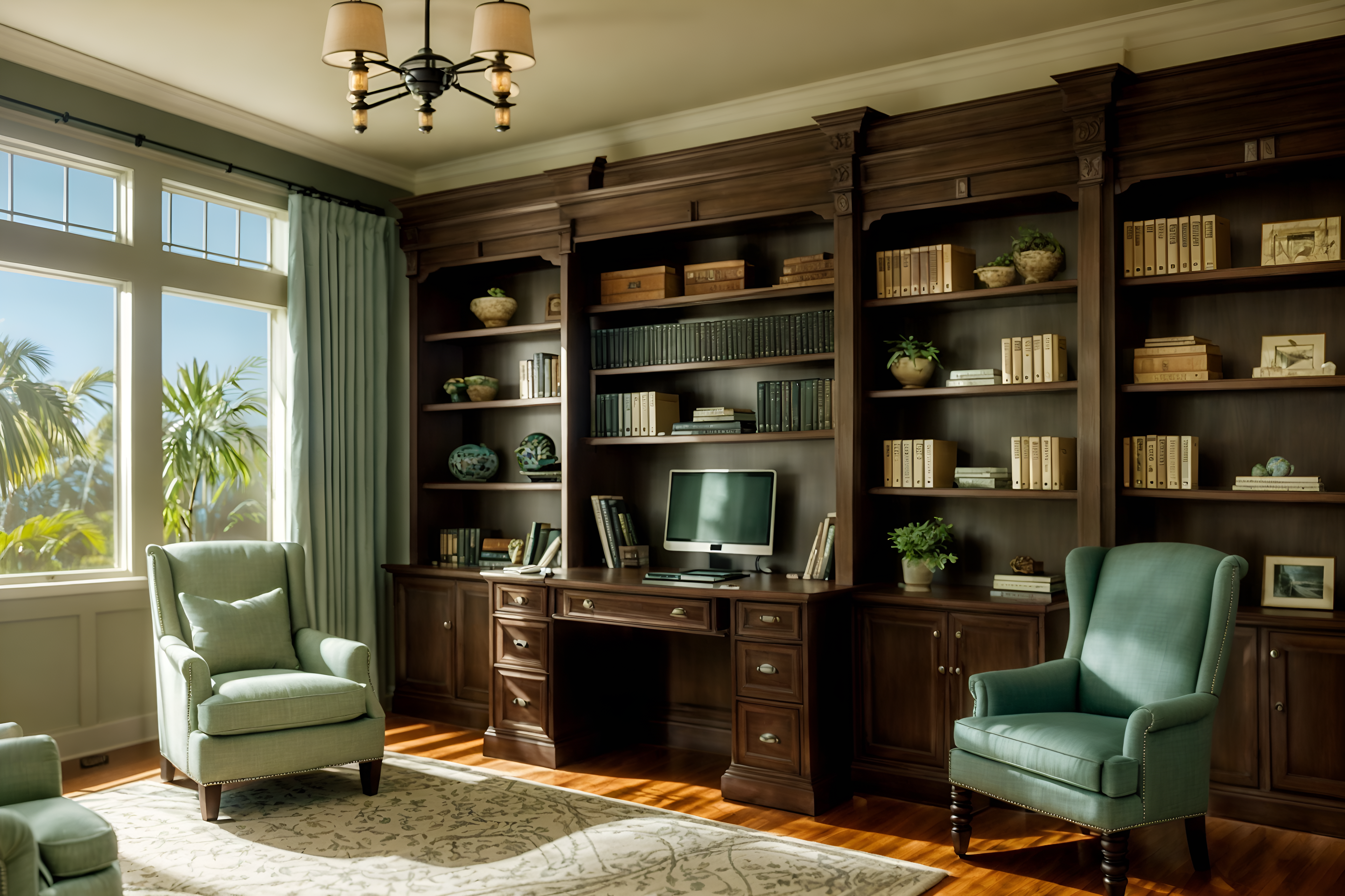 photo from pinterest of coastal-style interior designed (study room interior) with bookshelves and office chair and desk lamp and writing desk and cabinets and lounge chair and plant and bookshelves. . with . . cinematic photo, highly detailed, cinematic lighting, ultra-detailed, ultrarealistic, photorealism, 8k. trending on pinterest. coastal interior design style. masterpiece, cinematic light, ultrarealistic+, photorealistic+, 8k, raw photo, realistic, sharp focus on eyes, (symmetrical eyes), (intact eyes), hyperrealistic, highest quality, best quality, , highly detailed, masterpiece, best quality, extremely detailed 8k wallpaper, masterpiece, best quality, ultra-detailed, best shadow, detailed background, detailed face, detailed eyes, high contrast, best illumination, detailed face, dulux, caustic, dynamic angle, detailed glow. dramatic lighting. highly detailed, insanely detailed hair, symmetrical, intricate details, professionally retouched, 8k high definition. strong bokeh. award winning photo.