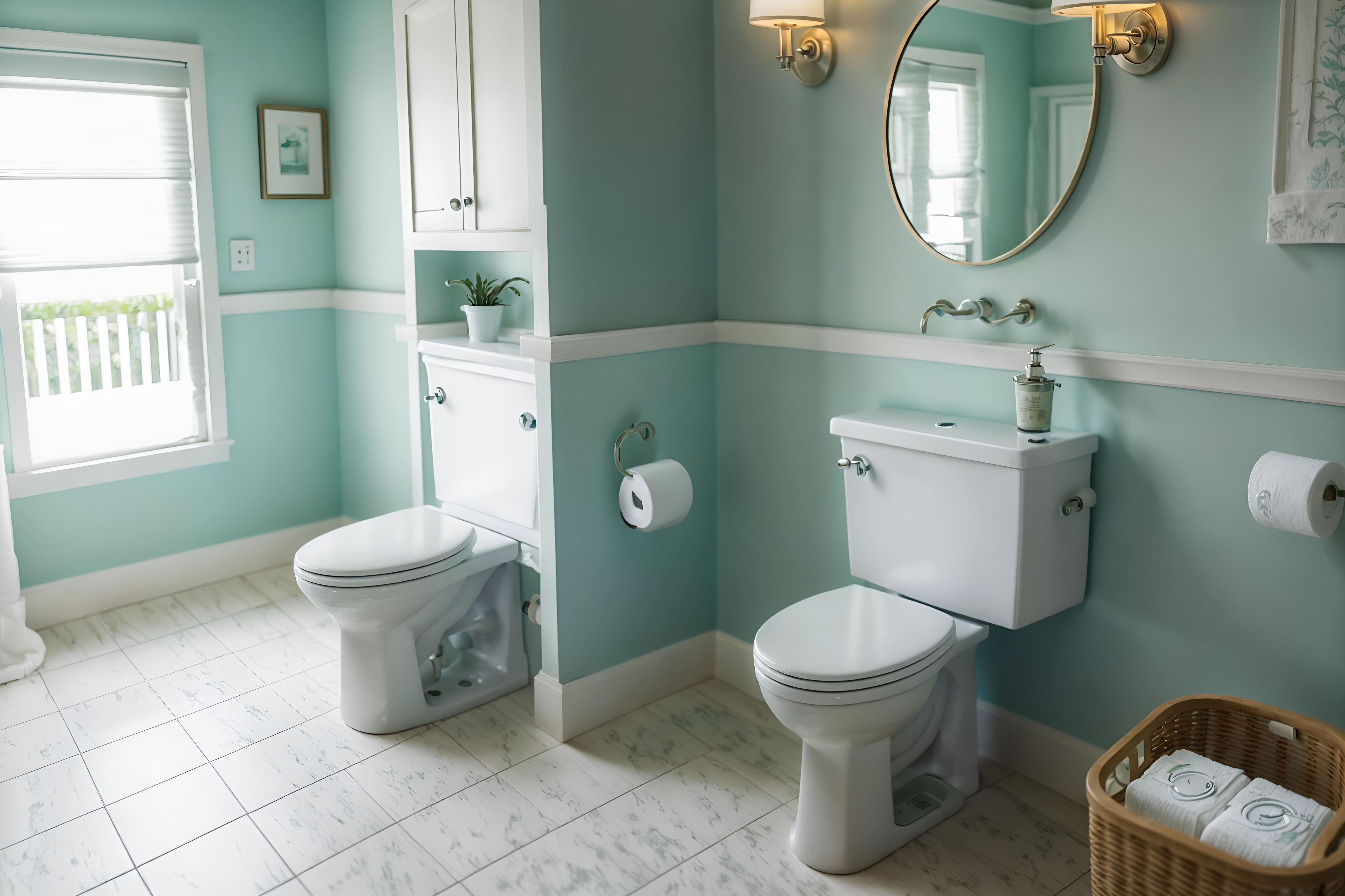 coastal toiletsinterior decorate this toilet with coastal style. . . with toilet paper hanger and toilet with toilet seat up and sink with tap and toilet paper hanger. . with nautical decor and ocean-inspired and beach vibes and relaxed style and sand tones and seaside colors and white decor and airy feel. . .