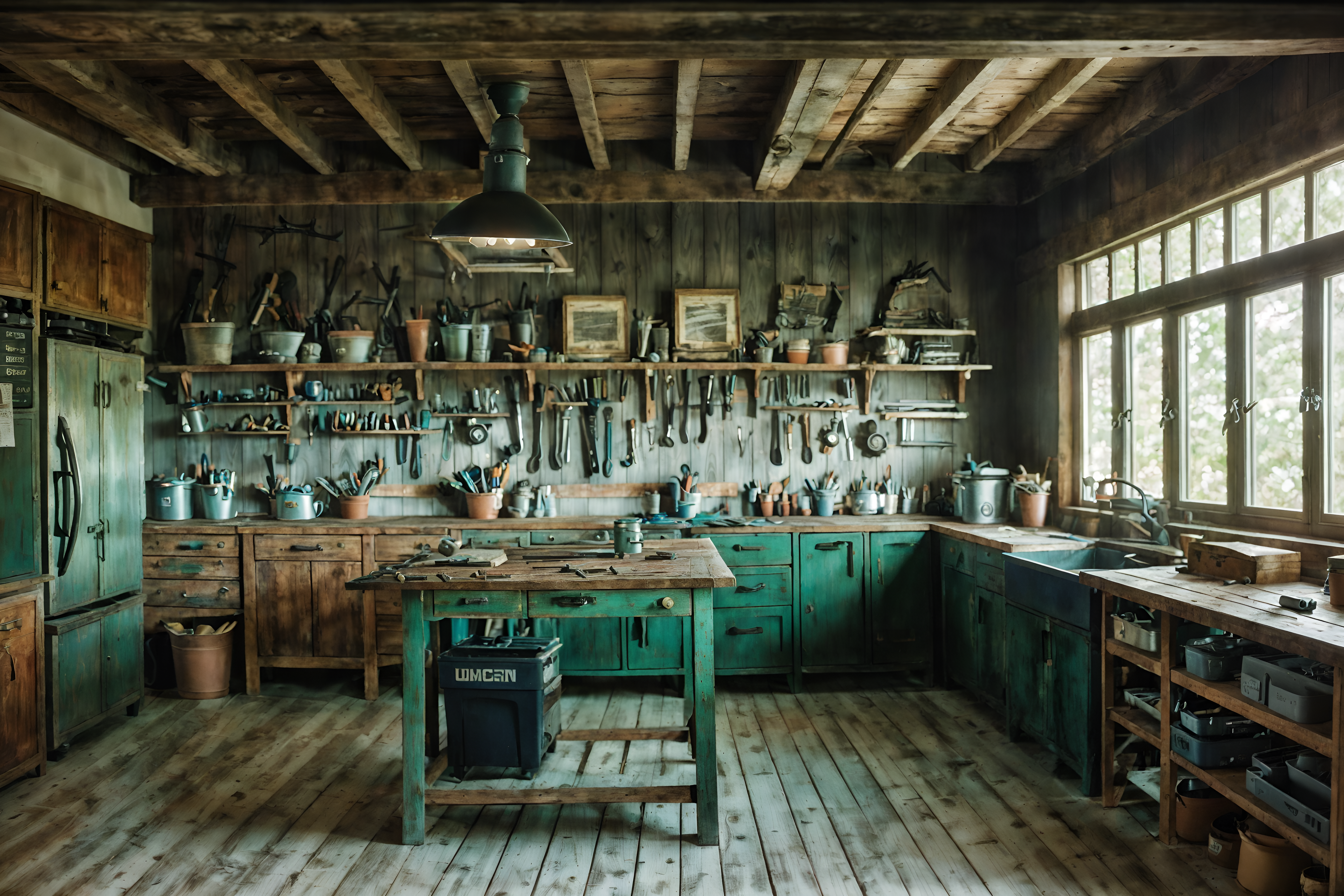 photo from pinterest of coastal-style interior designed (workshop interior) with tool wall and messy and wooden workbench and tool wall. . with . . cinematic photo, highly detailed, cinematic lighting, ultra-detailed, ultrarealistic, photorealism, 8k. trending on pinterest. coastal interior design style. masterpiece, cinematic light, ultrarealistic+, photorealistic+, 8k, raw photo, realistic, sharp focus on eyes, (symmetrical eyes), (intact eyes), hyperrealistic, highest quality, best quality, , highly detailed, masterpiece, best quality, extremely detailed 8k wallpaper, masterpiece, best quality, ultra-detailed, best shadow, detailed background, detailed face, detailed eyes, high contrast, best illumination, detailed face, dulux, caustic, dynamic angle, detailed glow. dramatic lighting. highly detailed, insanely detailed hair, symmetrical, intricate details, professionally retouched, 8k high definition. strong bokeh. award winning photo.