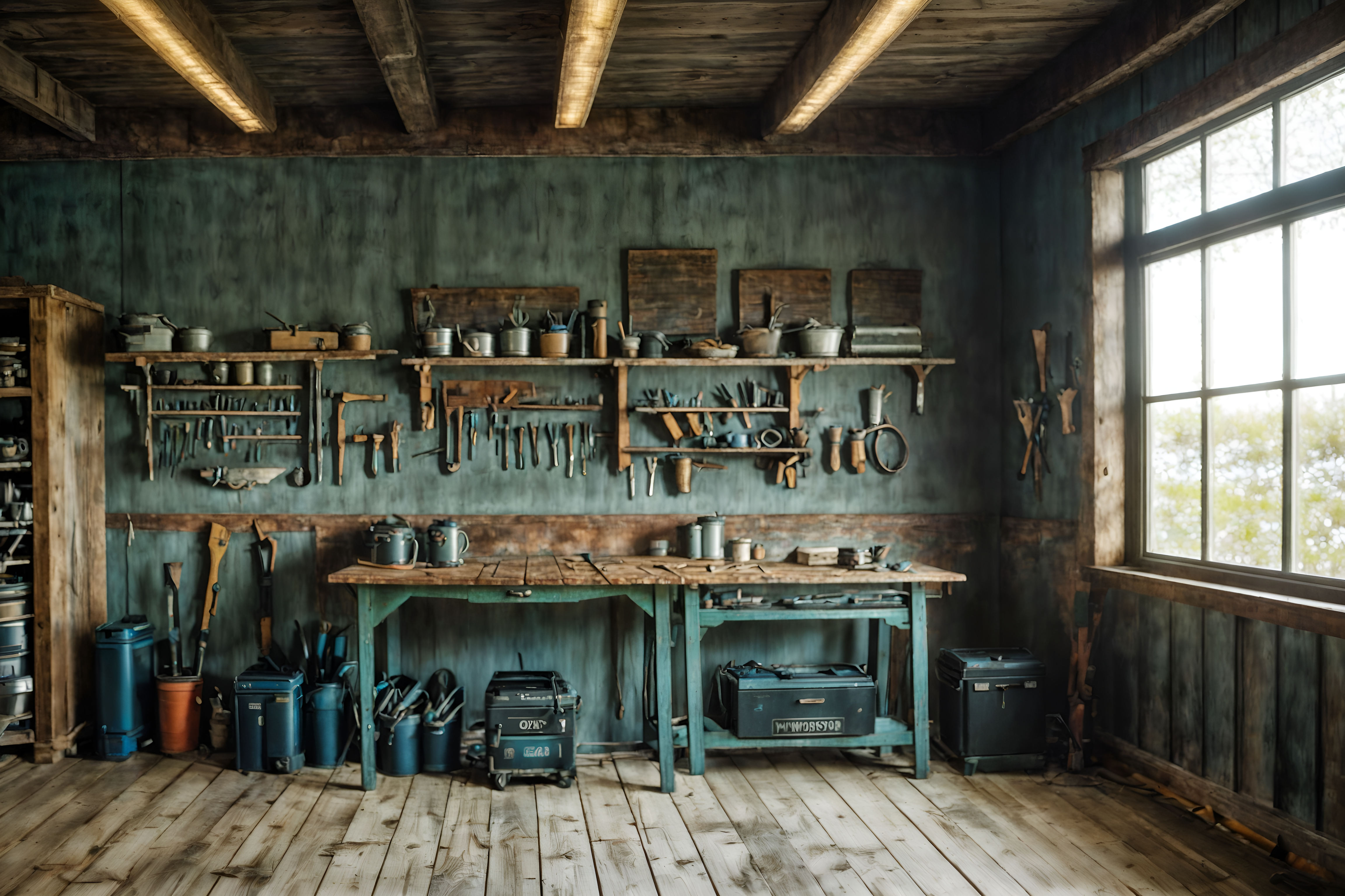 photo from pinterest of coastal-style interior designed (workshop interior) with tool wall and wooden workbench and messy and tool wall. . with . . cinematic photo, highly detailed, cinematic lighting, ultra-detailed, ultrarealistic, photorealism, 8k. trending on pinterest. coastal interior design style. masterpiece, cinematic light, ultrarealistic+, photorealistic+, 8k, raw photo, realistic, sharp focus on eyes, (symmetrical eyes), (intact eyes), hyperrealistic, highest quality, best quality, , highly detailed, masterpiece, best quality, extremely detailed 8k wallpaper, masterpiece, best quality, ultra-detailed, best shadow, detailed background, detailed face, detailed eyes, high contrast, best illumination, detailed face, dulux, caustic, dynamic angle, detailed glow. dramatic lighting. highly detailed, insanely detailed hair, symmetrical, intricate details, professionally retouched, 8k high definition. strong bokeh. award winning photo.