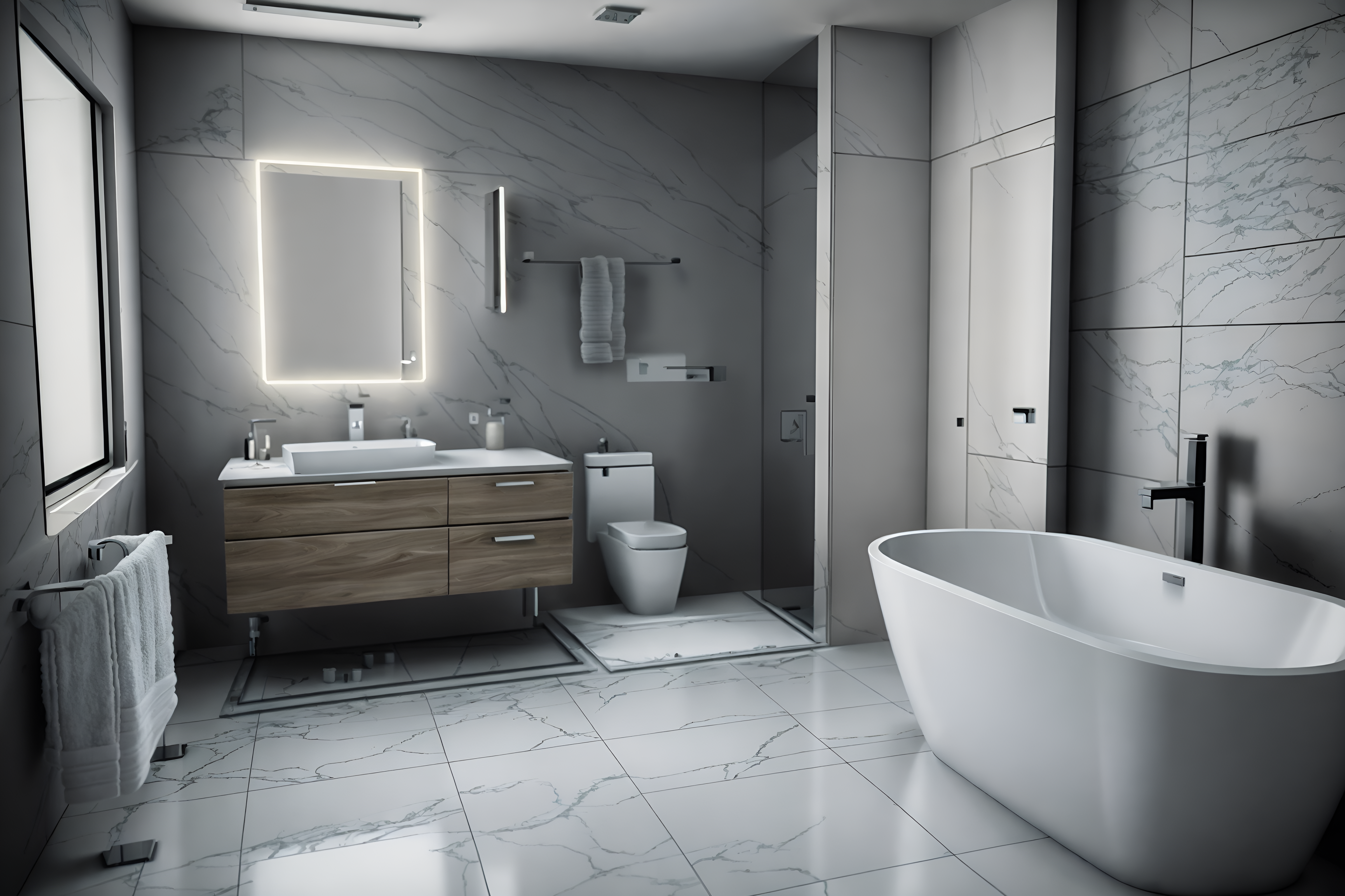 photo from pinterest of contemporary-style interior designed (bathroom interior) with bath rail and waste basket and bathroom sink with faucet and bathtub and toilet seat and bathroom cabinet and shower and bath towel. . with . . cinematic photo, highly detailed, cinematic lighting, ultra-detailed, ultrarealistic, photorealism, 8k. trending on pinterest. contemporary interior design style. masterpiece, cinematic light, ultrarealistic+, photorealistic+, 8k, raw photo, realistic, sharp focus on eyes, (symmetrical eyes), (intact eyes), hyperrealistic, highest quality, best quality, , highly detailed, masterpiece, best quality, extremely detailed 8k wallpaper, masterpiece, best quality, ultra-detailed, best shadow, detailed background, detailed face, detailed eyes, high contrast, best illumination, detailed face, dulux, caustic, dynamic angle, detailed glow. dramatic lighting. highly detailed, insanely detailed hair, symmetrical, intricate details, professionally retouched, 8k high definition. strong bokeh. award winning photo.