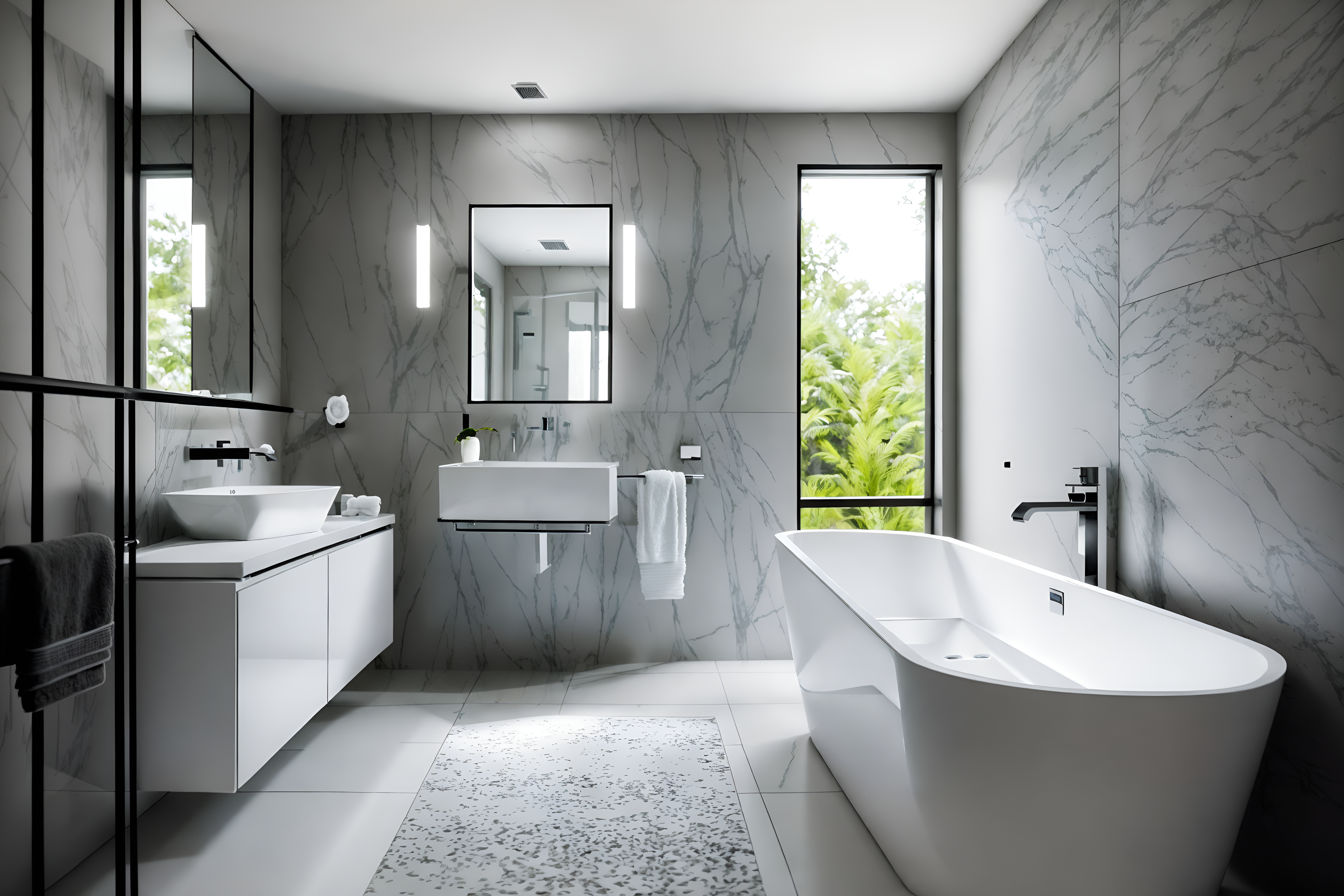 photo from pinterest of contemporary-style interior designed (bathroom interior) with bath rail and waste basket and bathroom sink with faucet and bathtub and toilet seat and bathroom cabinet and shower and bath towel. . with . . cinematic photo, highly detailed, cinematic lighting, ultra-detailed, ultrarealistic, photorealism, 8k. trending on pinterest. contemporary interior design style. masterpiece, cinematic light, ultrarealistic+, photorealistic+, 8k, raw photo, realistic, sharp focus on eyes, (symmetrical eyes), (intact eyes), hyperrealistic, highest quality, best quality, , highly detailed, masterpiece, best quality, extremely detailed 8k wallpaper, masterpiece, best quality, ultra-detailed, best shadow, detailed background, detailed face, detailed eyes, high contrast, best illumination, detailed face, dulux, caustic, dynamic angle, detailed glow. dramatic lighting. highly detailed, insanely detailed hair, symmetrical, intricate details, professionally retouched, 8k high definition. strong bokeh. award winning photo.