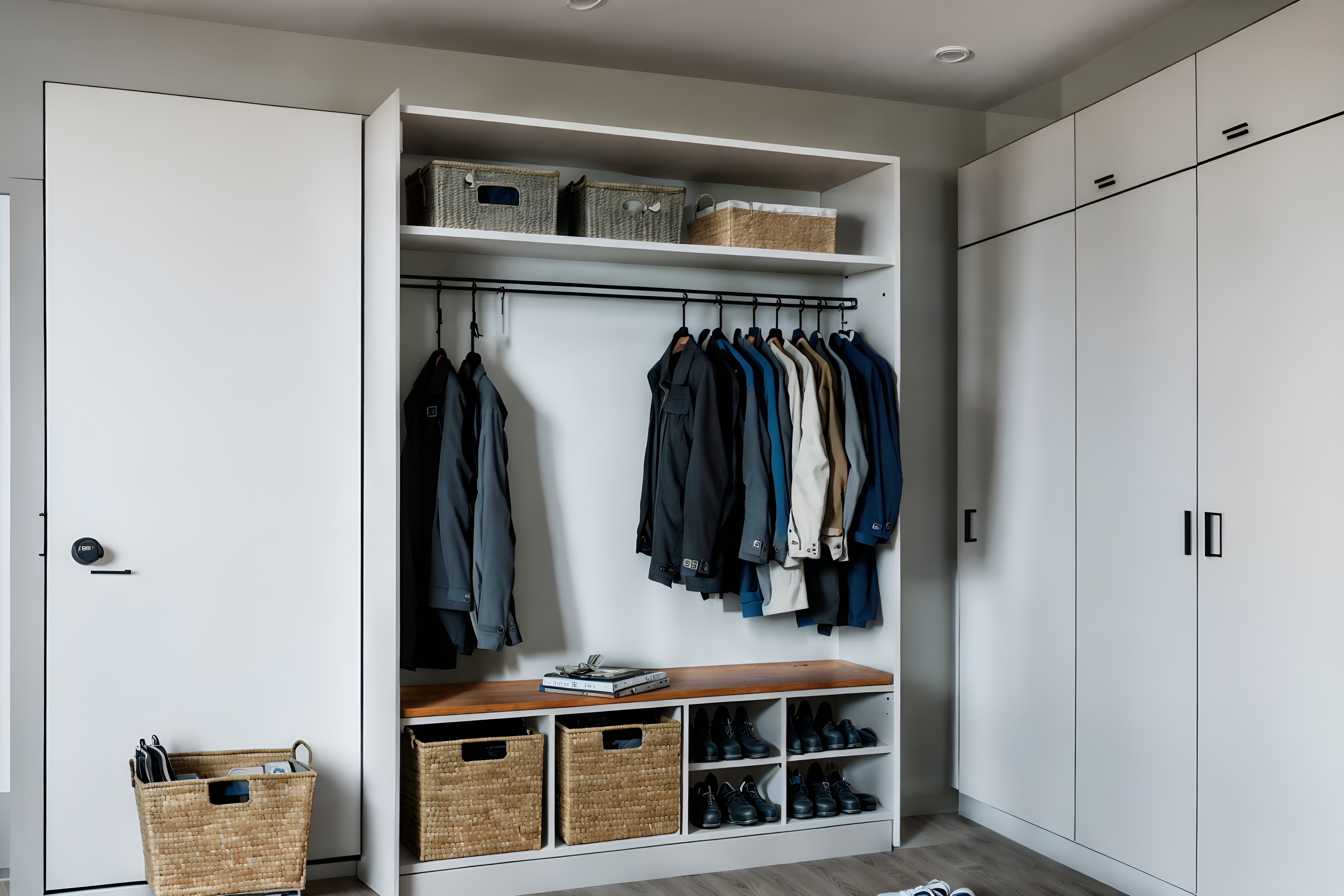 photo from pinterest of contemporary-style interior designed (drop zone interior) with storage baskets and storage drawers and cabinets and cubbies and a bench and wall hooks for coats and shelves for shoes and high up storage. . with . . cinematic photo, highly detailed, cinematic lighting, ultra-detailed, ultrarealistic, photorealism, 8k. trending on pinterest. contemporary interior design style. masterpiece, cinematic light, ultrarealistic+, photorealistic+, 8k, raw photo, realistic, sharp focus on eyes, (symmetrical eyes), (intact eyes), hyperrealistic, highest quality, best quality, , highly detailed, masterpiece, best quality, extremely detailed 8k wallpaper, masterpiece, best quality, ultra-detailed, best shadow, detailed background, detailed face, detailed eyes, high contrast, best illumination, detailed face, dulux, caustic, dynamic angle, detailed glow. dramatic lighting. highly detailed, insanely detailed hair, symmetrical, intricate details, professionally retouched, 8k high definition. strong bokeh. award winning photo.