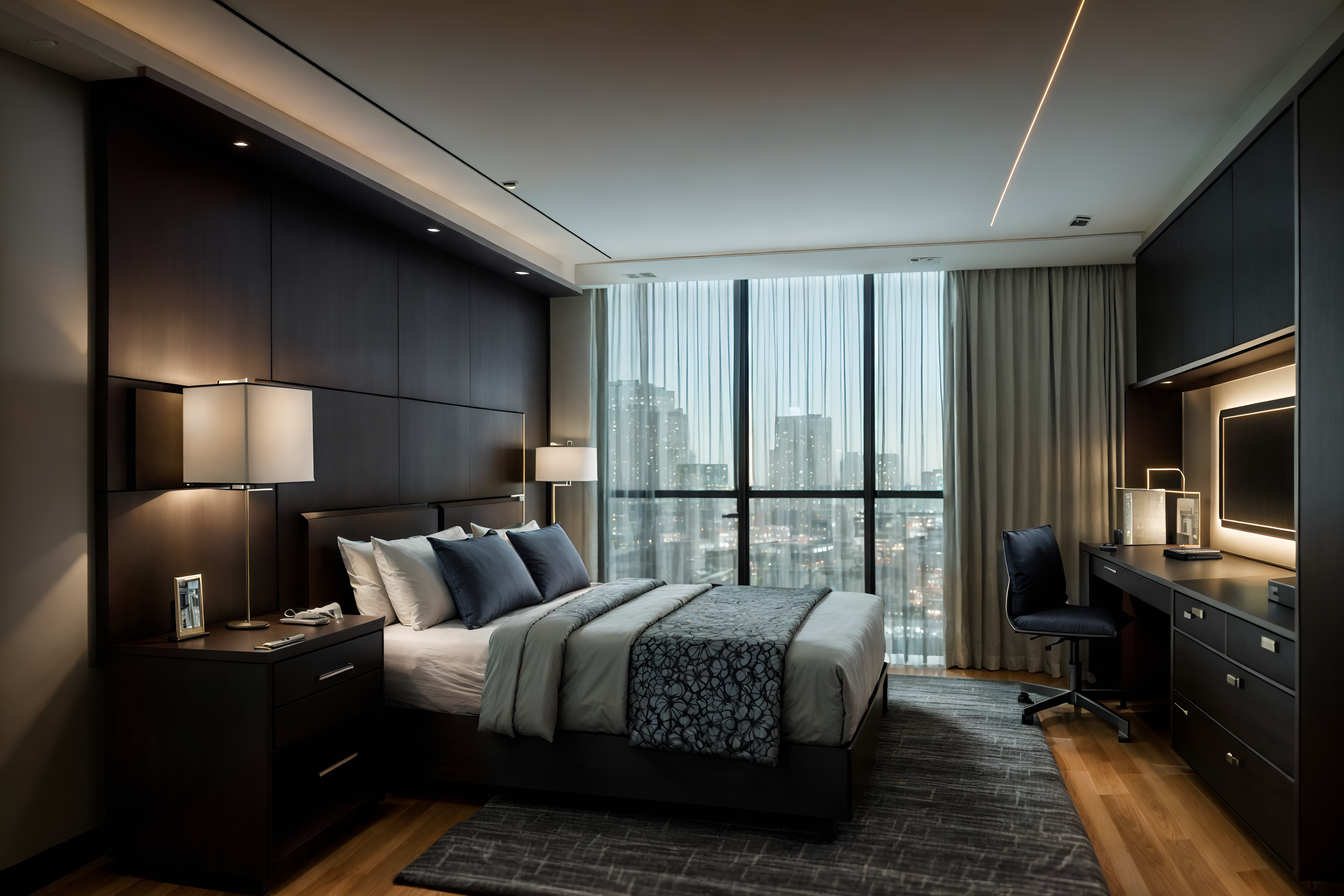 hotel roomsinterior decorate this hotel room with cyberpunk style. . . with night light and mirror and dresser closet and accent chair and headboard and storage bench or ottoman and bed and hotel bathroom. . with color lights glow and futuristic cybernetic city and black lights and synthetic objects and minimalist and cyberpunk style and dark night and strong geometric walls. . .interior decorate this hotel room with hollywood glam style. . . with accent chair and night light and dresser closet and hotel bathroom and plant and working desk with desk chair and mirror and storage bench or ottoman. . with bold colors and mirrored surfaces and star quality and velvet upholstery and art deco influence and luxurious fabrics and metallic accents and crystal chandeliers. . .interior decorate this hotel room with minimalist style. . . with headboard and working desk with desk chair and storage bench or ottoman and hotel bathroom and dresser closet and night light and bedside table or night stand and plant. . with functional furniture and an open floor plan and lots of light and a monochromatic palette with colour used as an accent and clean lines and focus on the shape, colour and texture of just a few of essential elements and functional furniture. . .interior decorate this hotel room with christmas style. . . with storage bench or ottoman and working desk with desk chair and mirror and hotel bathroom and plant and accent chair and dresser closet and bedside table or night stand. . with christmas ornaments and tie pinecones and berries and berries and greenery draped and a few big socks hanging and giftwrapped gifts and snow outside and plaid rugs and ribbons. . .interior decorate this hotel room with ski chalet style. . . with night light and hotel bathroom and accent chair and bed and mirror and plant and headboard and working desk with desk chair. . with decorative carving and mouldings and wooden logs and animal motifs and rustic and wood beams and richly patterned fabrics and animal furs and wooden walls. . .interior decorate this hotel room with simple style. . . with night light and accent chair and plant and hotel bathroom and storage bench or ottoman and working desk with desk chair and bedside table or night stand and headboard. . with understated style and neutral colors and minimal decor and basic elements and functional furniture and streamlined look and calm atmosphere and pure simplicity. . .interior decorate this hotel room with biophilic style. . . with plant and hotel bathroom and storage bench or ottoman and mirror and bed and headboard and night light and working desk with desk chair. . with natural environment and images of nature and wood materials and fresh air and plants and bamboo materials and features of nature and natural shapes and forms. . .interior decorate this hotel room with surf shack style. . . with storage bench or ottoman and bed and night light and dresser closet and plant and accent chair and bedside table or night stand and headboard. . with beachy throw pillows and coral accents and white-washed walls and ocean-inspired colors and casual dining and turquoise accents and sun-bleached wood and driftwood furniture. . .interior decorate this hotel room with eclectic style. . . with night light and accent chair and headboard and working desk with desk chair and storage bench or ottoman and bed and bedside table or night stand and plant. . with unexpected elements and personal expression and creative freedom and unique pieces and bold combinations and colorful palette and vintage finds and mixed styles. . .