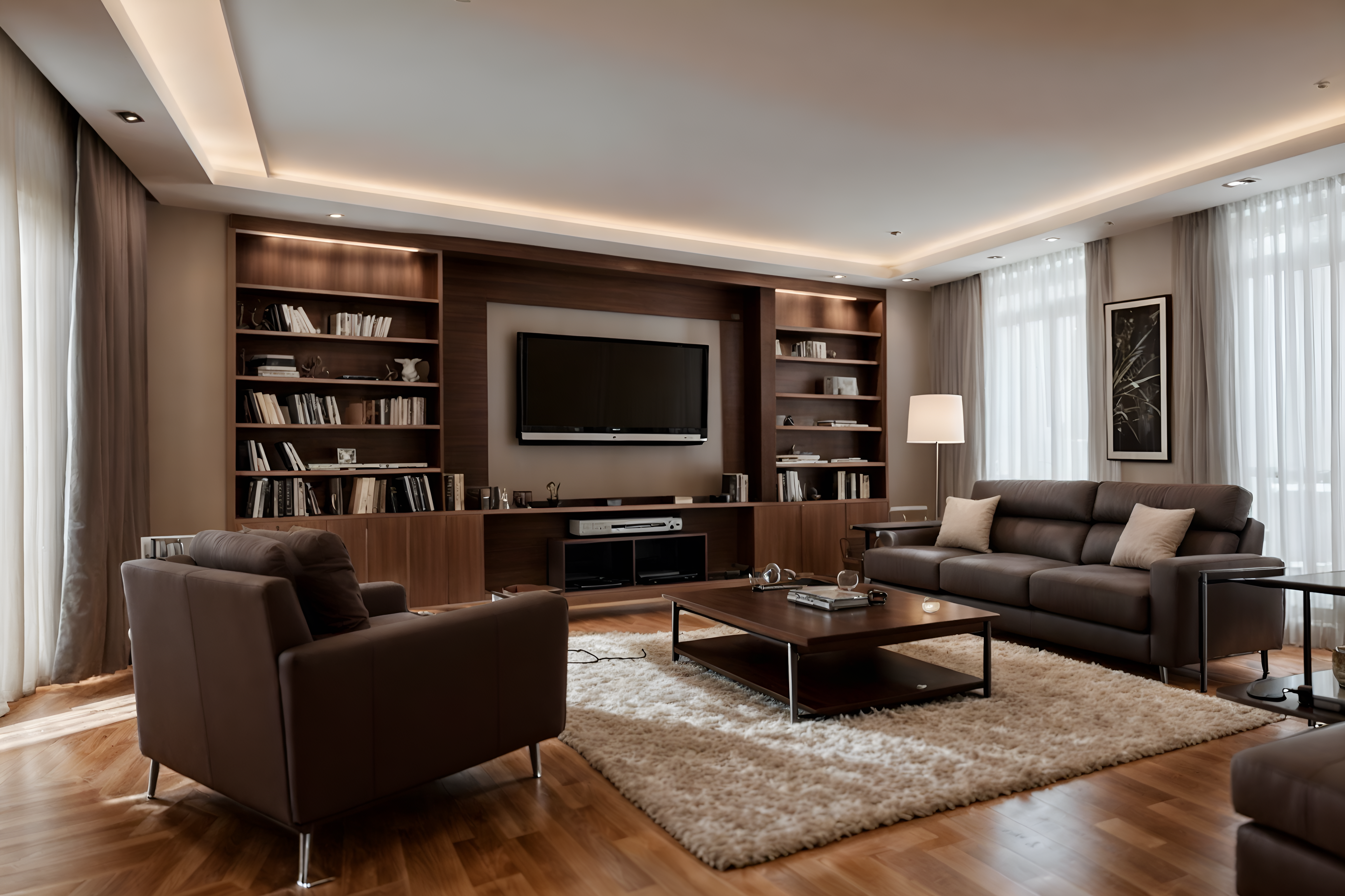 Photo from Pinterest of Contemporary-style interior designed (living room interior) With coffee tables and plant and chairs and electric lamps and bookshelves and televisions and occasional tables and sofa. . With . . Cinematic photo, highly detailed, cinematic lighting, ultra-detailed, ultrarealistic, photorealism, 8k. Trending on Pinterest. Contemporary interior design style