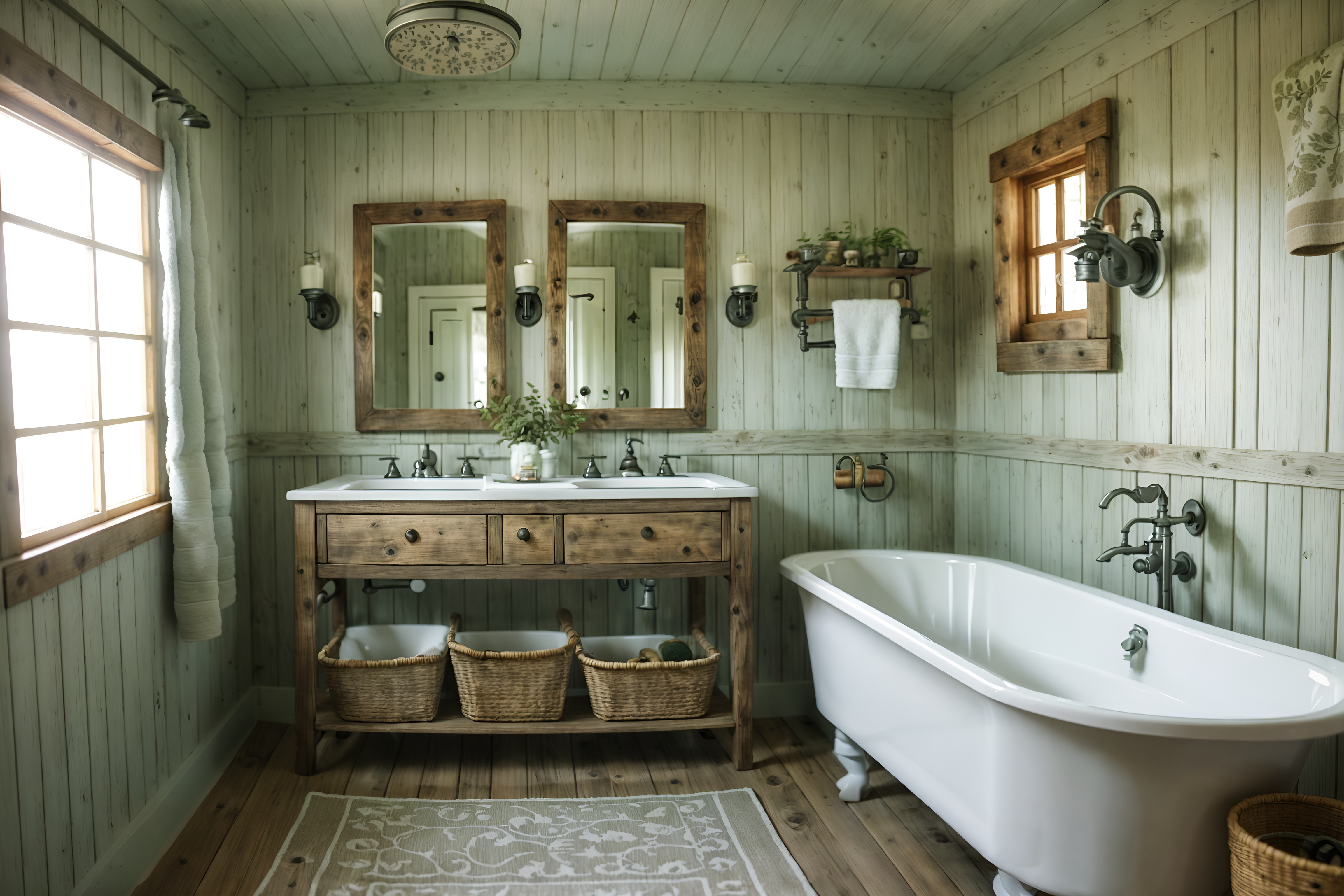 photo from pinterest of cottagecore-style interior designed (bathroom interior) with shower and bath towel and toilet seat and bathtub and bathroom sink with faucet and bathroom cabinet and bath rail and plant. . with earthy and muted colors and cottage style and natural and traditional and floral patterns and rustic and country style. . cinematic photo, highly detailed, cinematic lighting, ultra-detailed, ultrarealistic, photorealism, 8k. trending on pinterest. cottagecore interior design style. masterpiece, cinematic light, ultrarealistic+, photorealistic+, 8k, raw photo, realistic, sharp focus on eyes, (symmetrical eyes), (intact eyes), hyperrealistic, highest quality, best quality, , highly detailed, masterpiece, best quality, extremely detailed 8k wallpaper, masterpiece, best quality, ultra-detailed, best shadow, detailed background, detailed face, detailed eyes, high contrast, best illumination, detailed face, dulux, caustic, dynamic angle, detailed glow. dramatic lighting. highly detailed, insanely detailed hair, symmetrical, intricate details, professionally retouched, 8k high definition. strong bokeh. award winning photo.