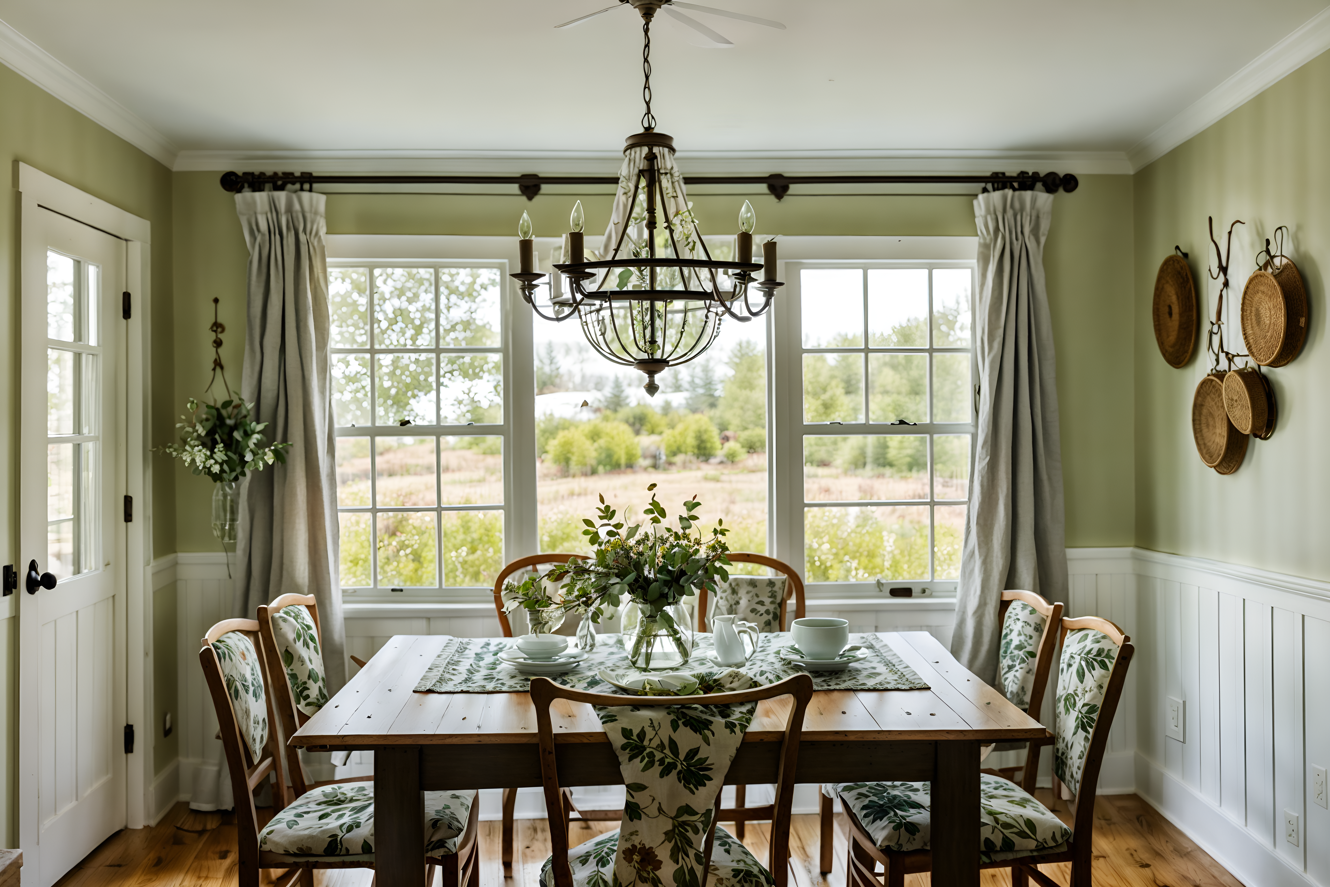 photo from pinterest of cottagecore-style interior designed (dining room interior) with dining table chairs and plant and vase and table cloth and plates, cutlery and glasses on dining table and light or chandelier and painting or photo on wall and dining table. . with natural and muted colors and floral patterns and organic and cottage style and country style and earthy and traditional. . cinematic photo, highly detailed, cinematic lighting, ultra-detailed, ultrarealistic, photorealism, 8k. trending on pinterest. cottagecore interior design style. masterpiece, cinematic light, ultrarealistic+, photorealistic+, 8k, raw photo, realistic, sharp focus on eyes, (symmetrical eyes), (intact eyes), hyperrealistic, highest quality, best quality, , highly detailed, masterpiece, best quality, extremely detailed 8k wallpaper, masterpiece, best quality, ultra-detailed, best shadow, detailed background, detailed face, detailed eyes, high contrast, best illumination, detailed face, dulux, caustic, dynamic angle, detailed glow. dramatic lighting. highly detailed, insanely detailed hair, symmetrical, intricate details, professionally retouched, 8k high definition. strong bokeh. award winning photo.