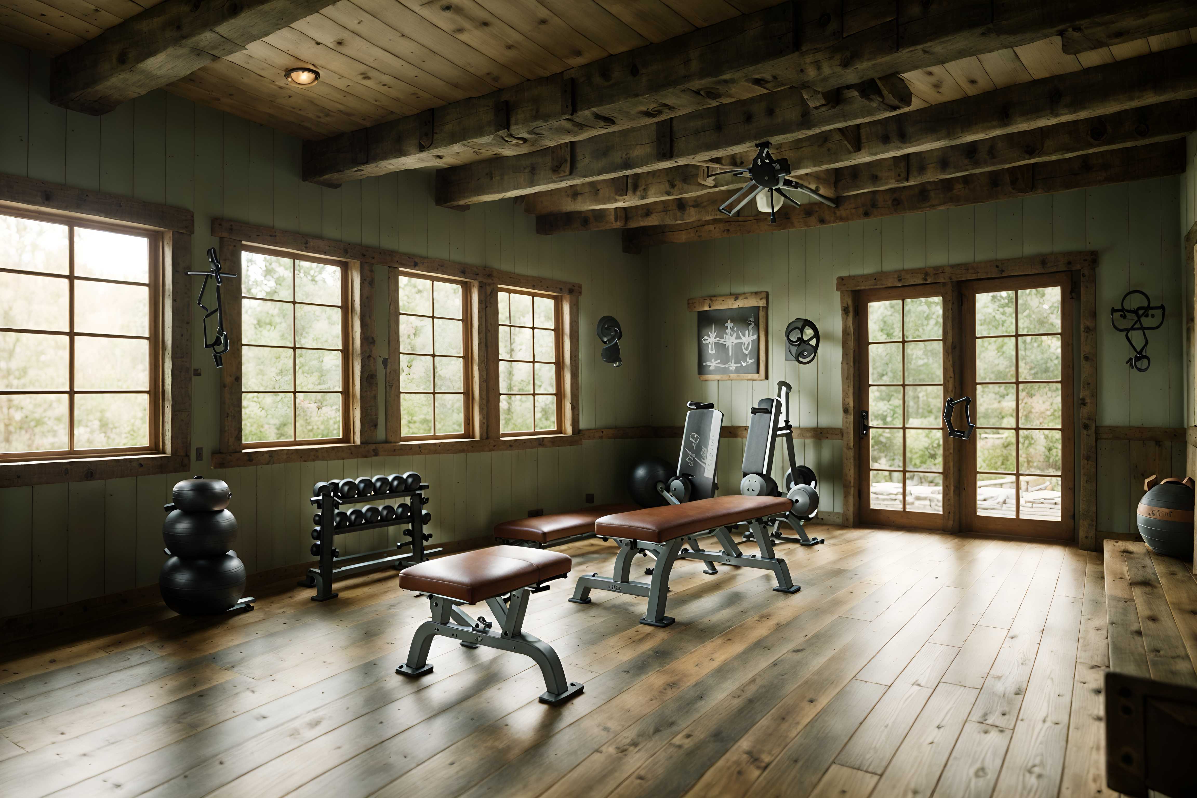 photo from pinterest of cottagecore-style interior designed (fitness gym interior) with bench press and squat rack and dumbbell stand and crosstrainer and exercise bicycle and bench press. . with rustic and organic and cottage style and traditional and country style and earthy and muted colors and floral patterns. . cinematic photo, highly detailed, cinematic lighting, ultra-detailed, ultrarealistic, photorealism, 8k. trending on pinterest. cottagecore interior design style. masterpiece, cinematic light, ultrarealistic+, photorealistic+, 8k, raw photo, realistic, sharp focus on eyes, (symmetrical eyes), (intact eyes), hyperrealistic, highest quality, best quality, , highly detailed, masterpiece, best quality, extremely detailed 8k wallpaper, masterpiece, best quality, ultra-detailed, best shadow, detailed background, detailed face, detailed eyes, high contrast, best illumination, detailed face, dulux, caustic, dynamic angle, detailed glow. dramatic lighting. highly detailed, insanely detailed hair, symmetrical, intricate details, professionally retouched, 8k high definition. strong bokeh. award winning photo.