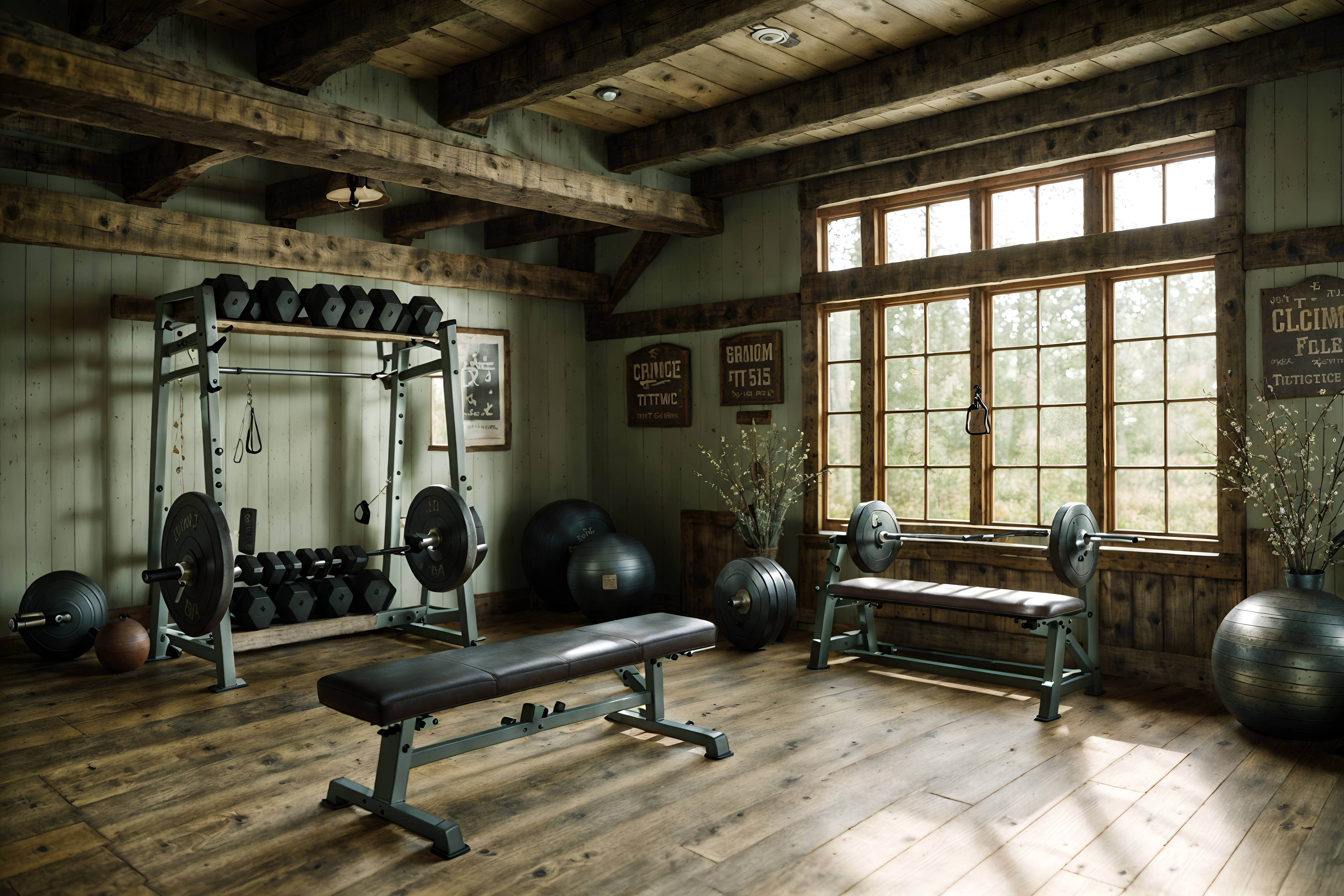 photo from pinterest of cottagecore-style interior designed (fitness gym interior) with bench press and squat rack and dumbbell stand and crosstrainer and exercise bicycle and bench press. . with rustic and organic and cottage style and traditional and country style and earthy and muted colors and floral patterns. . cinematic photo, highly detailed, cinematic lighting, ultra-detailed, ultrarealistic, photorealism, 8k. trending on pinterest. cottagecore interior design style. masterpiece, cinematic light, ultrarealistic+, photorealistic+, 8k, raw photo, realistic, sharp focus on eyes, (symmetrical eyes), (intact eyes), hyperrealistic, highest quality, best quality, , highly detailed, masterpiece, best quality, extremely detailed 8k wallpaper, masterpiece, best quality, ultra-detailed, best shadow, detailed background, detailed face, detailed eyes, high contrast, best illumination, detailed face, dulux, caustic, dynamic angle, detailed glow. dramatic lighting. highly detailed, insanely detailed hair, symmetrical, intricate details, professionally retouched, 8k high definition. strong bokeh. award winning photo.