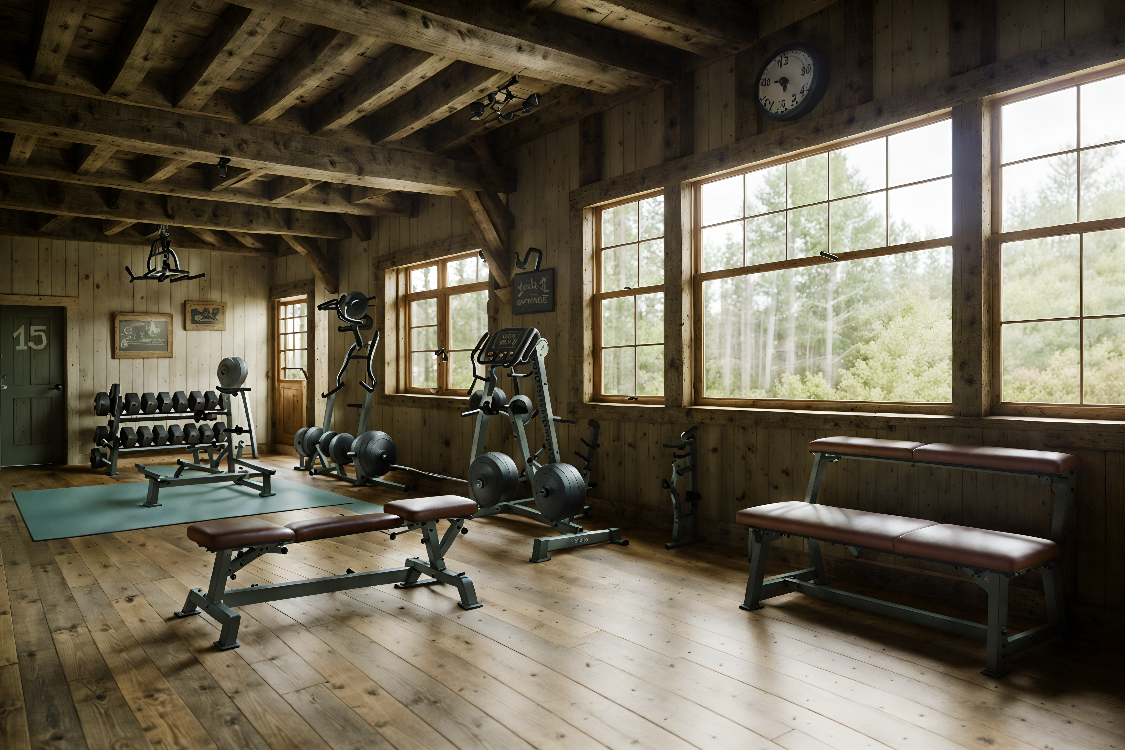 photo from pinterest of cottagecore-style interior designed (fitness gym interior) with bench press and squat rack and dumbbell stand and crosstrainer and exercise bicycle and bench press. . with rustic and organic and cottage style and traditional and country style and earthy and muted colors and floral patterns. . cinematic photo, highly detailed, cinematic lighting, ultra-detailed, ultrarealistic, photorealism, 8k. trending on pinterest. cottagecore interior design style. masterpiece, cinematic light, ultrarealistic+, photorealistic+, 8k, raw photo, realistic, sharp focus on eyes, (symmetrical eyes), (intact eyes), hyperrealistic, highest quality, best quality, , highly detailed, masterpiece, best quality, extremely detailed 8k wallpaper, masterpiece, best quality, ultra-detailed, best shadow, detailed background, detailed face, detailed eyes, high contrast, best illumination, detailed face, dulux, caustic, dynamic angle, detailed glow. dramatic lighting. highly detailed, insanely detailed hair, symmetrical, intricate details, professionally retouched, 8k high definition. strong bokeh. award winning photo.