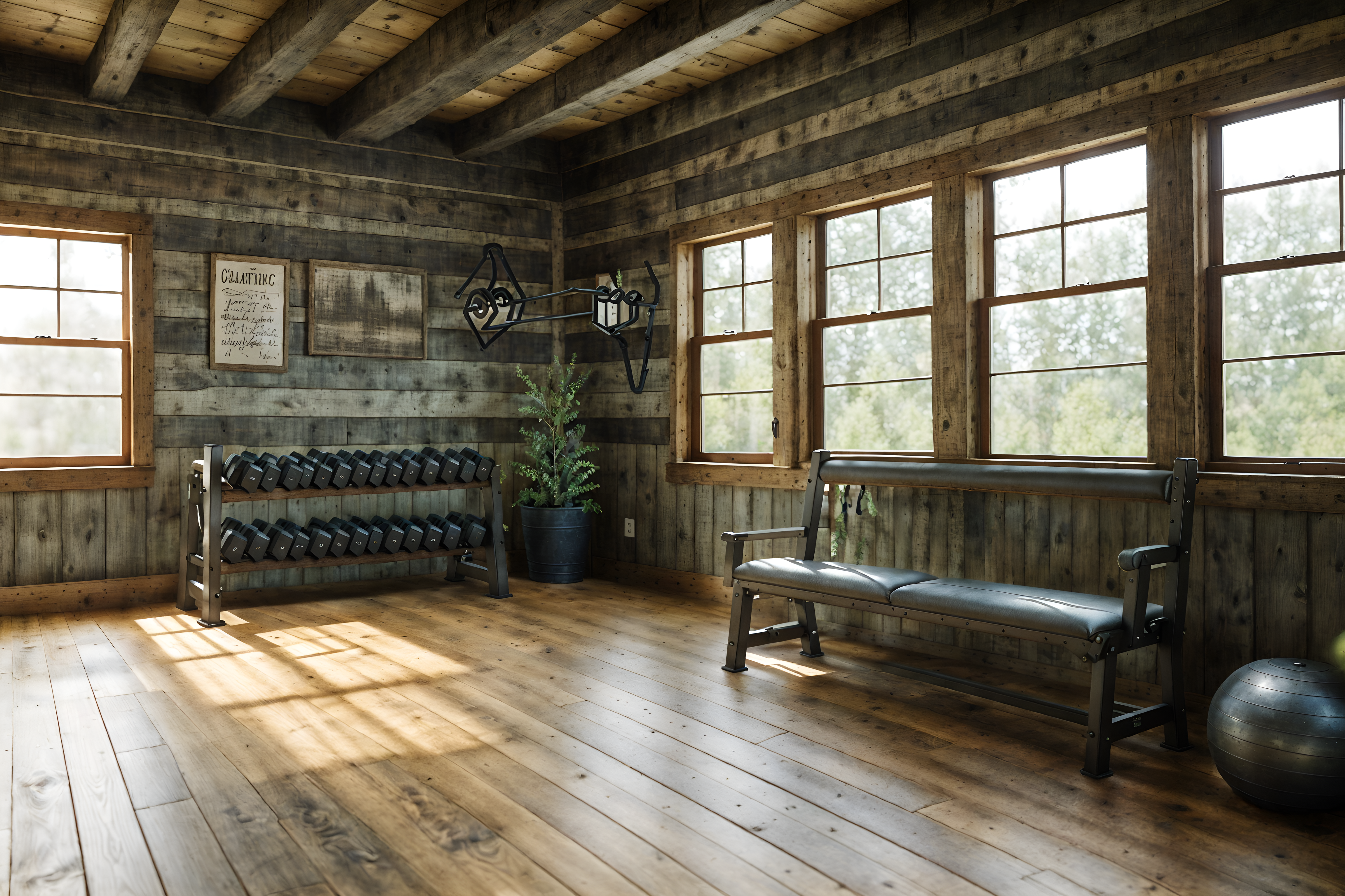 photo from pinterest of cottagecore-style interior designed (fitness gym interior) with bench press and squat rack and dumbbell stand and crosstrainer and exercise bicycle and bench press. . with rustic and organic and cottage style and traditional and country style and earthy and muted colors and floral patterns. . cinematic photo, highly detailed, cinematic lighting, ultra-detailed, ultrarealistic, photorealism, 8k. trending on pinterest. cottagecore interior design style. masterpiece, cinematic light, ultrarealistic+, photorealistic+, 8k, raw photo, realistic, sharp focus on eyes, (symmetrical eyes), (intact eyes), hyperrealistic, highest quality, best quality, , highly detailed, masterpiece, best quality, extremely detailed 8k wallpaper, masterpiece, best quality, ultra-detailed, best shadow, detailed background, detailed face, detailed eyes, high contrast, best illumination, detailed face, dulux, caustic, dynamic angle, detailed glow. dramatic lighting. highly detailed, insanely detailed hair, symmetrical, intricate details, professionally retouched, 8k high definition. strong bokeh. award winning photo.