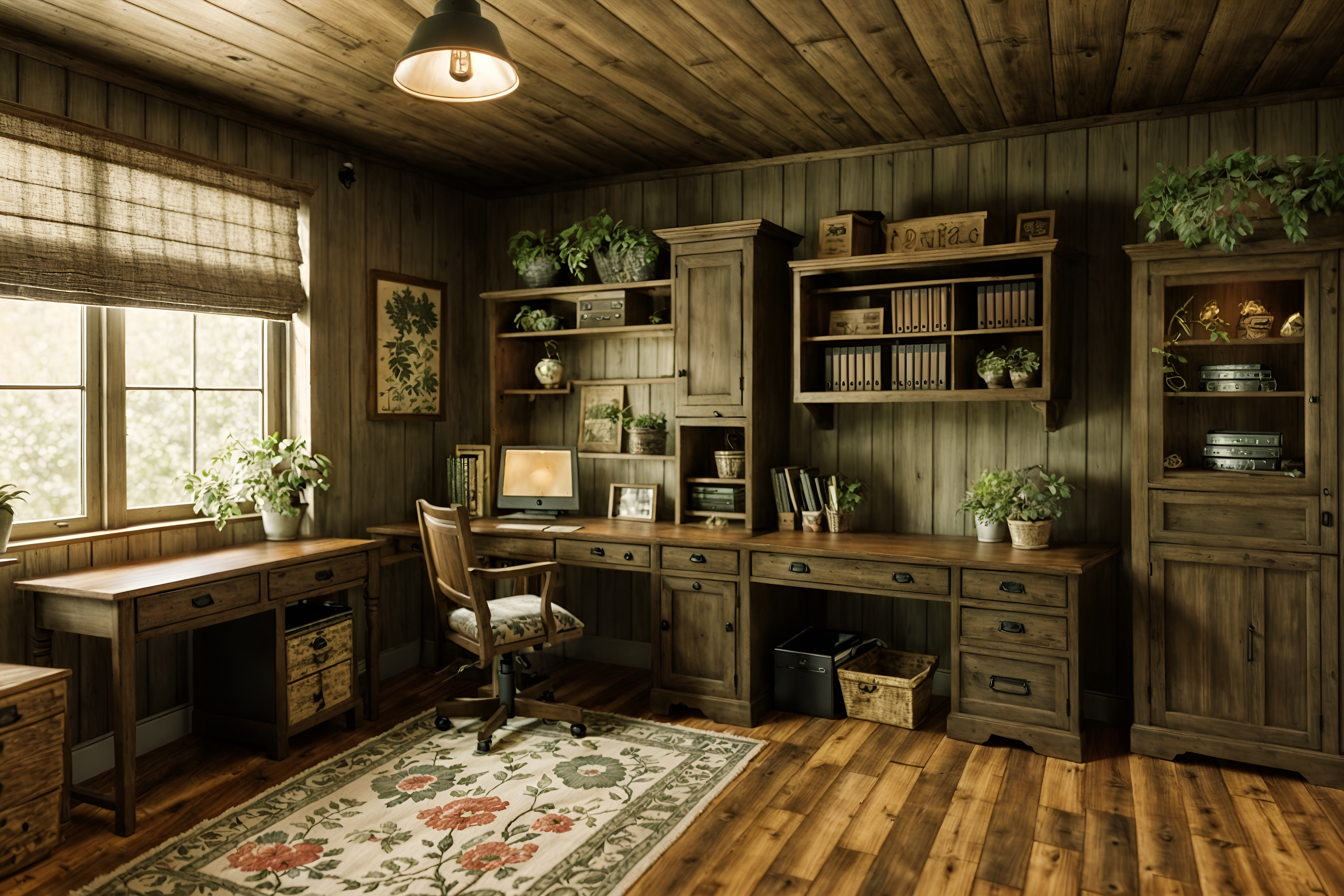 photo from pinterest of cottagecore-style interior designed (home office interior) with plant and cabinets and office chair and desk lamp and computer desk and plant. . with traditional and country style and floral patterns and organic and muted colors and cottage style and rustic and natural. . cinematic photo, highly detailed, cinematic lighting, ultra-detailed, ultrarealistic, photorealism, 8k. trending on pinterest. cottagecore interior design style. masterpiece, cinematic light, ultrarealistic+, photorealistic+, 8k, raw photo, realistic, sharp focus on eyes, (symmetrical eyes), (intact eyes), hyperrealistic, highest quality, best quality, , highly detailed, masterpiece, best quality, extremely detailed 8k wallpaper, masterpiece, best quality, ultra-detailed, best shadow, detailed background, detailed face, detailed eyes, high contrast, best illumination, detailed face, dulux, caustic, dynamic angle, detailed glow. dramatic lighting. highly detailed, insanely detailed hair, symmetrical, intricate details, professionally retouched, 8k high definition. strong bokeh. award winning photo.