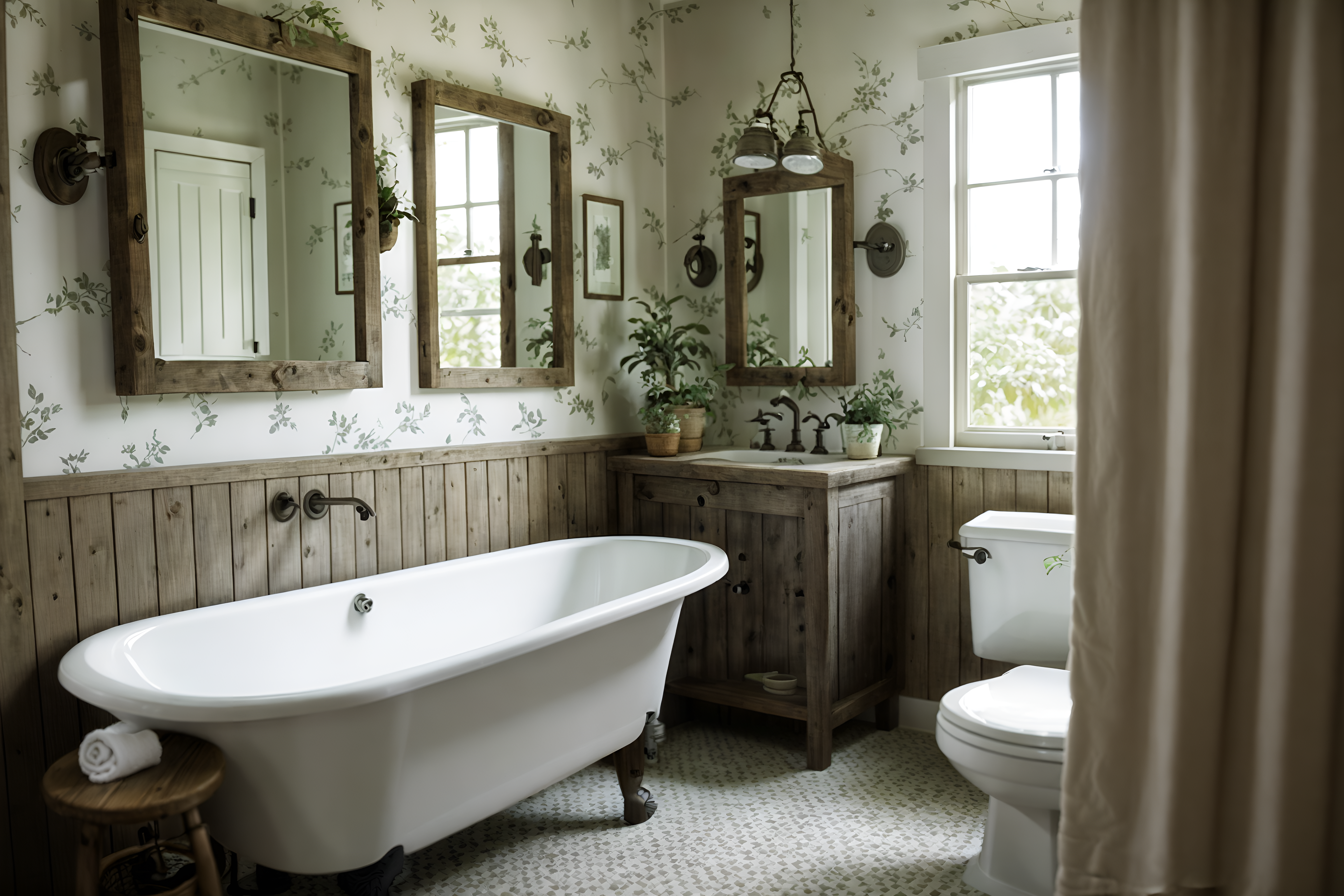 photo from pinterest of cottagecore-style interior designed (hotel bathroom interior) with bath towel and plant and toilet seat and shower and bathroom cabinet and bathtub and bath rail and mirror. . with traditional and cottage style and rustic and country style and floral patterns and organic and earthy and muted colors. . cinematic photo, highly detailed, cinematic lighting, ultra-detailed, ultrarealistic, photorealism, 8k. trending on pinterest. cottagecore interior design style. masterpiece, cinematic light, ultrarealistic+, photorealistic+, 8k, raw photo, realistic, sharp focus on eyes, (symmetrical eyes), (intact eyes), hyperrealistic, highest quality, best quality, , highly detailed, masterpiece, best quality, extremely detailed 8k wallpaper, masterpiece, best quality, ultra-detailed, best shadow, detailed background, detailed face, detailed eyes, high contrast, best illumination, detailed face, dulux, caustic, dynamic angle, detailed glow. dramatic lighting. highly detailed, insanely detailed hair, symmetrical, intricate details, professionally retouched, 8k high definition. strong bokeh. award winning photo.