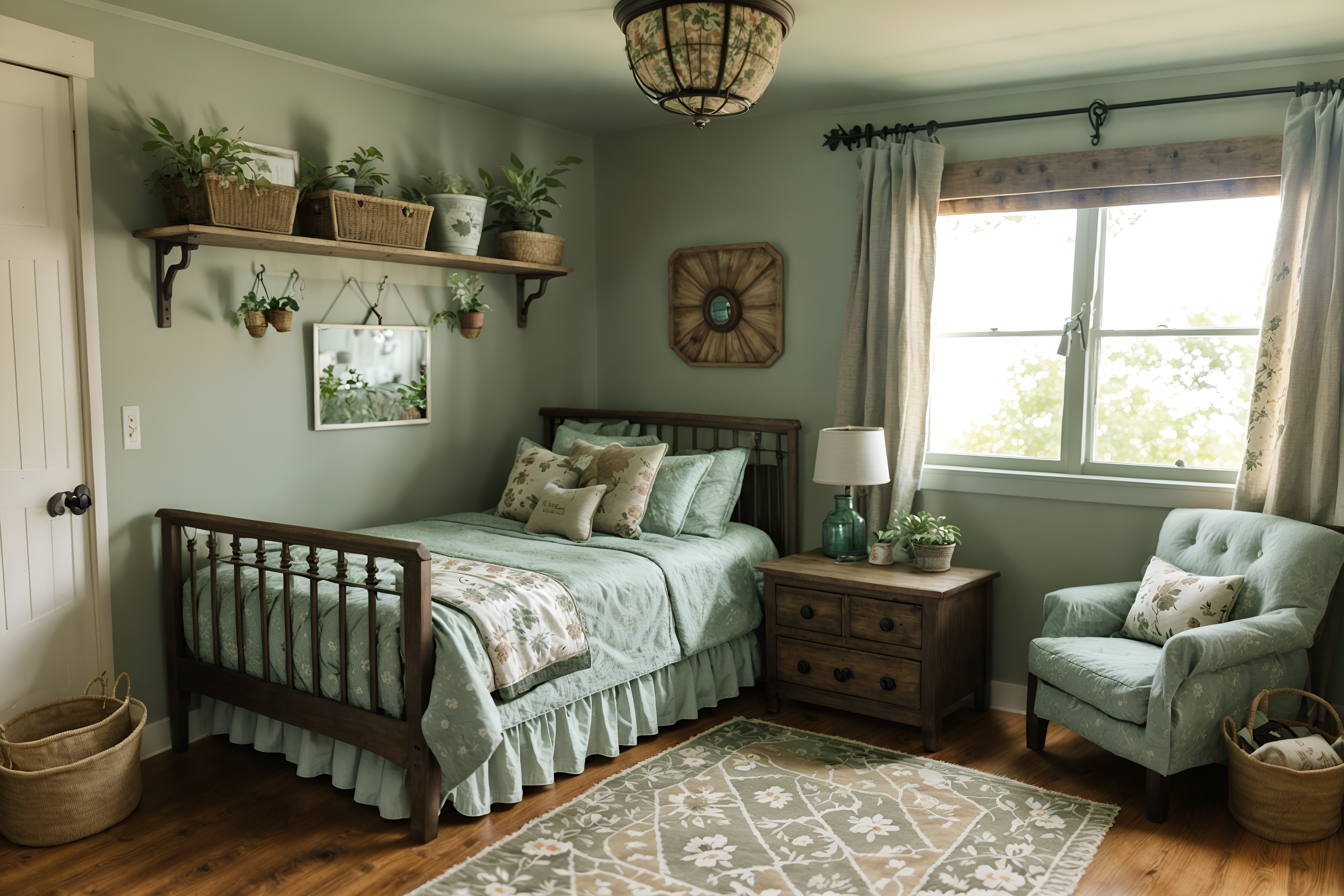 photo from pinterest of cottagecore-style interior designed (kids room interior) with plant and dresser closet and bedside table or night stand and night light and bed and accent chair and mirror and storage bench or ottoman. . with muted colors and natural and floral patterns and organic and rustic and earthy and country style and traditional. . cinematic photo, highly detailed, cinematic lighting, ultra-detailed, ultrarealistic, photorealism, 8k. trending on pinterest. cottagecore interior design style. masterpiece, cinematic light, ultrarealistic+, photorealistic+, 8k, raw photo, realistic, sharp focus on eyes, (symmetrical eyes), (intact eyes), hyperrealistic, highest quality, best quality, , highly detailed, masterpiece, best quality, extremely detailed 8k wallpaper, masterpiece, best quality, ultra-detailed, best shadow, detailed background, detailed face, detailed eyes, high contrast, best illumination, detailed face, dulux, caustic, dynamic angle, detailed glow. dramatic lighting. highly detailed, insanely detailed hair, symmetrical, intricate details, professionally retouched, 8k high definition. strong bokeh. award winning photo.