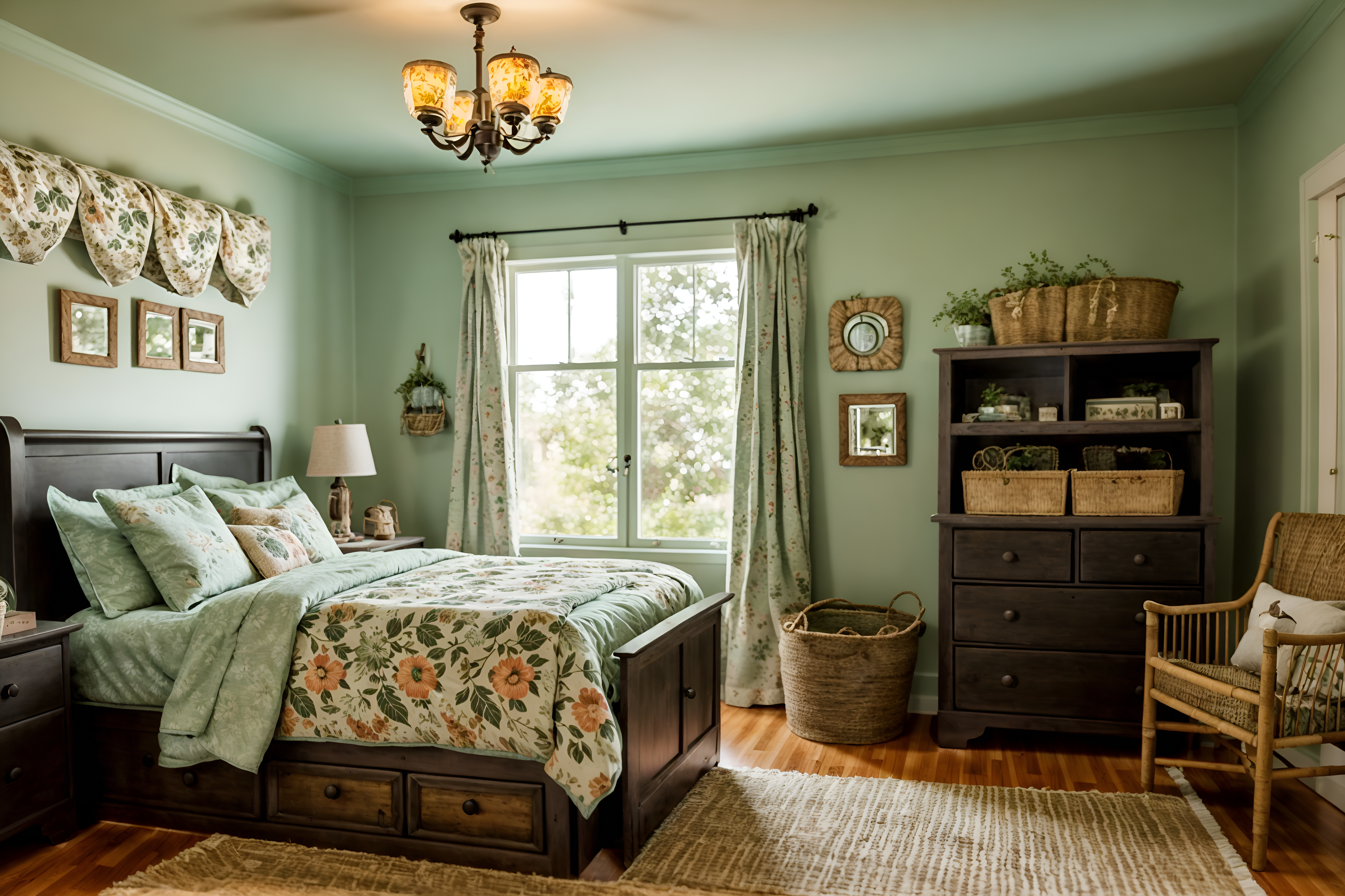 photo from pinterest of cottagecore-style interior designed (kids room interior) with plant and dresser closet and bedside table or night stand and night light and bed and accent chair and mirror and storage bench or ottoman. . with muted colors and natural and floral patterns and organic and rustic and earthy and country style and traditional. . cinematic photo, highly detailed, cinematic lighting, ultra-detailed, ultrarealistic, photorealism, 8k. trending on pinterest. cottagecore interior design style. masterpiece, cinematic light, ultrarealistic+, photorealistic+, 8k, raw photo, realistic, sharp focus on eyes, (symmetrical eyes), (intact eyes), hyperrealistic, highest quality, best quality, , highly detailed, masterpiece, best quality, extremely detailed 8k wallpaper, masterpiece, best quality, ultra-detailed, best shadow, detailed background, detailed face, detailed eyes, high contrast, best illumination, detailed face, dulux, caustic, dynamic angle, detailed glow. dramatic lighting. highly detailed, insanely detailed hair, symmetrical, intricate details, professionally retouched, 8k high definition. strong bokeh. award winning photo.