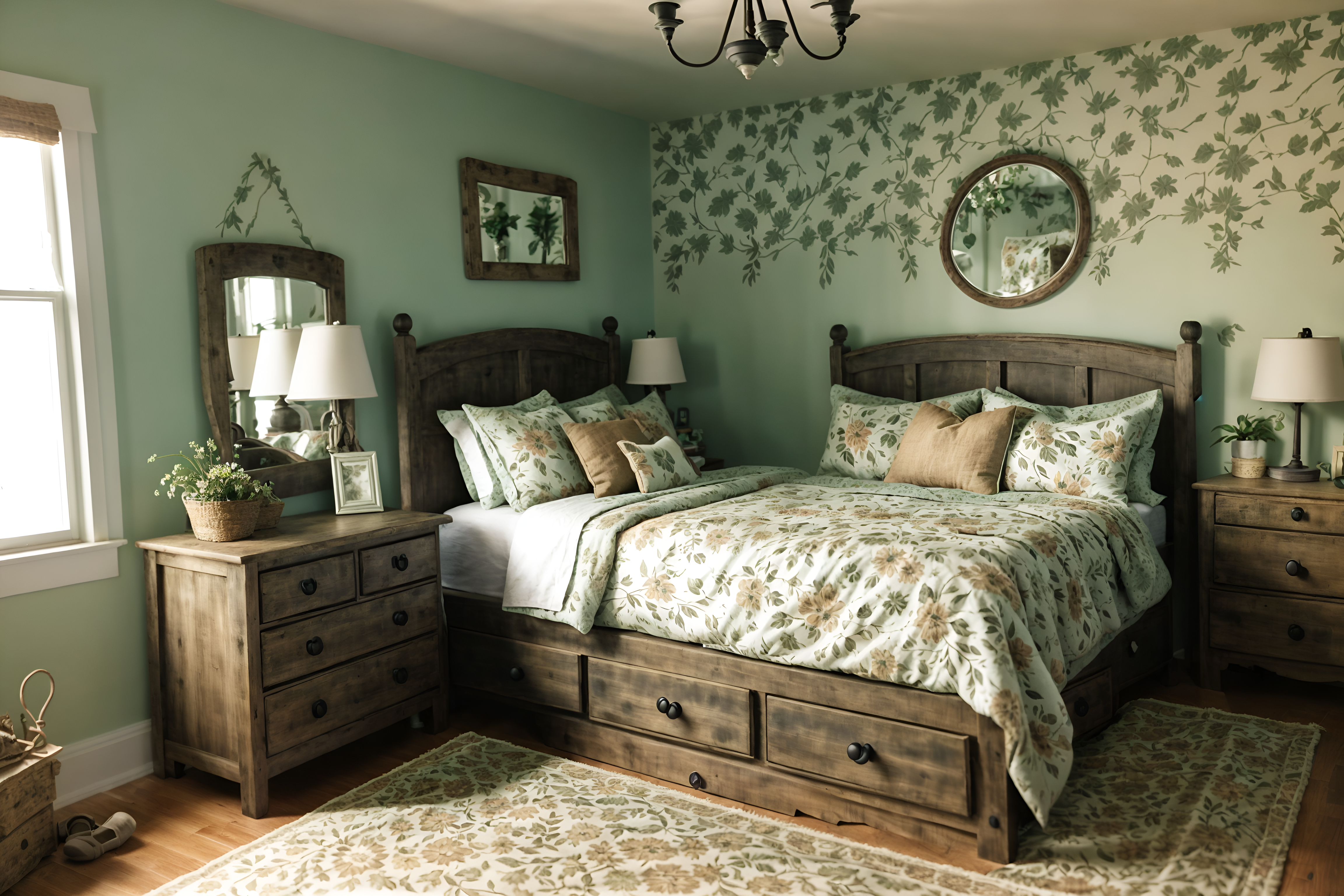 photo from pinterest of cottagecore-style interior designed (kids room interior) with plant and dresser closet and bedside table or night stand and night light and bed and accent chair and mirror and storage bench or ottoman. . with muted colors and natural and floral patterns and organic and rustic and earthy and country style and traditional. . cinematic photo, highly detailed, cinematic lighting, ultra-detailed, ultrarealistic, photorealism, 8k. trending on pinterest. cottagecore interior design style. masterpiece, cinematic light, ultrarealistic+, photorealistic+, 8k, raw photo, realistic, sharp focus on eyes, (symmetrical eyes), (intact eyes), hyperrealistic, highest quality, best quality, , highly detailed, masterpiece, best quality, extremely detailed 8k wallpaper, masterpiece, best quality, ultra-detailed, best shadow, detailed background, detailed face, detailed eyes, high contrast, best illumination, detailed face, dulux, caustic, dynamic angle, detailed glow. dramatic lighting. highly detailed, insanely detailed hair, symmetrical, intricate details, professionally retouched, 8k high definition. strong bokeh. award winning photo.