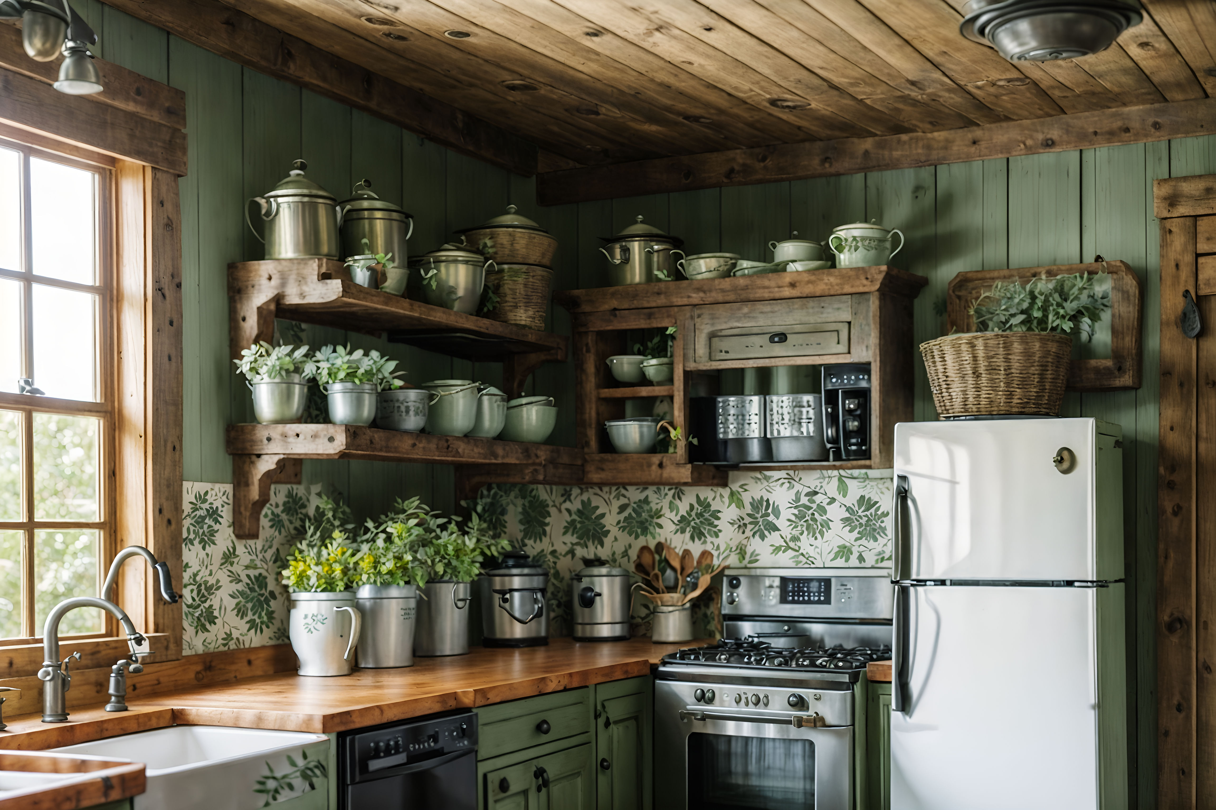 photo from pinterest of cottagecore-style interior designed (kitchen interior) with plant and worktops and refrigerator and sink and kitchen cabinets and stove and plant. . with organic and cottage style and floral patterns and natural and rustic and traditional and muted colors and country style. . cinematic photo, highly detailed, cinematic lighting, ultra-detailed, ultrarealistic, photorealism, 8k. trending on pinterest. cottagecore interior design style. masterpiece, cinematic light, ultrarealistic+, photorealistic+, 8k, raw photo, realistic, sharp focus on eyes, (symmetrical eyes), (intact eyes), hyperrealistic, highest quality, best quality, , highly detailed, masterpiece, best quality, extremely detailed 8k wallpaper, masterpiece, best quality, ultra-detailed, best shadow, detailed background, detailed face, detailed eyes, high contrast, best illumination, detailed face, dulux, caustic, dynamic angle, detailed glow. dramatic lighting. highly detailed, insanely detailed hair, symmetrical, intricate details, professionally retouched, 8k high definition. strong bokeh. award winning photo.