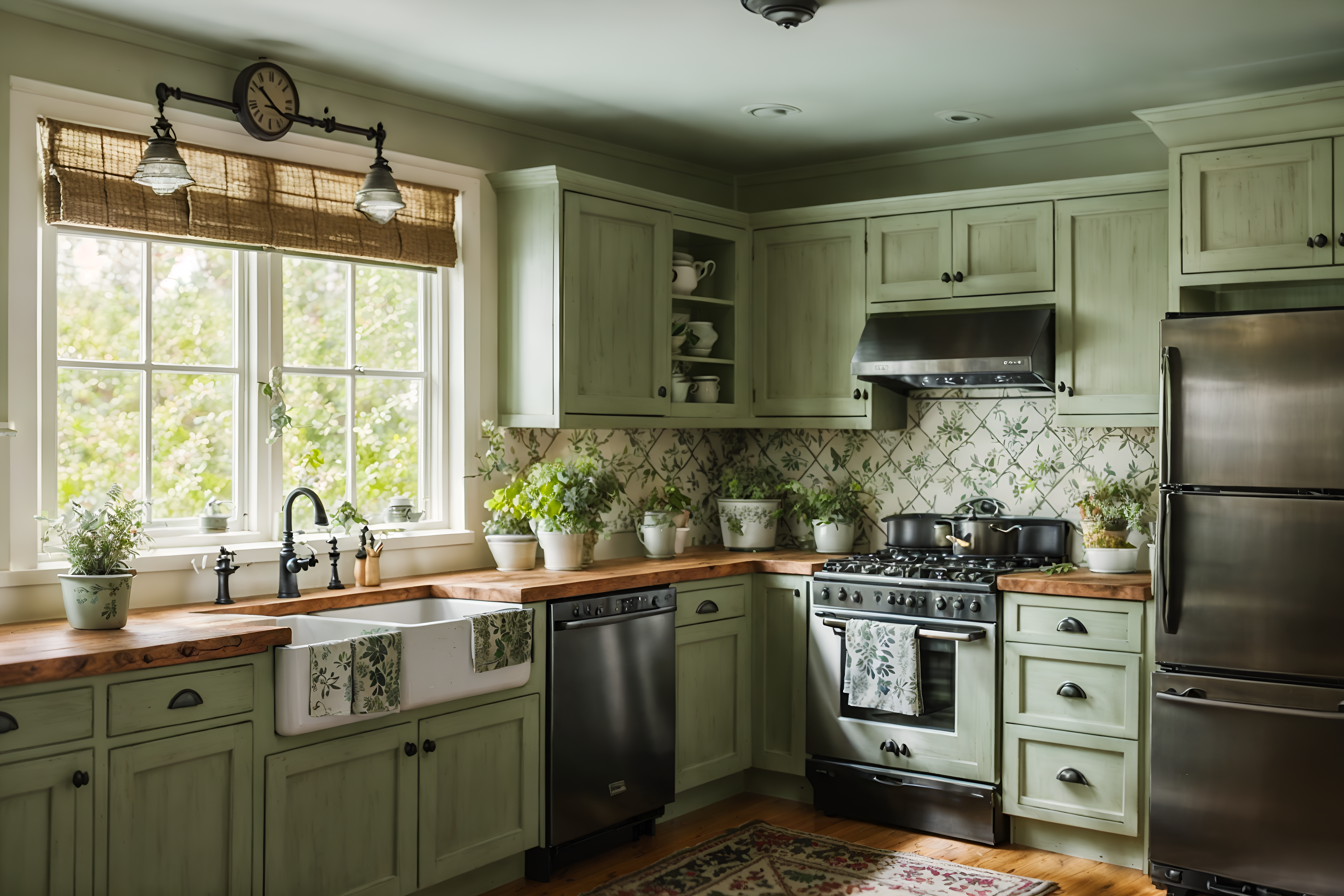 photo from pinterest of cottagecore-style interior designed (kitchen interior) with plant and worktops and refrigerator and sink and kitchen cabinets and stove and plant. . with organic and cottage style and floral patterns and natural and rustic and traditional and muted colors and country style. . cinematic photo, highly detailed, cinematic lighting, ultra-detailed, ultrarealistic, photorealism, 8k. trending on pinterest. cottagecore interior design style. masterpiece, cinematic light, ultrarealistic+, photorealistic+, 8k, raw photo, realistic, sharp focus on eyes, (symmetrical eyes), (intact eyes), hyperrealistic, highest quality, best quality, , highly detailed, masterpiece, best quality, extremely detailed 8k wallpaper, masterpiece, best quality, ultra-detailed, best shadow, detailed background, detailed face, detailed eyes, high contrast, best illumination, detailed face, dulux, caustic, dynamic angle, detailed glow. dramatic lighting. highly detailed, insanely detailed hair, symmetrical, intricate details, professionally retouched, 8k high definition. strong bokeh. award winning photo.