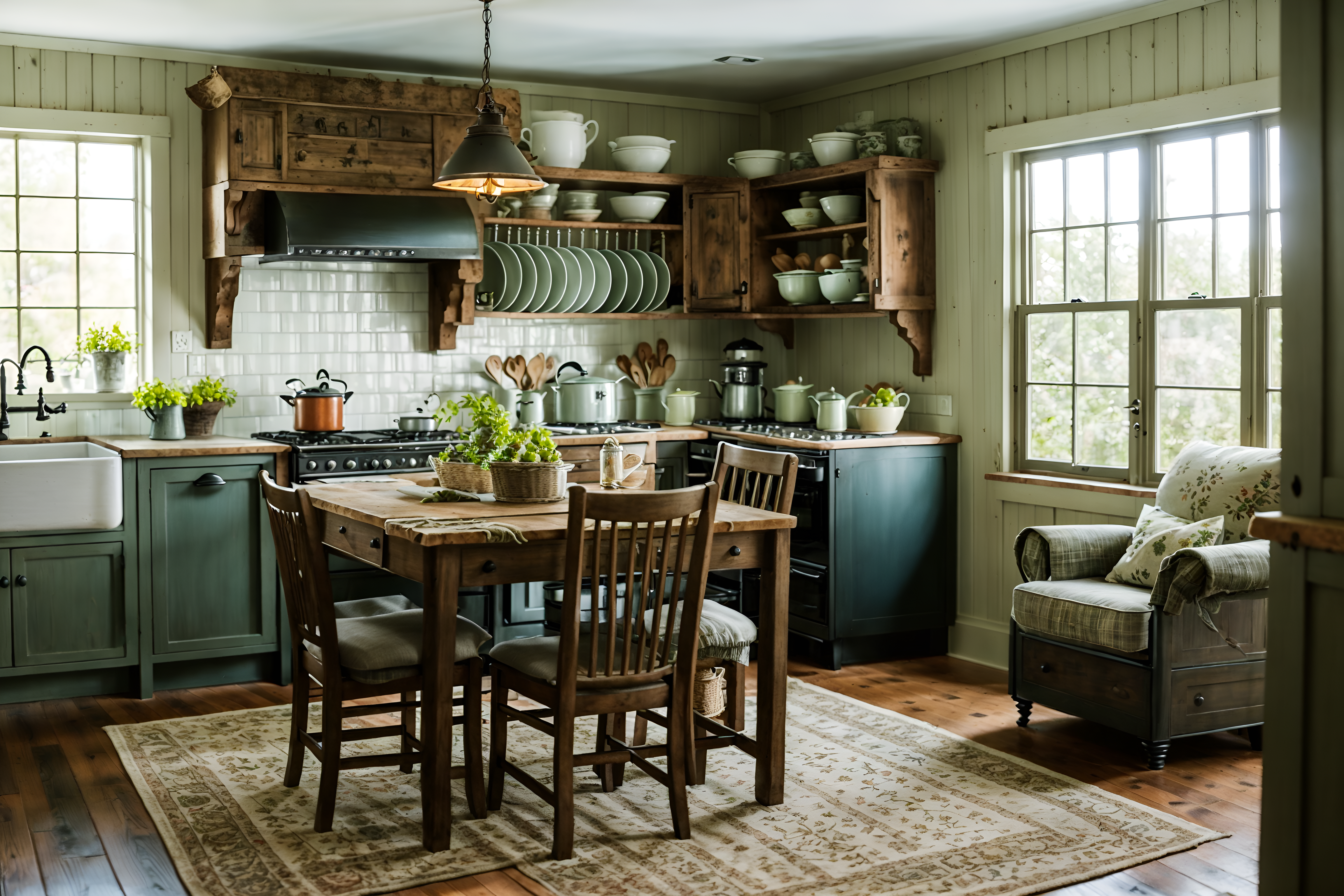 photo from pinterest of cottagecore-style interior designed (kitchen living combo interior) with chairs and furniture and occasional tables and kitchen cabinets and stove and bookshelves and rug and plant. . with rustic and organic and cottage style and natural and country style and floral patterns and earthy and traditional. . cinematic photo, highly detailed, cinematic lighting, ultra-detailed, ultrarealistic, photorealism, 8k. trending on pinterest. cottagecore interior design style. masterpiece, cinematic light, ultrarealistic+, photorealistic+, 8k, raw photo, realistic, sharp focus on eyes, (symmetrical eyes), (intact eyes), hyperrealistic, highest quality, best quality, , highly detailed, masterpiece, best quality, extremely detailed 8k wallpaper, masterpiece, best quality, ultra-detailed, best shadow, detailed background, detailed face, detailed eyes, high contrast, best illumination, detailed face, dulux, caustic, dynamic angle, detailed glow. dramatic lighting. highly detailed, insanely detailed hair, symmetrical, intricate details, professionally retouched, 8k high definition. strong bokeh. award winning photo.
