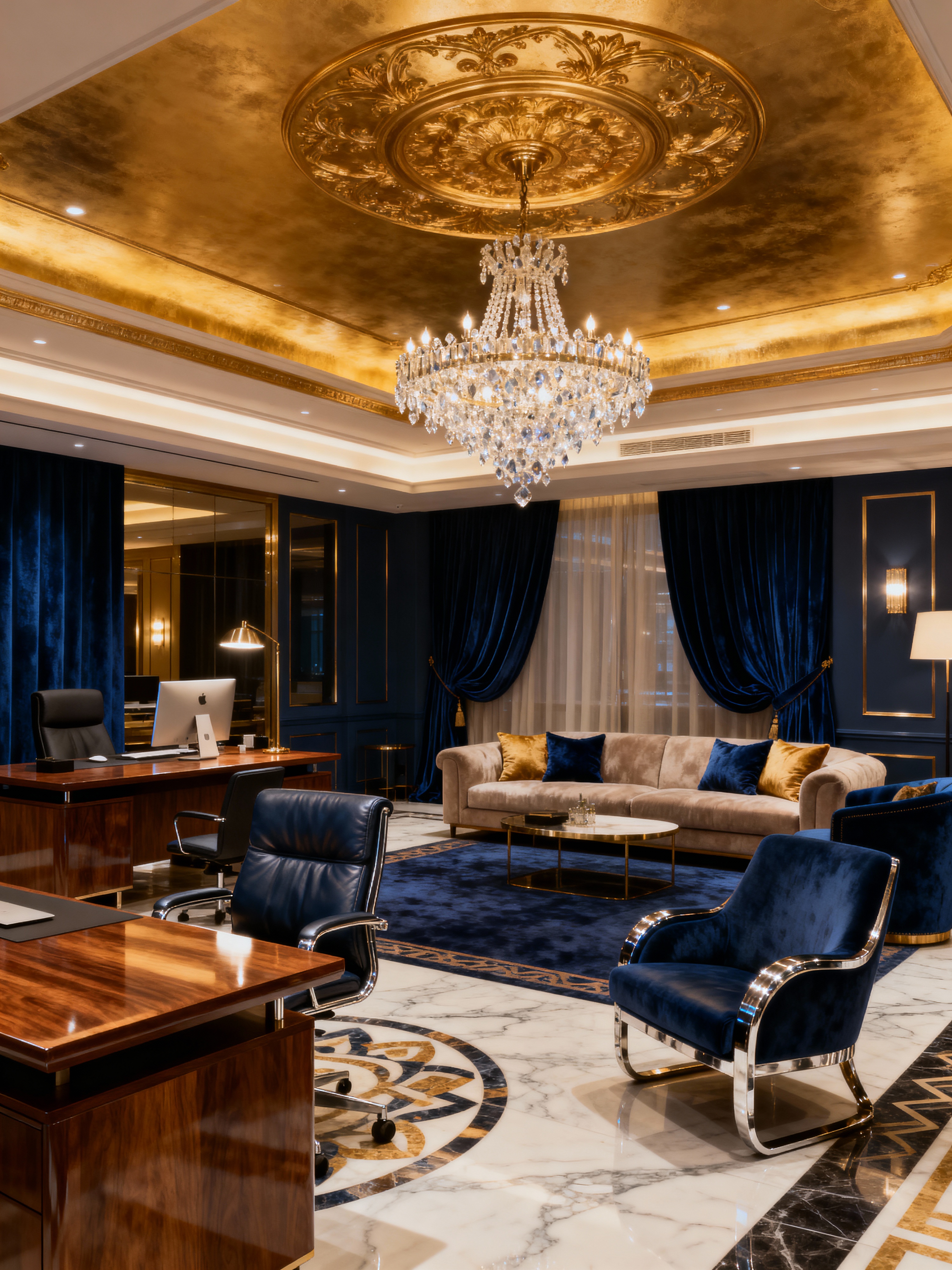 coworking space with luxury style with seating area with sofa and office desks and office chairs and lounge chairs and seating area with sofa. . with premium finishes and lavish comfort and expensive fabrics and opulent details and elegant lighting and high-end materials and exclusive design and designer furniture