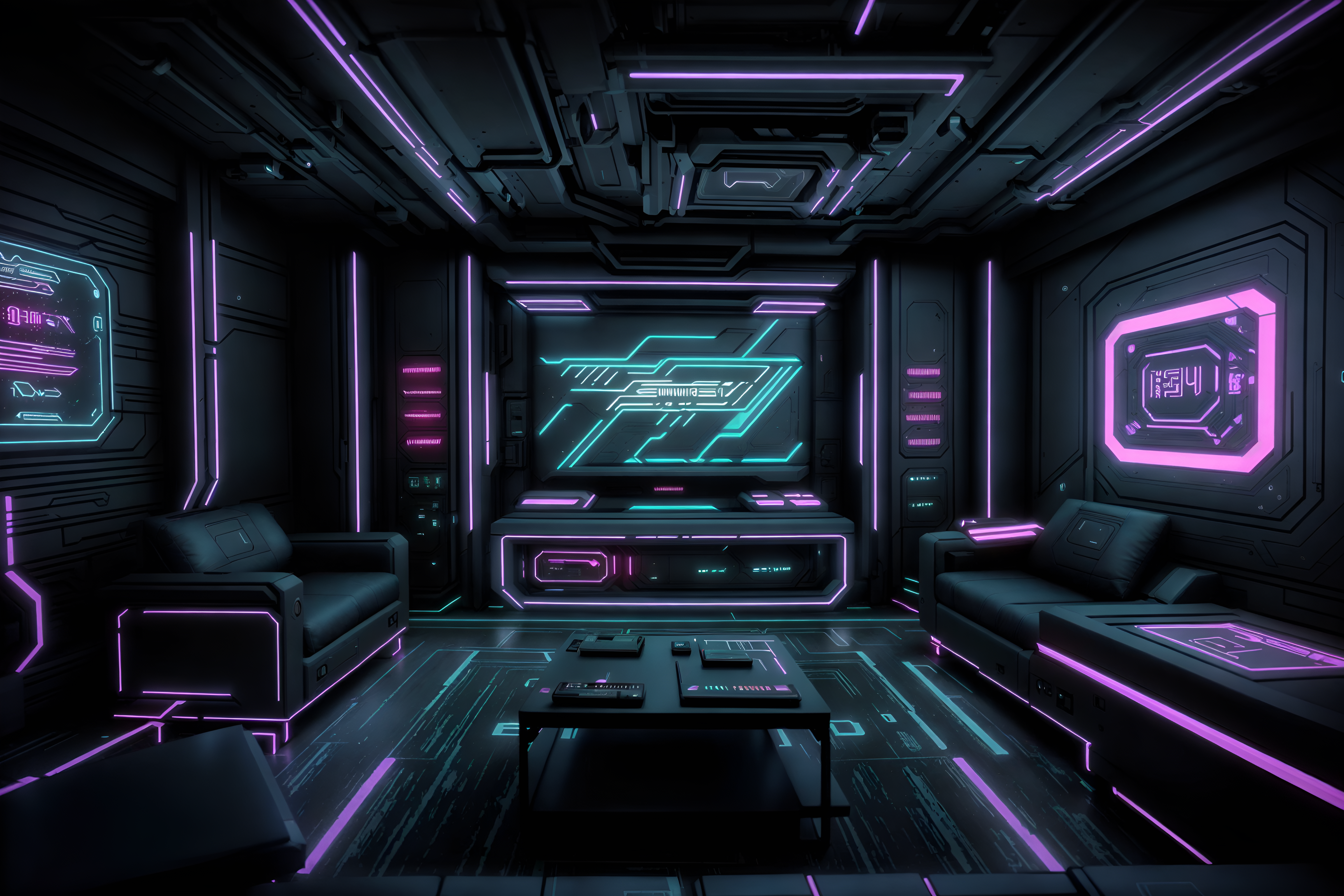 photo from pinterest of cyberpunk-style interior designed (gaming room interior) . with minimalist and futuristic cybernetic city and black lights and synthetic objects and led lights and bladerunner style and synthwave and cyberpunk style. . cinematic photo, highly detailed, cinematic lighting, ultra-detailed, ultrarealistic, photorealism, 8k. trending on pinterest. cyberpunk interior design style. masterpiece, cinematic light, ultrarealistic+, photorealistic+, 8k, raw photo, realistic, sharp focus on eyes, (symmetrical eyes), (intact eyes), hyperrealistic, highest quality, best quality, , highly detailed, masterpiece, best quality, extremely detailed 8k wallpaper, masterpiece, best quality, ultra-detailed, best shadow, detailed background, detailed face, detailed eyes, high contrast, best illumination, detailed face, dulux, caustic, dynamic angle, detailed glow. dramatic lighting. highly detailed, insanely detailed hair, symmetrical, intricate details, professionally retouched, 8k high definition. strong bokeh. award winning photo.