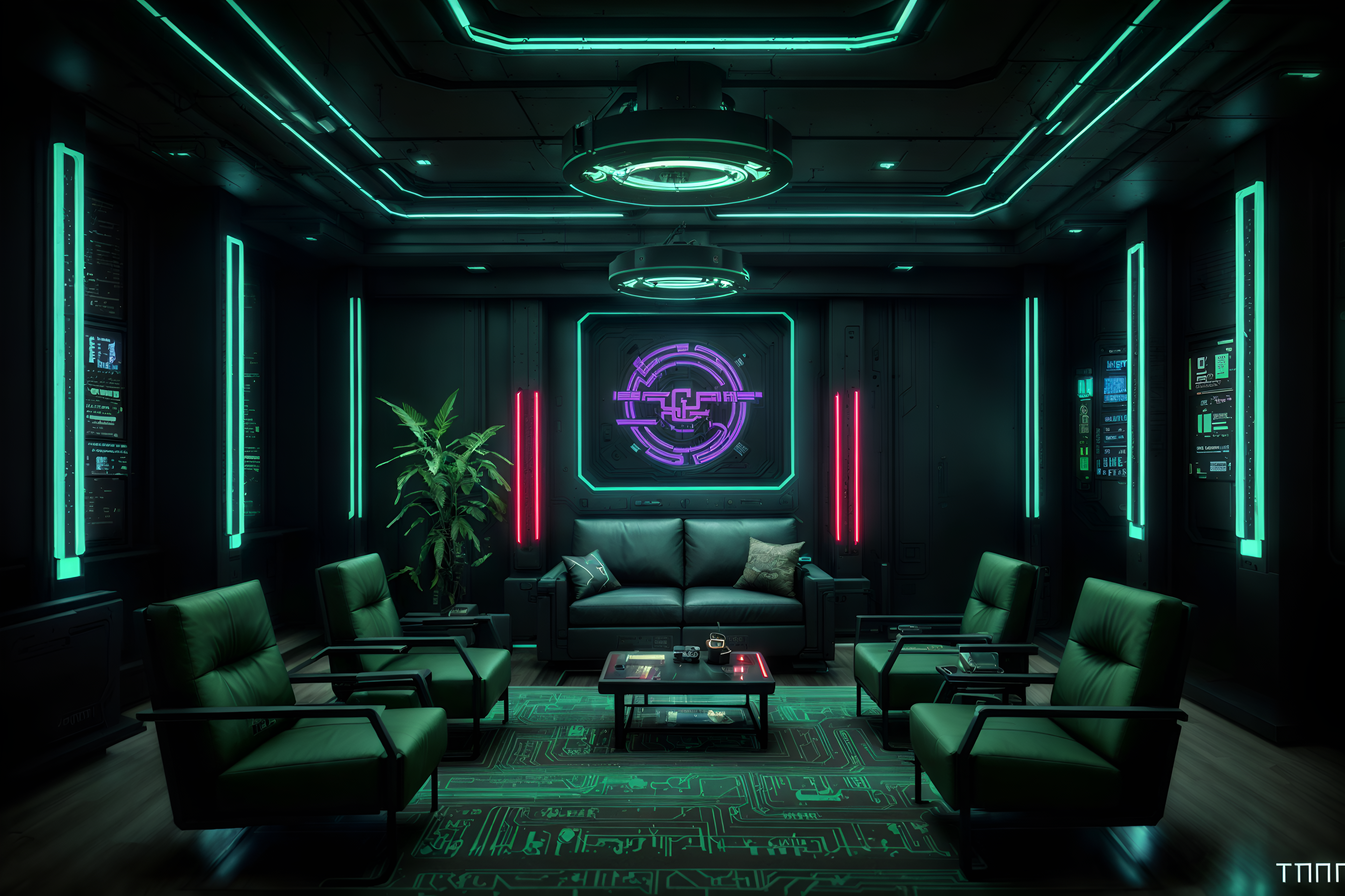 photo from pinterest of cyberpunk-style interior designed (hotel lobby interior) with lounge chairs and sofas and coffee tables and hanging lamps and furniture and plant and rug and check in desk. . with military uniforms and gear and cyberpunk lights and bladerunner style and surrealist paintings and dark night and futuristic cybernetic details and synthetic objects and cyberpunk lights. . cinematic photo, highly detailed, cinematic lighting, ultra-detailed, ultrarealistic, photorealism, 8k. trending on pinterest. cyberpunk interior design style. masterpiece, cinematic light, ultrarealistic+, photorealistic+, 8k, raw photo, realistic, sharp focus on eyes, (symmetrical eyes), (intact eyes), hyperrealistic, highest quality, best quality, , highly detailed, masterpiece, best quality, extremely detailed 8k wallpaper, masterpiece, best quality, ultra-detailed, best shadow, detailed background, detailed face, detailed eyes, high contrast, best illumination, detailed face, dulux, caustic, dynamic angle, detailed glow. dramatic lighting. highly detailed, insanely detailed hair, symmetrical, intricate details, professionally retouched, 8k high definition. strong bokeh. award winning photo.