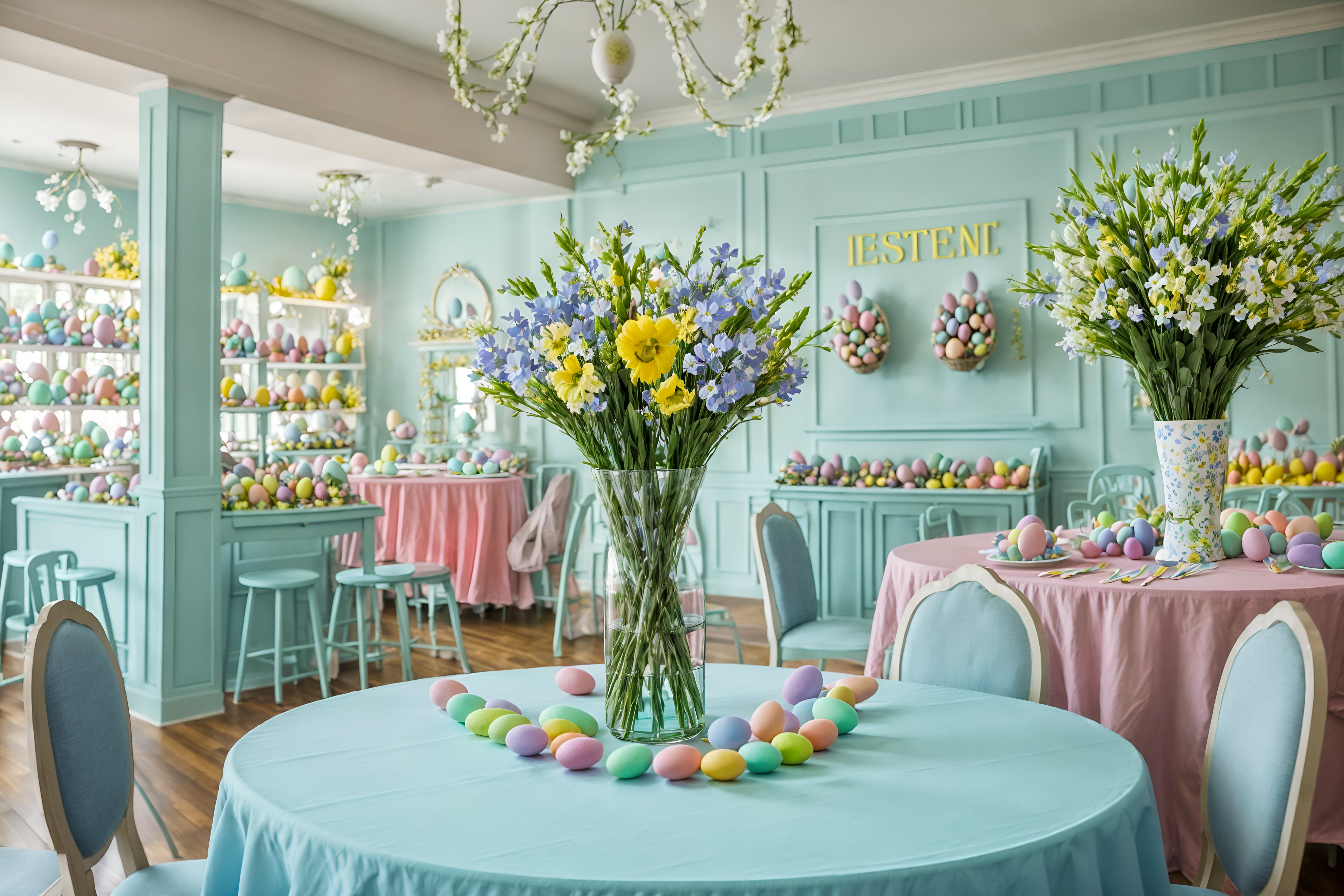 photo from pinterest of easter-style interior designed (clothing store interior) . with flowers on table and light blue colors and spring decorations and colorful easter eggs and easter decorations and flowers on table. . cinematic photo, highly detailed, cinematic lighting, ultra-detailed, ultrarealistic, photorealism, 8k. trending on pinterest. easter interior design style. masterpiece, cinematic light, ultrarealistic+, photorealistic+, 8k, raw photo, realistic, sharp focus on eyes, (symmetrical eyes), (intact eyes), hyperrealistic, highest quality, best quality, , highly detailed, masterpiece, best quality, extremely detailed 8k wallpaper, masterpiece, best quality, ultra-detailed, best shadow, detailed background, detailed face, detailed eyes, high contrast, best illumination, detailed face, dulux, caustic, dynamic angle, detailed glow. dramatic lighting. highly detailed, insanely detailed hair, symmetrical, intricate details, professionally retouched, 8k high definition. strong bokeh. award winning photo.
