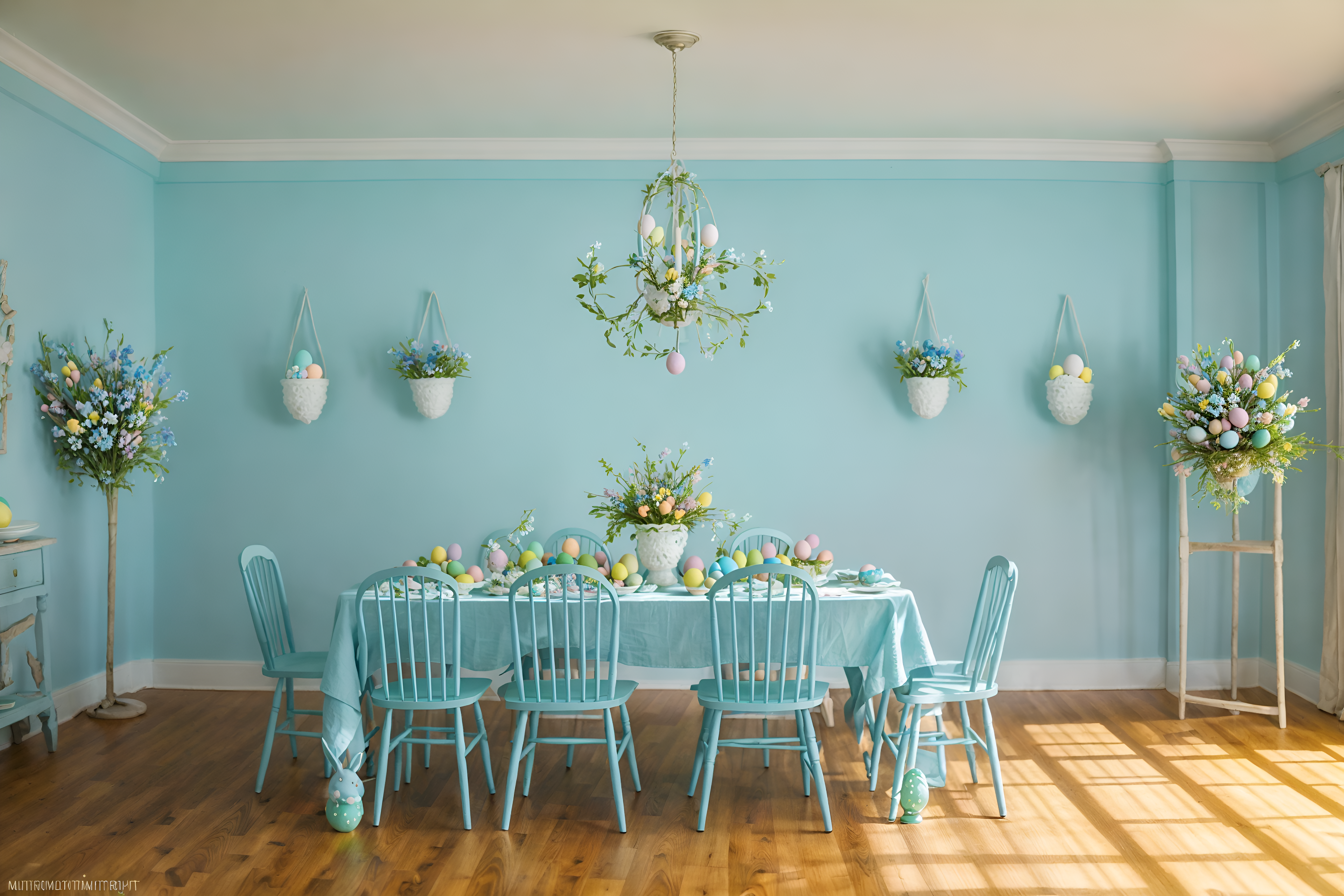 photo from pinterest of easter-style interior designed (exhibition space interior) . with easter decorations and light blue colors and flowers on table and spring decorations and colorful easter eggs and easter decorations. . cinematic photo, highly detailed, cinematic lighting, ultra-detailed, ultrarealistic, photorealism, 8k. trending on pinterest. easter interior design style. masterpiece, cinematic light, ultrarealistic+, photorealistic+, 8k, raw photo, realistic, sharp focus on eyes, (symmetrical eyes), (intact eyes), hyperrealistic, highest quality, best quality, , highly detailed, masterpiece, best quality, extremely detailed 8k wallpaper, masterpiece, best quality, ultra-detailed, best shadow, detailed background, detailed face, detailed eyes, high contrast, best illumination, detailed face, dulux, caustic, dynamic angle, detailed glow. dramatic lighting. highly detailed, insanely detailed hair, symmetrical, intricate details, professionally retouched, 8k high definition. strong bokeh. award winning photo.